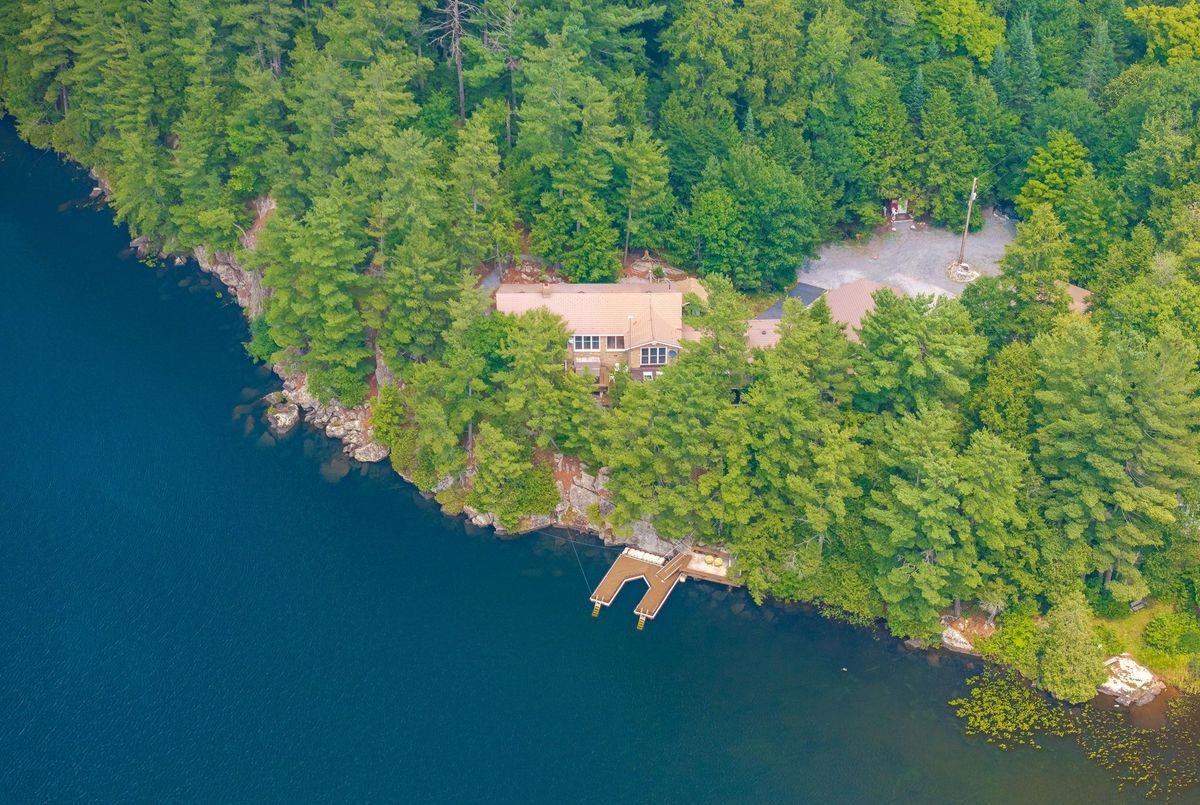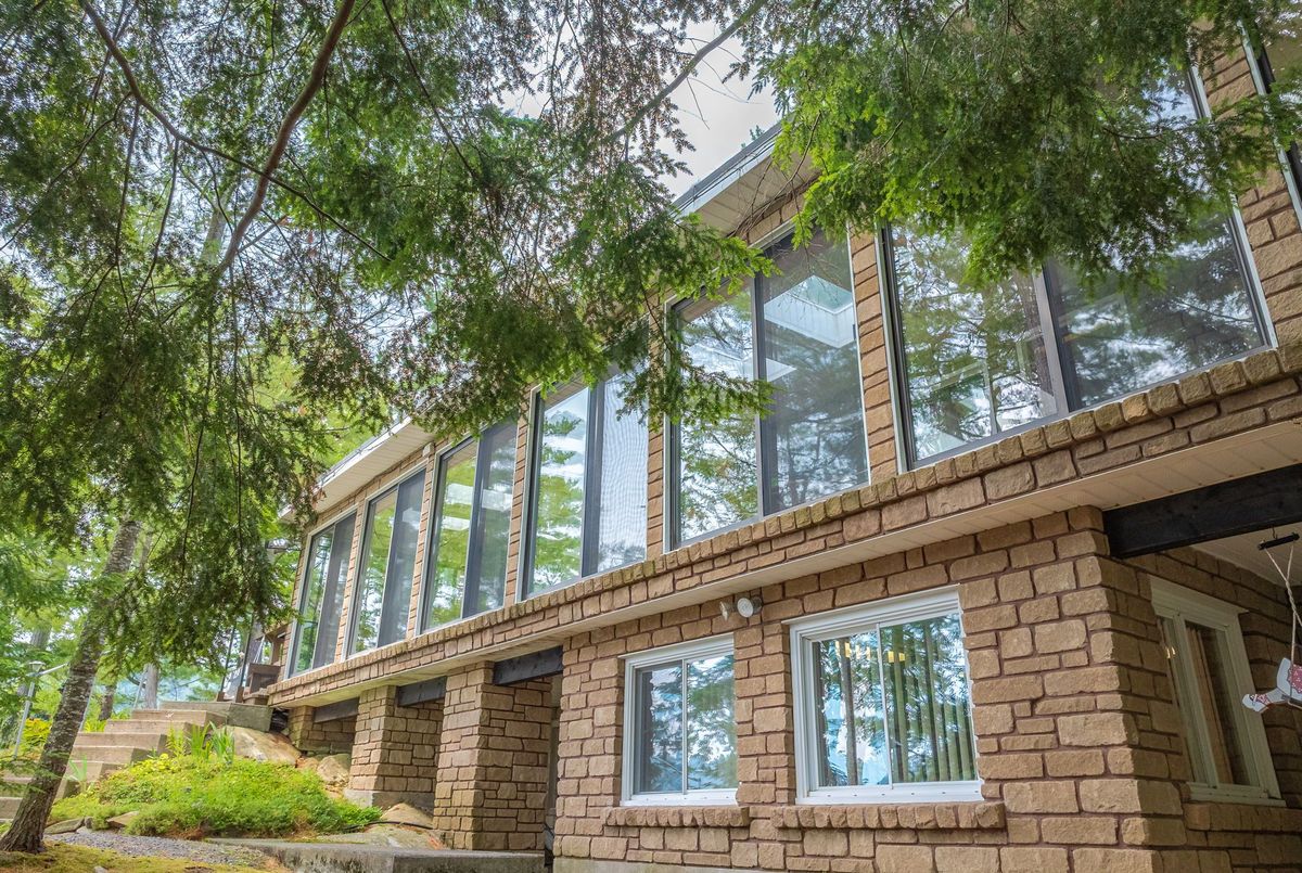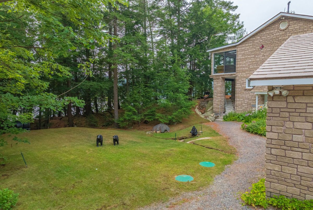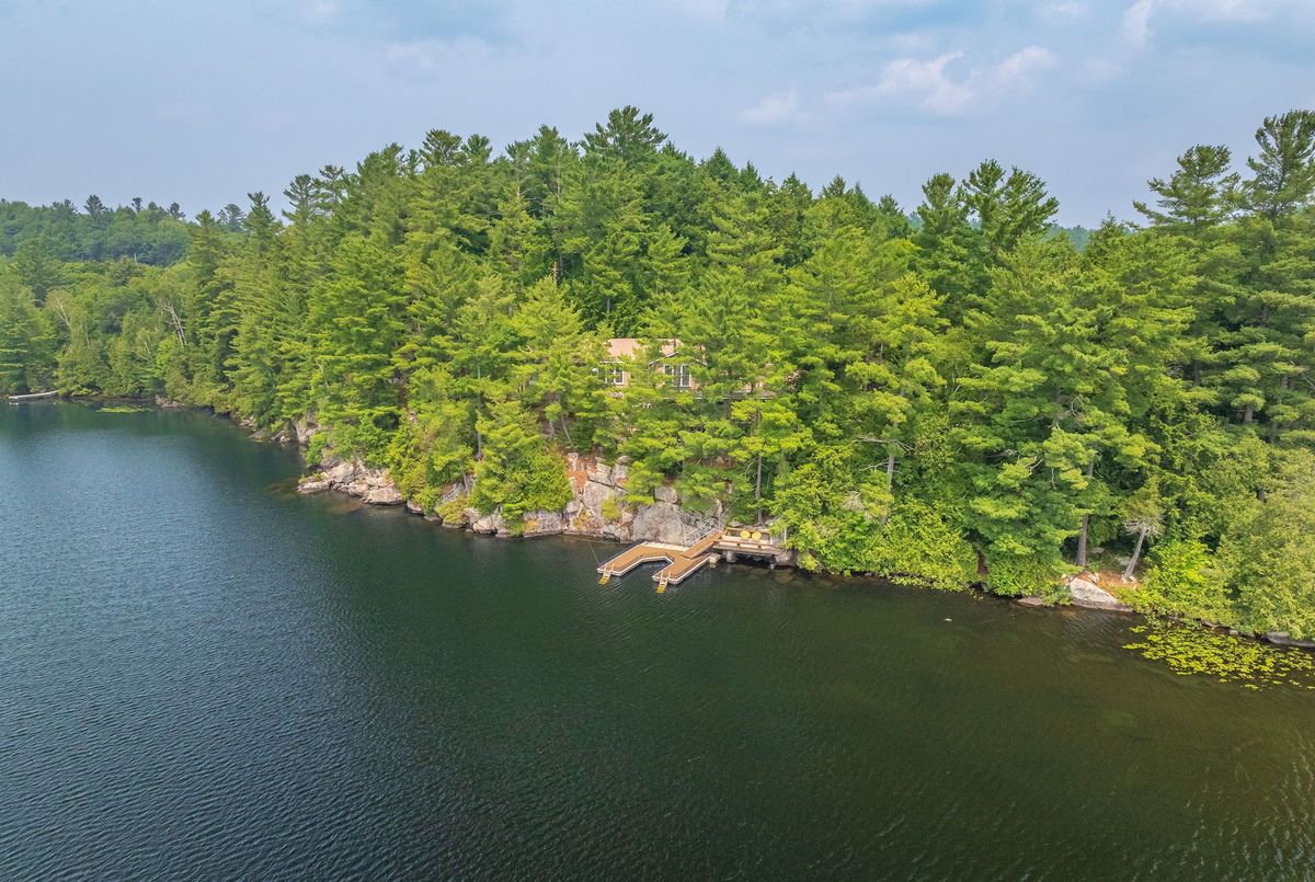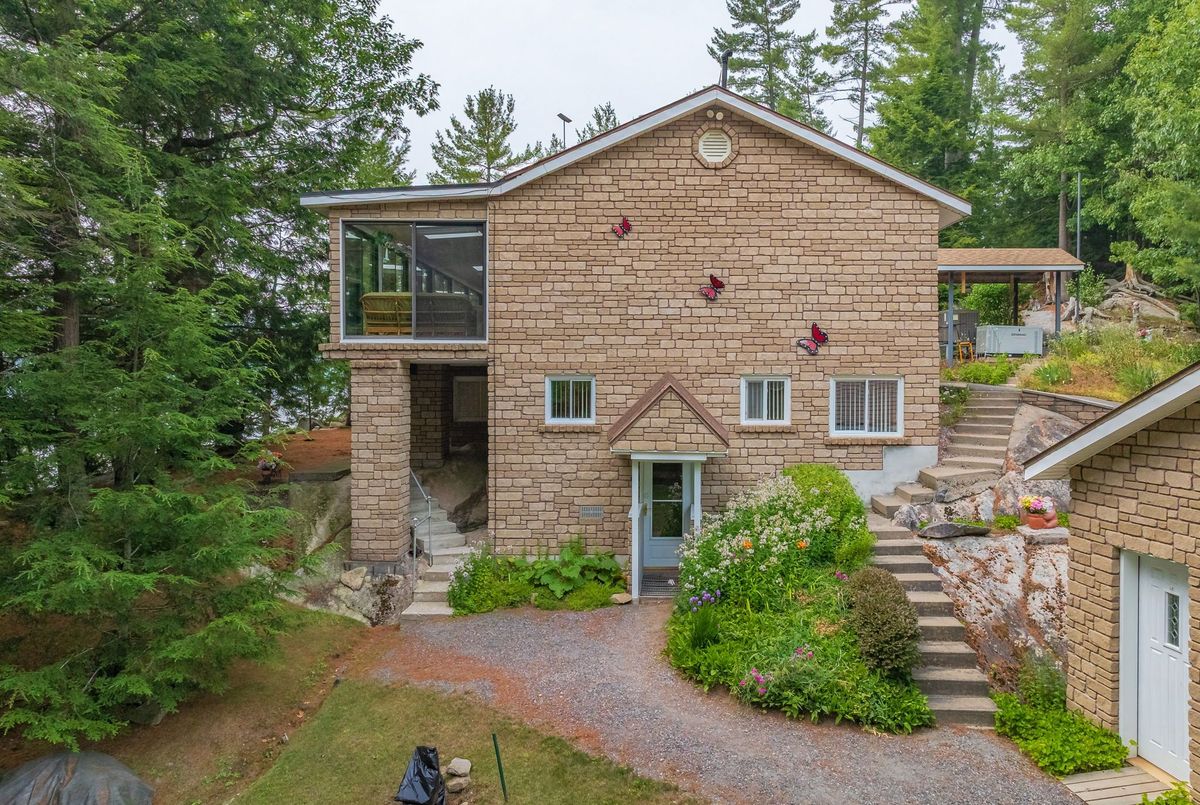 Welcome to Wren Lake, where tranquility meets timeless design. Nestled on 6.8 acres with an impressive 440 feet of pristine shoreline and coveted western exposure, this property offers the ultimate in peace, privacy and sunset views. Thoughtfully designed and meticulously maintained, the spacious 3+1 bedroom, 3-bathroom home is bright and inviting, featuring a large lakeside sunroom and expansive decking that is perfect for entertaining or simply soaking in the serenity. The natural setting is beautifully preserved, with the home and two separate garage buildings clad in matching stone siding and topped with durable cedar shake~style aluminum roofs, blending seamlessly into the landscape. Large 8 person hot tub and an infrared sauna are all part of this offering. Ample storage for vehicles and recreational toys. You have everything you need for lakeside living. A large dock and waterfront deck complete this exceptional package, enhancing both function and enjoyment of this rare and remarkable property that is also covered in Canadian granite rock and mature white pines. Interior chair lifts are installed and can be part of this sale, if choosen by the Buyer. This home comes fully furnished together with all the appliances. Two additional separately deeded buildings lots are included, which could be ideal for a large family compound. Let your imagination soar and begin your cottage country memories here!