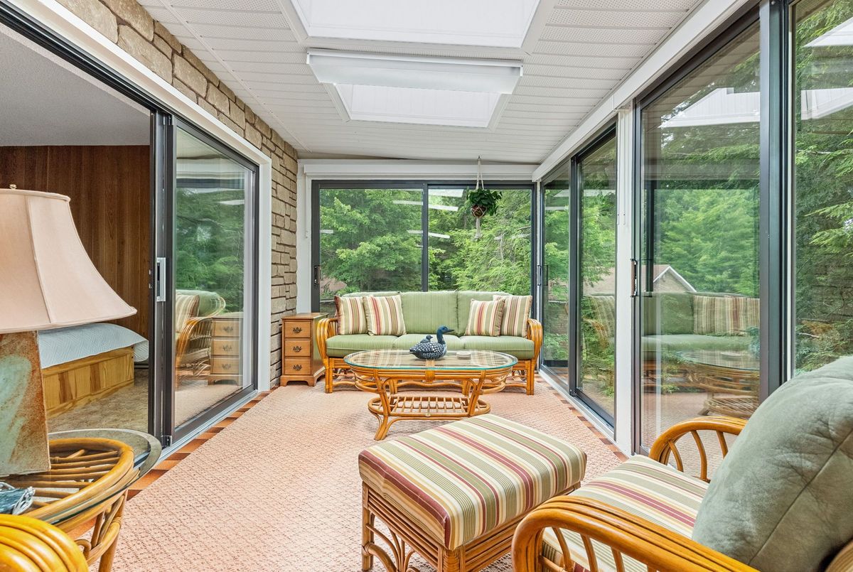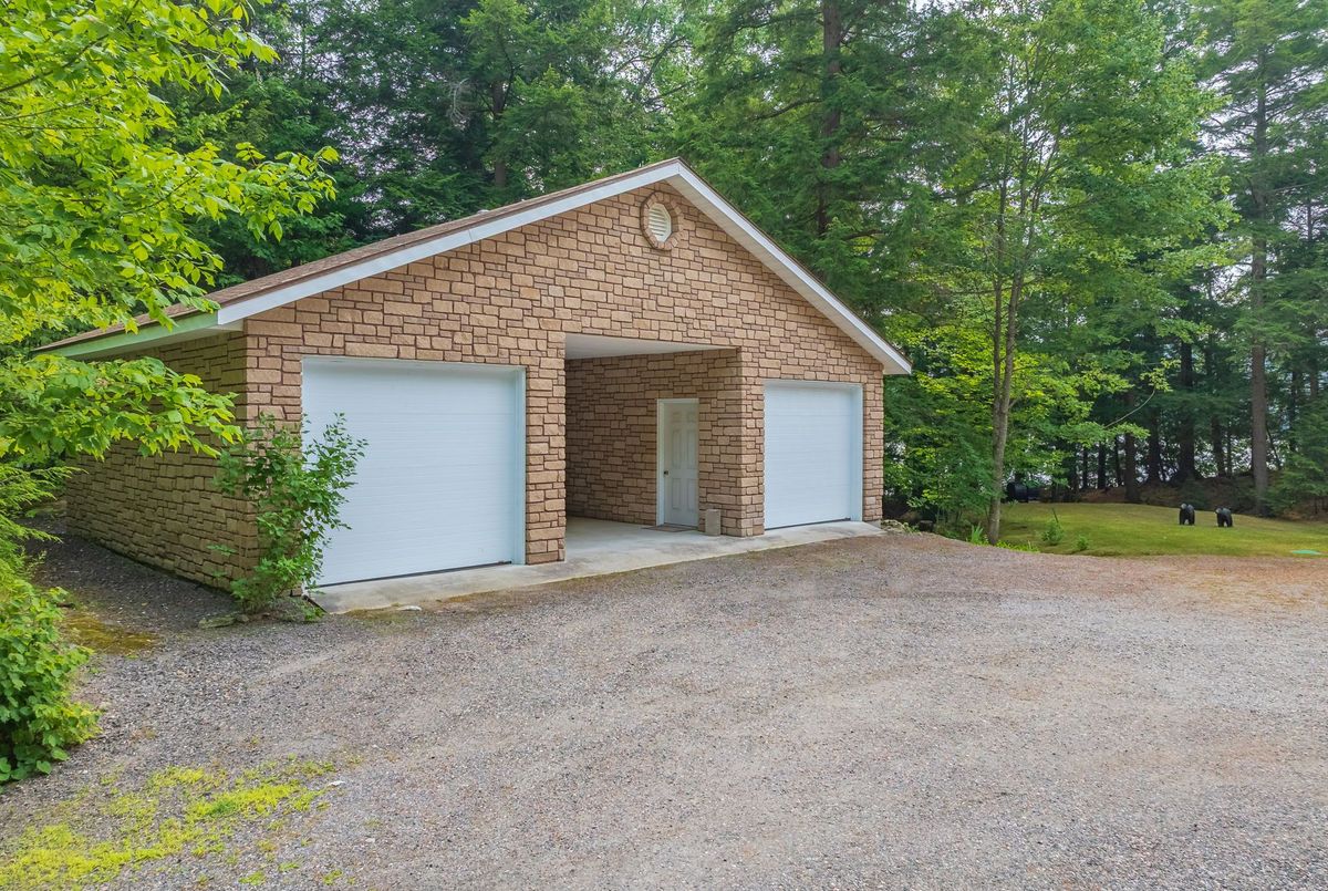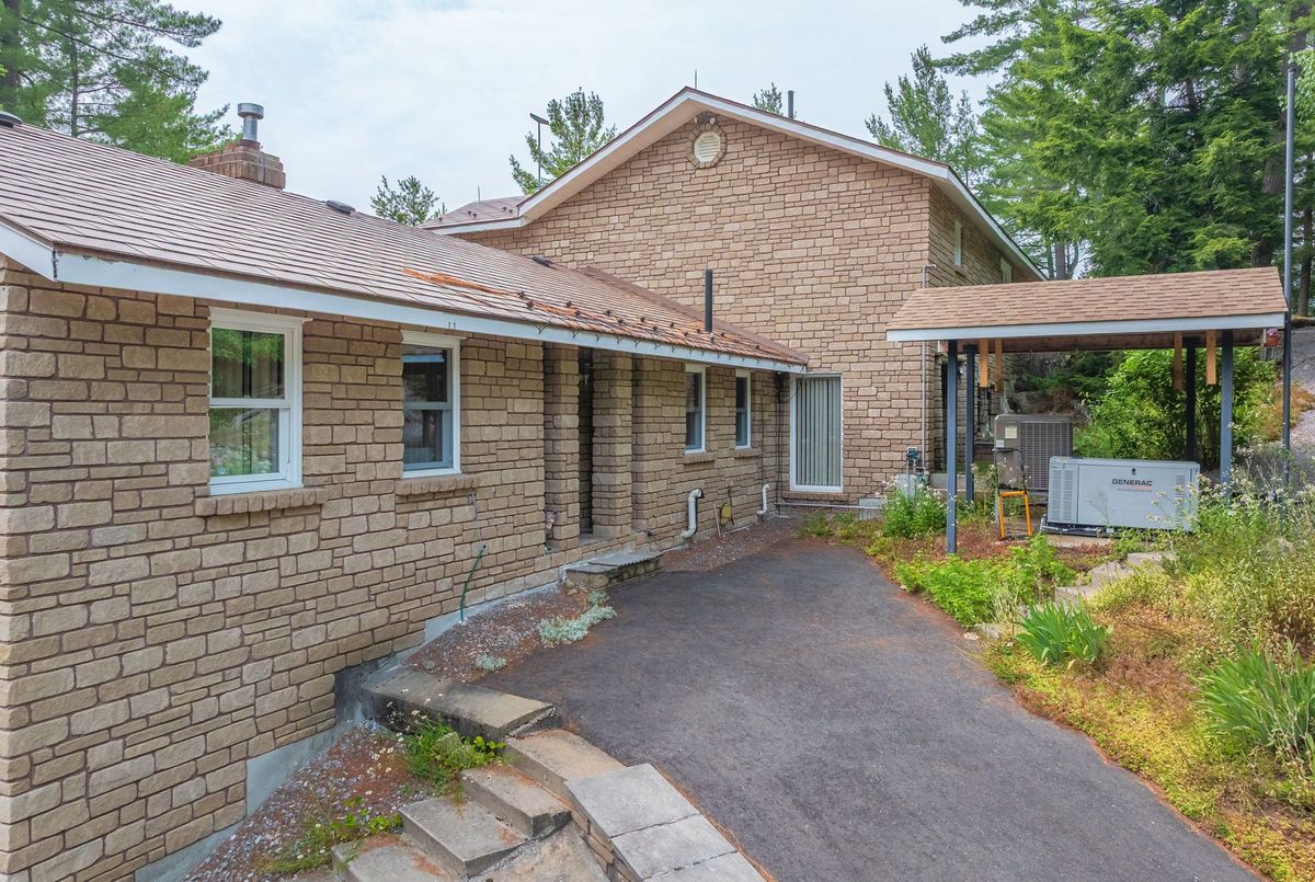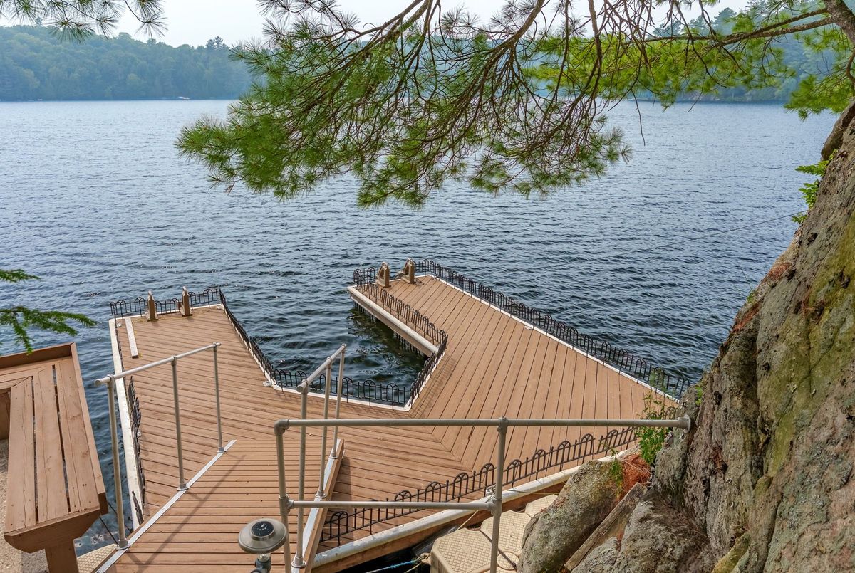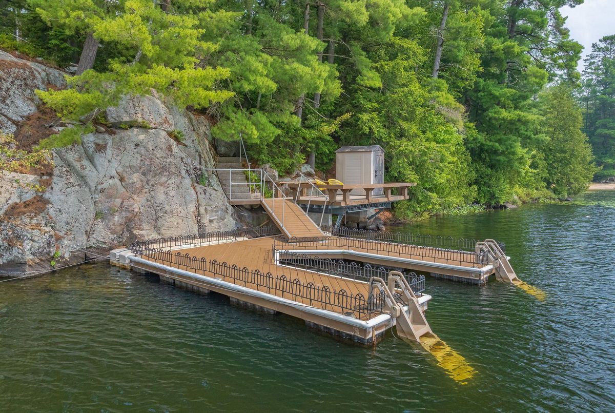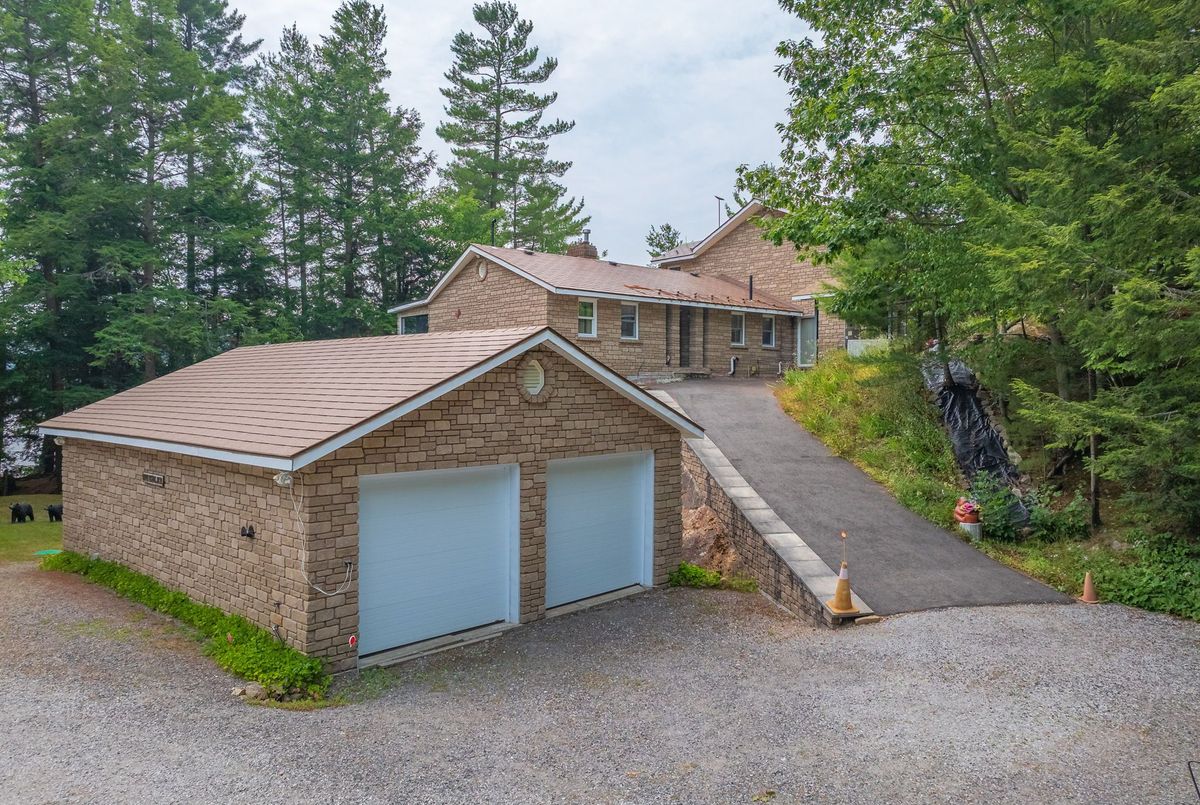 Welcome to Wren Lake, where tranquility meets timeless design. Nestled on 6.8 acres with an impressive 440 feet of pristine shoreline and coveted western exposure, this property offers the ultimate in peace, privacy and sunset views. Thoughtfully designed and meticulously maintained, the spacious 3+1 bedroom, 3-bathroom home is bright and inviting, featuring a large lakeside sunroom and expansive decking that is perfect for entertaining or simply soaking in the serenity. The natural setting is beautifully preserved, with the home and two separate garage buildings clad in matching stone siding and topped with durable cedar shake~style aluminum roofs, blending seamlessly into the landscape. Large 8 person hot tub and an infrared sauna are all part of this offering. Ample storage for vehicles and recreational toys. You have everything you need for lakeside living. A large dock and waterfront deck complete this exceptional package, enhancing both function and enjoyment of this rare and remarkable property that is also covered in Canadian granite rock and mature white pines. Interior chair lifts are installed and can be part of this sale, if choosen by the Buyer. This home comes fully furnished together with all the appliances. Two additional separately deeded buildings lots are included, which could be ideal for a large family compound. Let your imagination soar and begin your cottage country memories here!