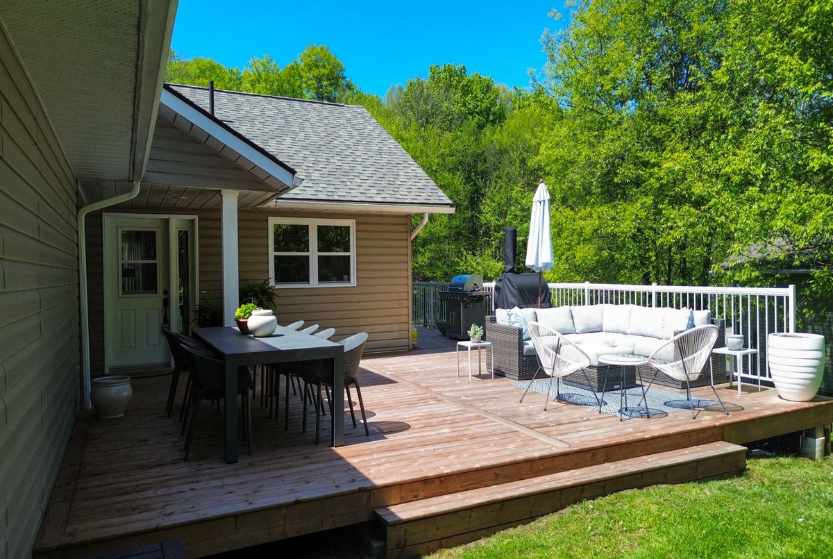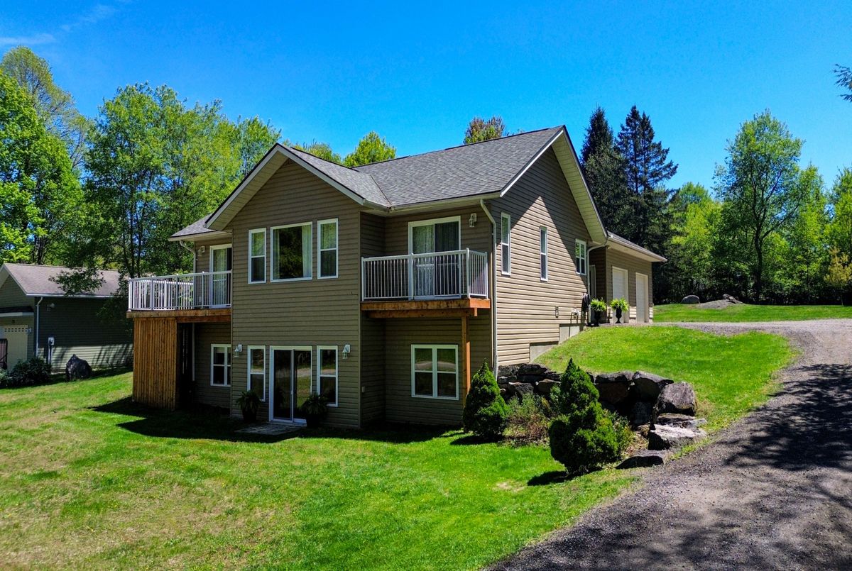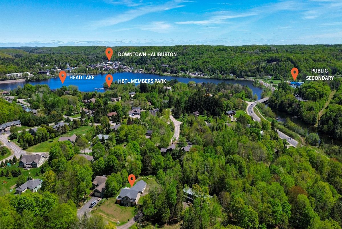 The perfect family home in the heart of Haliburton. Nestled amongst mature trees in the sought after Haliburton By The Lake community, this home has it all: an ideal blend of comfort, style, space, and functionality, all within close proximity to downtown Haliburton and the essential amenities needed to make family living a breeze. This meticulously cared for home has undergone many recent improvements: new PEX plumbing throughout (2025), new high efficiency furnace & duct work (2025), new stainless steel appliances (2025), new quartz countertops in mudroom, ensuite and lower level bathroom (2025), new roof shingles (2023), new decking (2023), and many more. The spacious dwelling boasts over 2,300 sqft of finished living space over two levels, with a large attached double garage and separate storage shed. Situated on one of the larger lots in HBTL, over an acre of land provides usable, level and well treed outdoor space near the end of a quiet street. Step inside this lovingly cared for and updated family home to a space drenched in natural light. A spacious open-concept living area seamlessly connects the living room, dining room, and kitchen. The luxurious primary retreat offers king sized accommodations, has its own private balcony, and is home to a 5pc ensuite with a generous walk-in closet. A convenient mudroom and powder room complete this level, adding to the home's practical flow. Step outside off the dining area to a wrap around, oversized deck and bask in the sun or shade all day long. The fully finished lower walkout boasts generous 9 foot ceilings, creating a bright and airy space. It includes two spacious bedrooms, a large family/rec room perfect for relaxation or play, and a versatile den/office space. Stay active in the exercise room, and enjoy the added convenience of a 4 pc bathroom on this level. Residents of the HBTL community enjoy exclusive access to a members only park, with a fire pit, picnic area, and a boat launch into head lake.