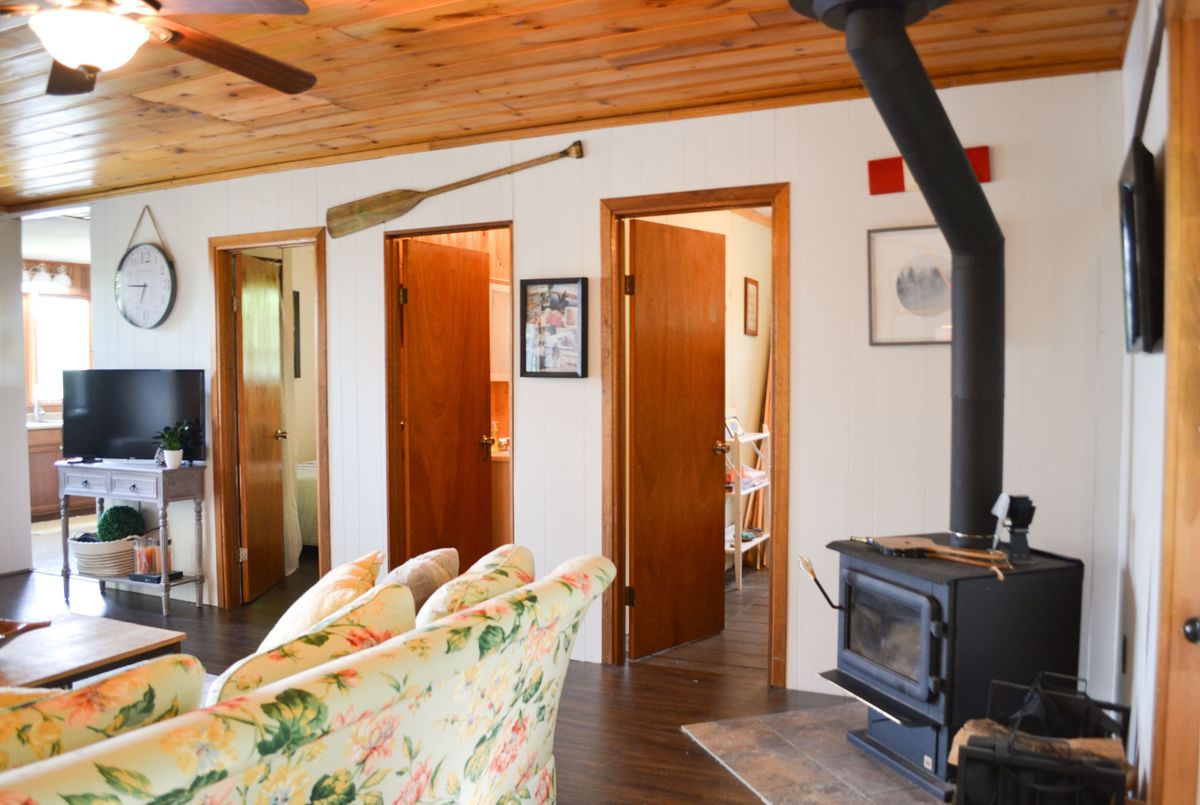 Affordable waterfront escape on Grass Lake! Discover your perfect family getaway on beautiful Grass Lake in Kearney. This charming seasonal cottage offers 215 feet of pristine shoreline and breathtaking panoramic views. Designed for lakeside living, the property features multiple vantage points to enjoy the water from the floating dock system for swimming and boating, to a covered gazebo for shaded relaxation, to a cozy campfire area right at the water's edge. Inside, you will find 4 comfortable bedrooms, a newly renovated bathroom with a tiled shower, and a warm, inviting space ready for family memories. Pine-lined ceilings and a woodstove add to the charm. New windows and doors, roof approximately 7 years ago, new dock in 2020, paved driveway. A gentle path leads from the cottage to the waterfront. A shed for all of the toys. Whether you're fishing, boating, swimming, paddling, or simply soaking in the scenery, this property is a true Muskoka/Almaguin escape. The seller is motivated, prefers a quick closing, and has priced to sell! Still enough time to enjoy this season, as this one needs nothing but a new owner, so act fast! Don't miss your chance to own a slice of Grass Lake paradise.