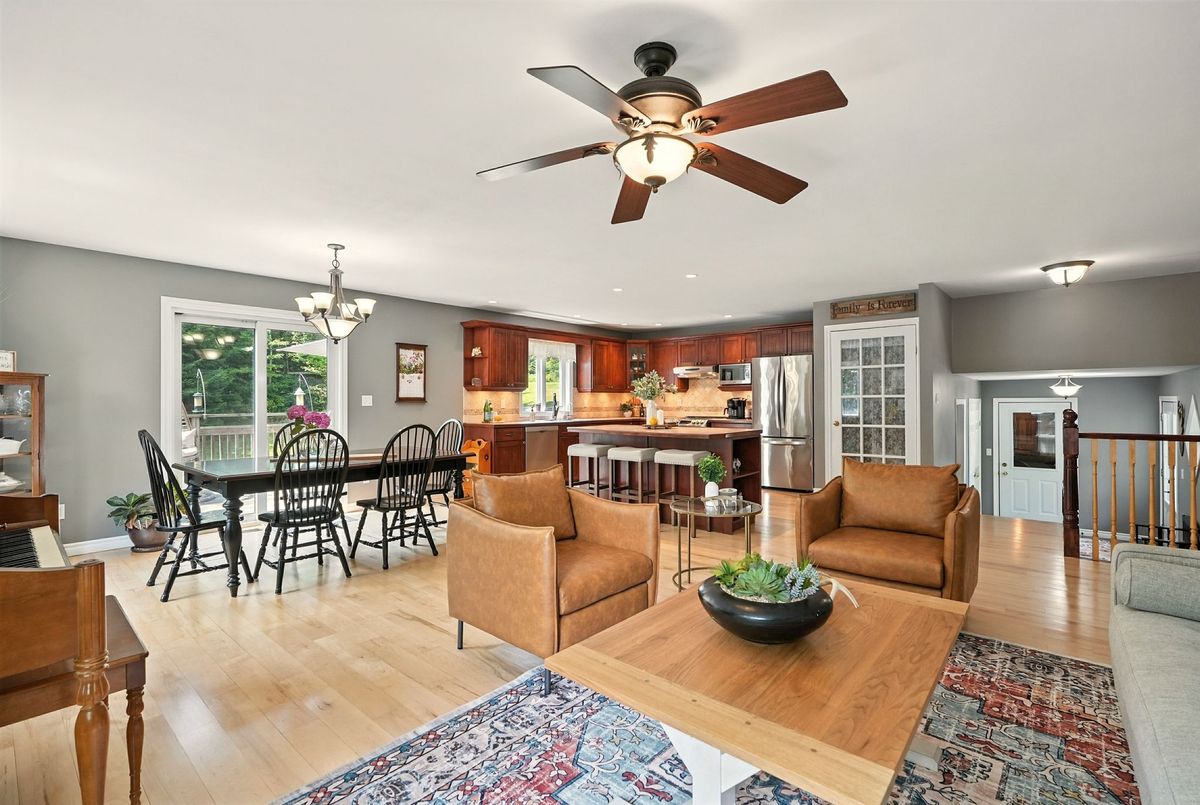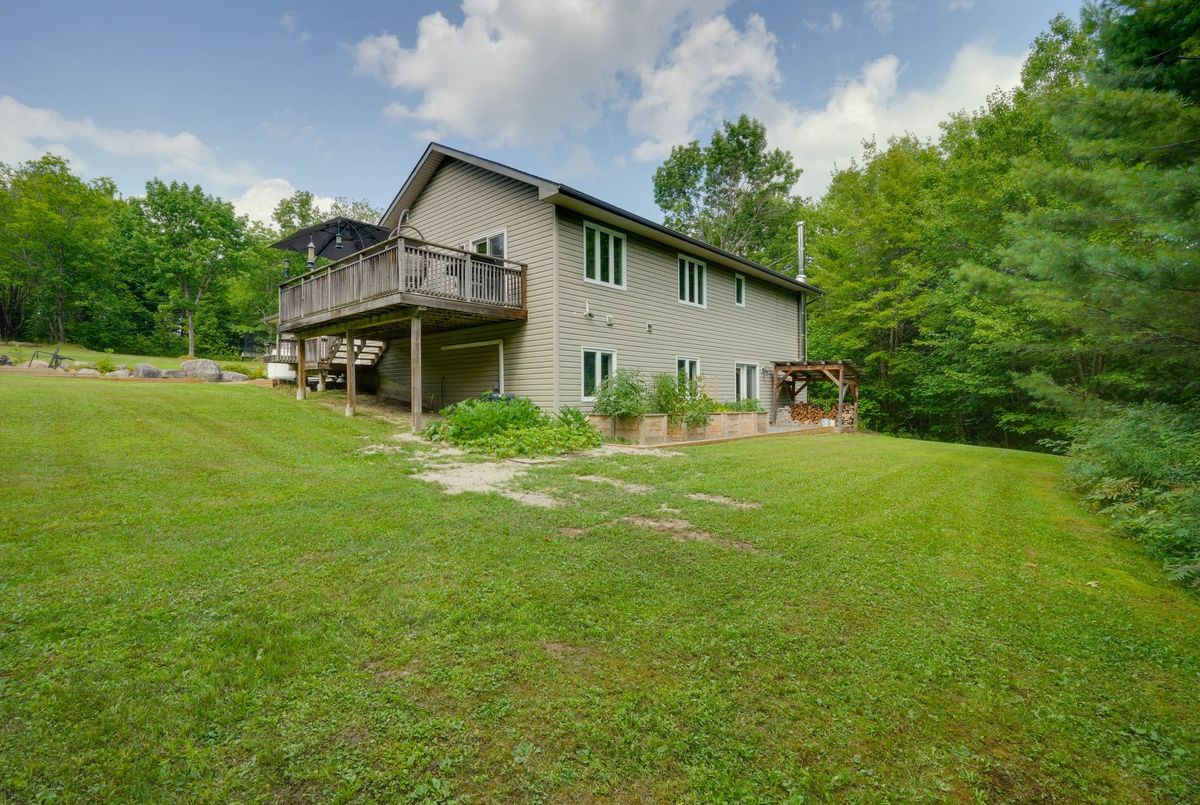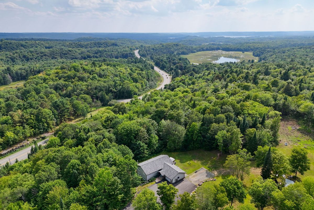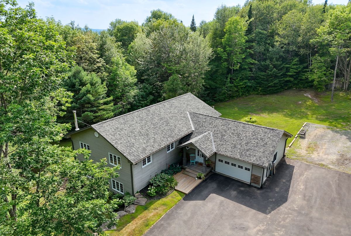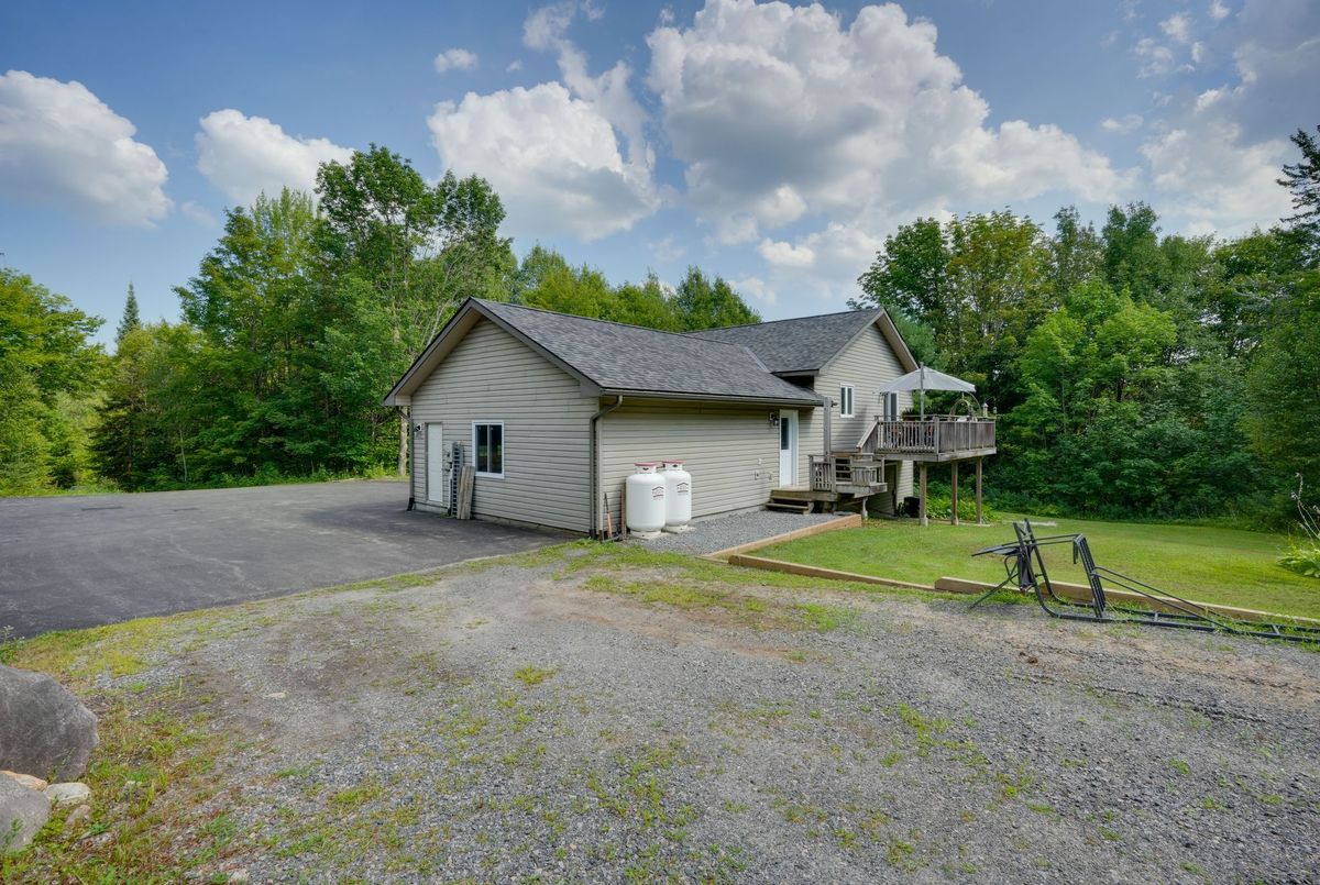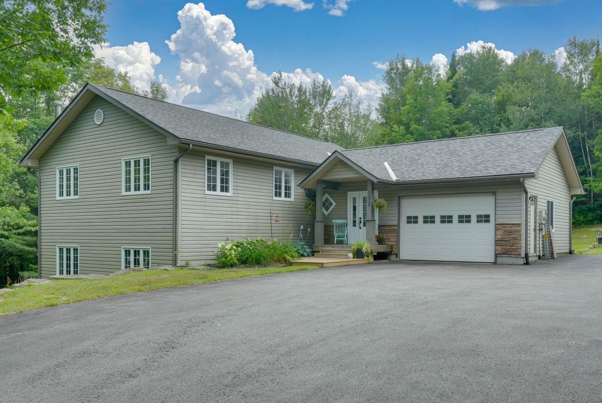 Proudly offered by its original owner, this 1600+sq.ft. bungalow blends wide-open living with the peaceful ease of the countryside. The heart of the home is an open-concept, country-style kitchen with living and dining areas flowing together-perfect for family suppers or friendly gatherings that spill out to the BBQ and entertaining deck. On the main level, you'll find three bedrooms, including a spacious primary with walk-in closet and ensuite, plus a second full bath to keep mornings running smooth. Downstairs, a fully finished walk-out basement offers two more bedrooms, a third bath, and a cozy rec room warmed by a wood stove - an inviting space for guests or the makings of a future in-law suite. A paved, meandering drive leads you in from the road to your attached double garage and handsome timer-frame style outbuilding. All of this is set on 12 rolling acres of open space and lush tree canopy - room to roam, garden, or simply breathe it all in. And when you're ready for a change of scenery, you're just minutes from town, the ski hill, and a sparkling collection of nearby lakes. This is the kind of place that feels like home the moment you turn up the drive.