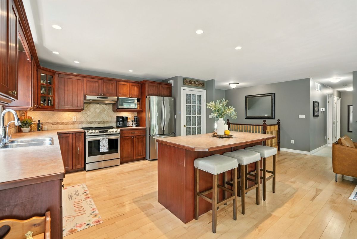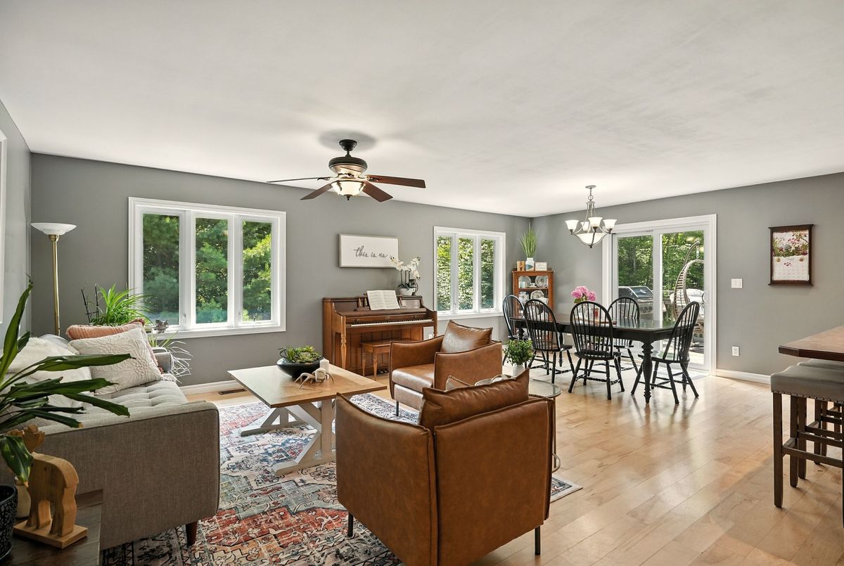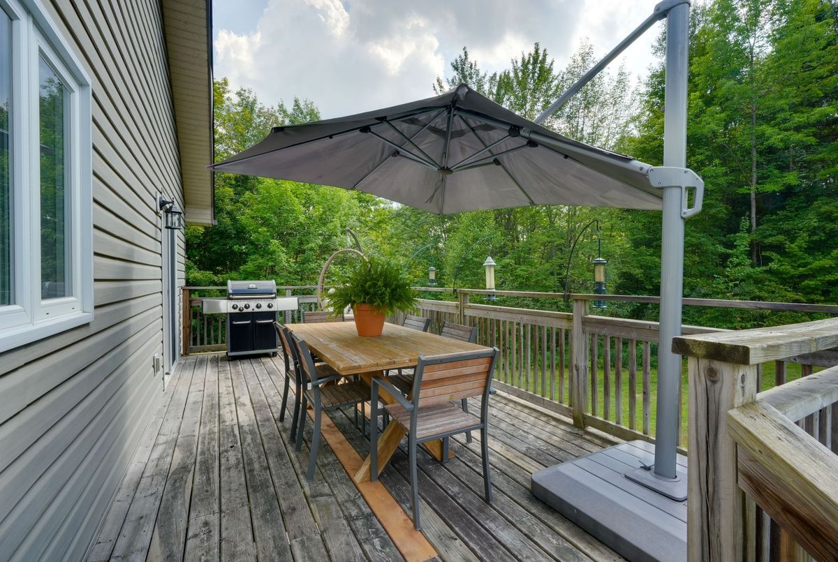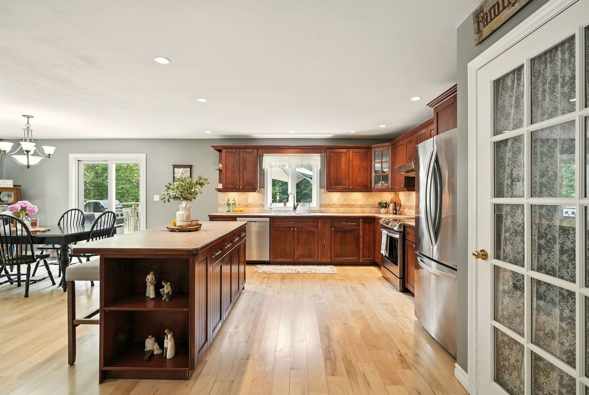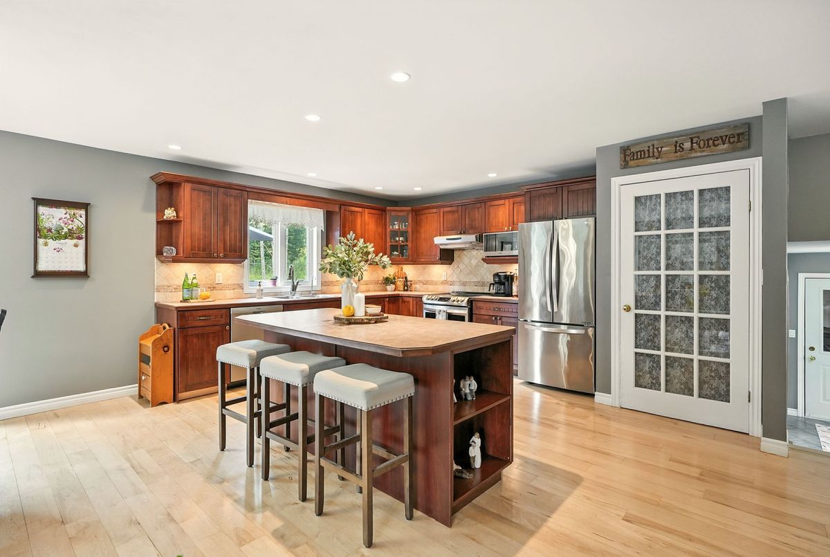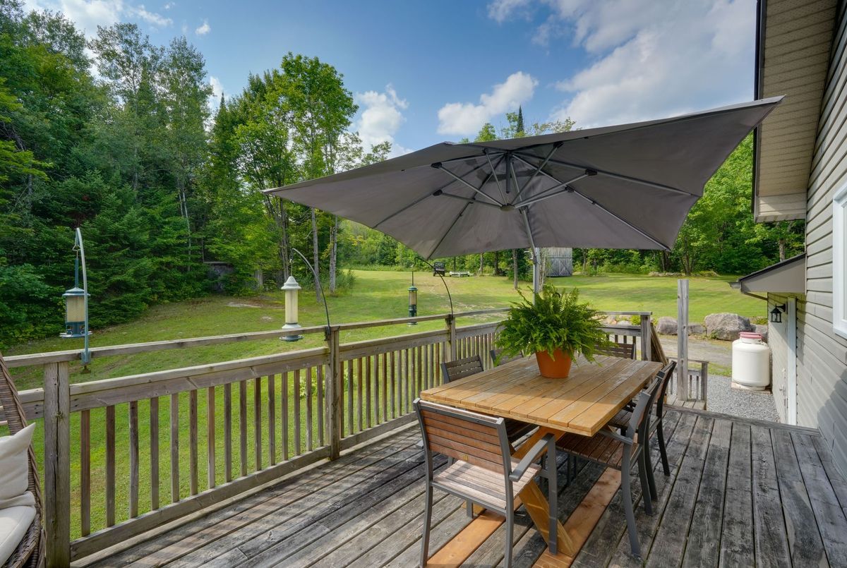 Proudly offered by its original owner, this 1600+sq.ft. bungalow blends wide-open living with the peaceful ease of the countryside. The heart of the home is an open-concept, country-style kitchen with living and dining areas flowing together-perfect for family suppers or friendly gatherings that spill out to the BBQ and entertaining deck. On the main level, you'll find three bedrooms, including a spacious primary with walk-in closet and ensuite, plus a second full bath to keep mornings running smooth. Downstairs, a fully finished walk-out basement offers two more bedrooms, a third bath, and a cozy rec room warmed by a wood stove - an inviting space for guests or the makings of a future in-law suite. A paved, meandering drive leads you in from the road to your attached double garage and handsome timer-frame style outbuilding. All of this is set on 12 rolling acres of open space and lush tree canopy - room to roam, garden, or simply breathe it all in. And when you're ready for a change of scenery, you're just minutes from town, the ski hill, and a sparkling collection of nearby lakes. This is the kind of place that feels like home the moment you turn up the drive.