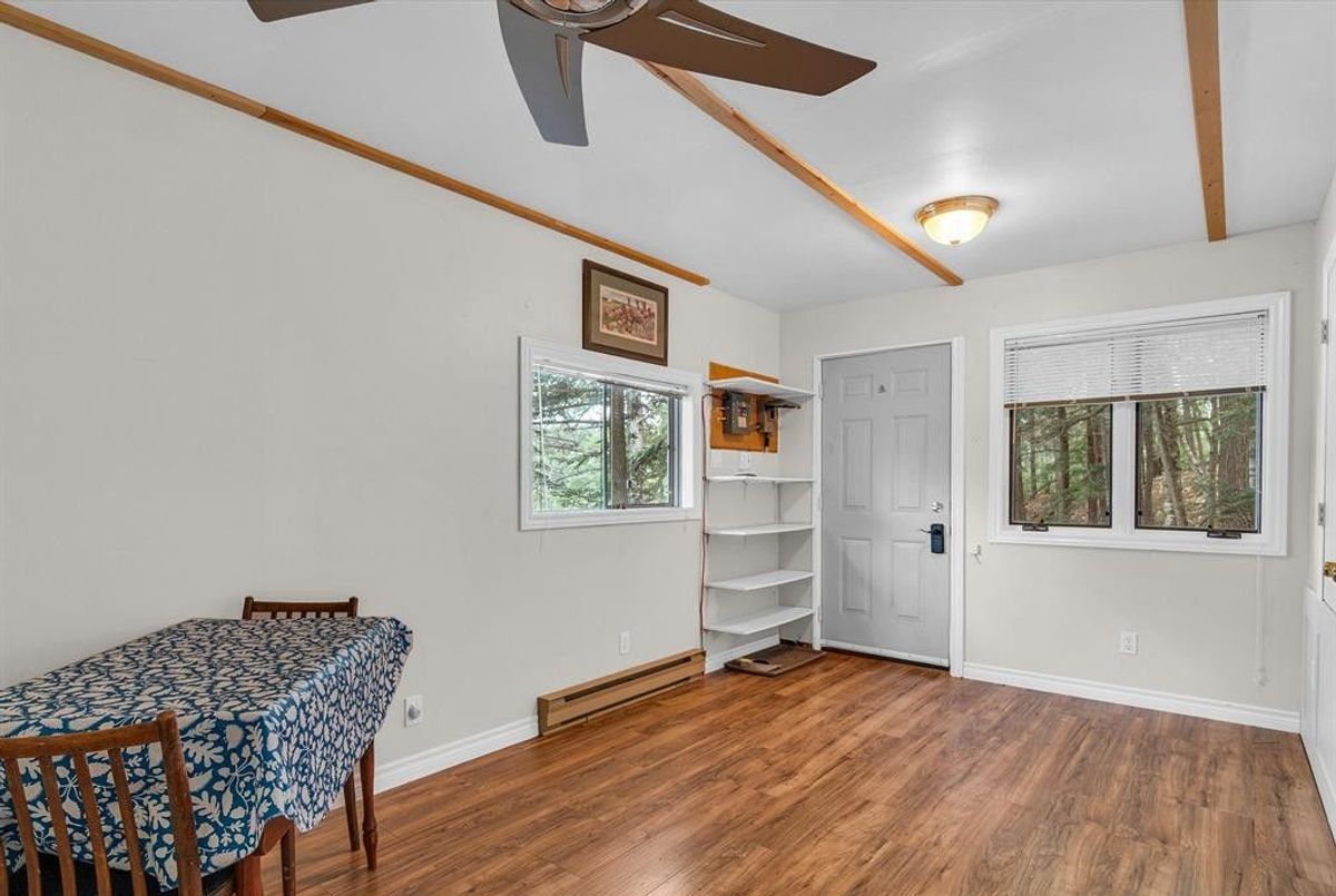 Welcome to this relaxing retreat on Otter Lake. Nestled into the shoreline and surrounded by tall evergreens, this well-maintained cottage sits right next to the water's edge. Here, you can enjoy peace and quiet where all you will hear is the wind through the trees and the water lapping on the shoreline. Stunning lake views will captivate you from the moment you arrive. A large kitchen with all of the modern conveniences, abundant storage, and plenty of space for food prep opens into a spacious living room where memories will be made through family game nights or movie nights, gathered around the cozy wood stove. Two generous bedrooms and a three-piece bath complete the cottage.Have a teen who wants their own space or planning to host guests? The bunkie offers additional sleeping space and a three-piece bath. It could also serve as an office or craft room for rainy days. There's room for everyone at this waterside escape.The cottage is being sold fully furnished and is ready for you to enjoy. A new driveway and retaining wall have been recently completed. Just minutes to the Village of Dorset, the hub of Lake of Bays, and a quick drive to the Dorset Fire Tower or Haliburton Highlands Water Trails! If you love exploring, you'll appreciate this convenient location.