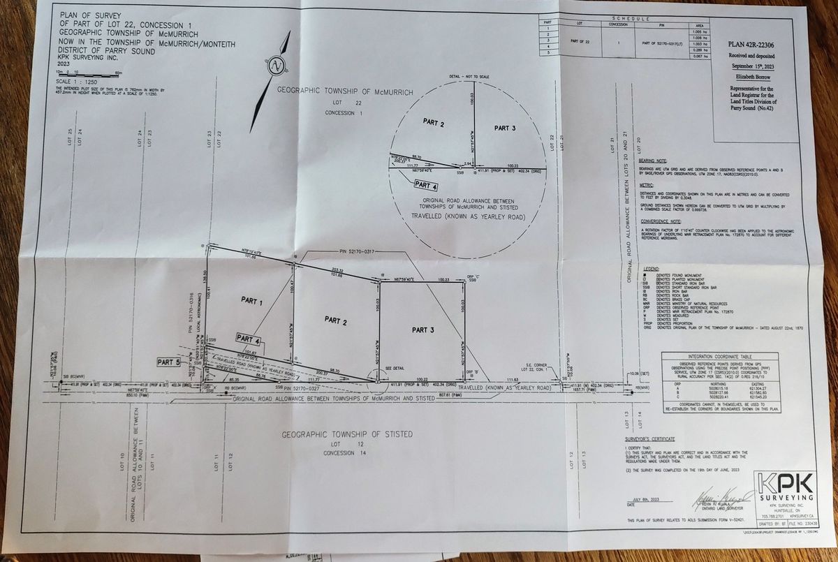 Recently created 2.48 acre lot on Yearley Rd in the Township of McMurrich, only 20 minutes to Huntsville. The lot has a frontage of 333 ft with driveway entrance already installed. Great building lot, predominantly hardwood with mix of mature trees, and hydro nearby. Ready for your plans!