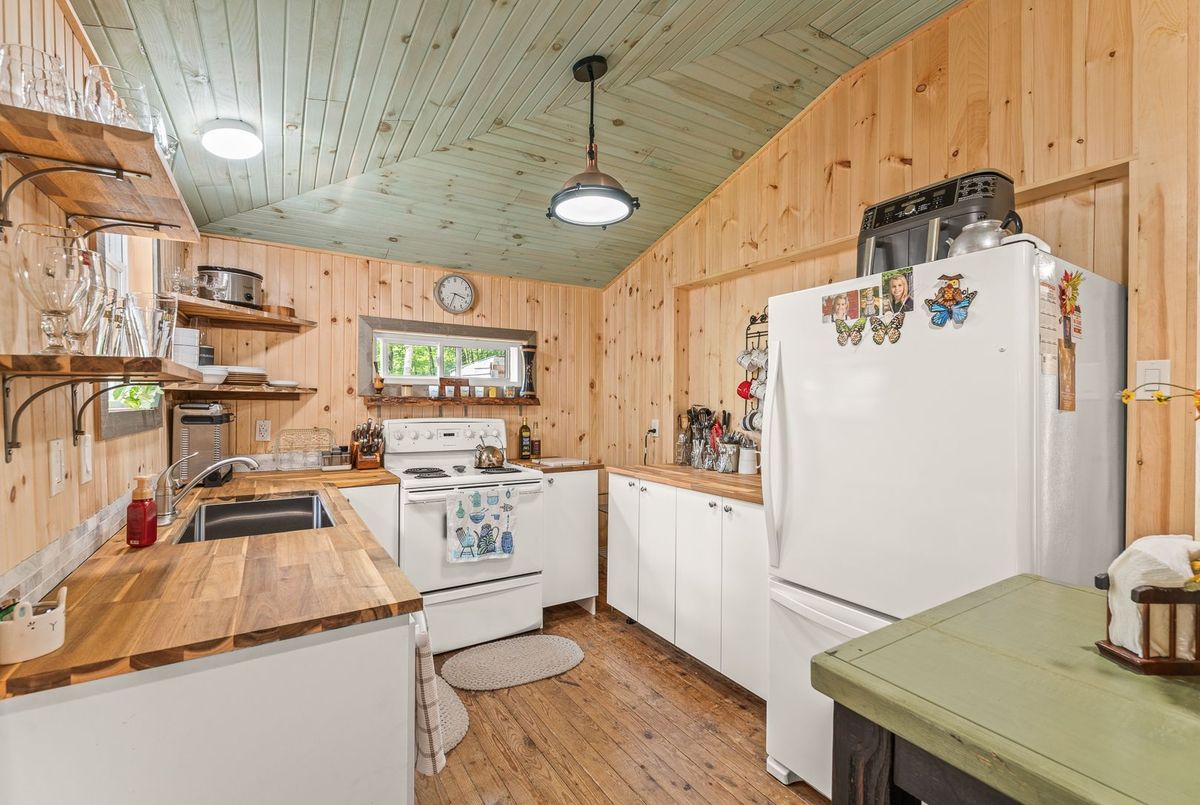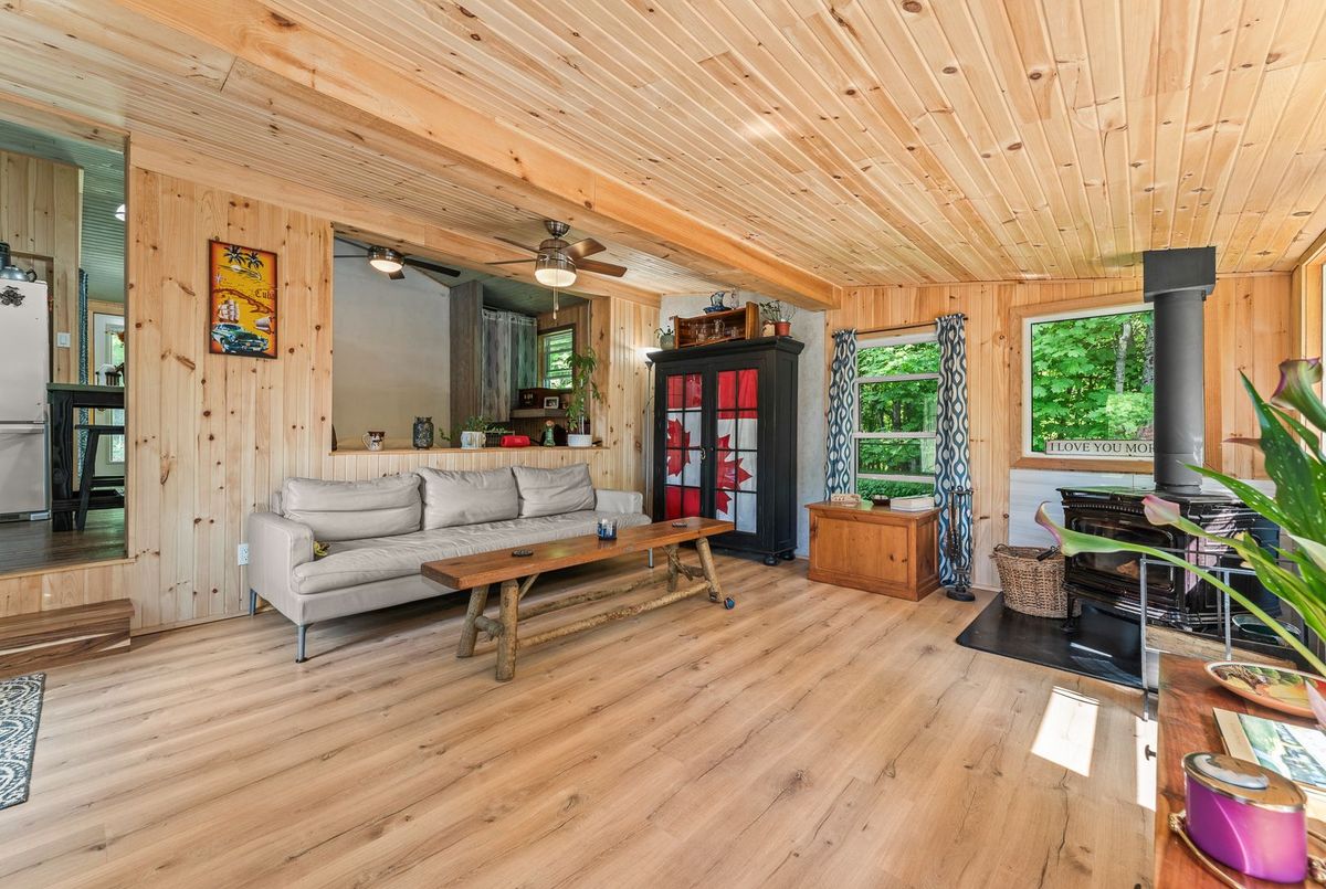 Tucked just a short walk from the shores of Three Mile Lake, this well-maintained property offers a mix of comfort, efficiency, and easy lake access all on just over a quarter acre of land. Inside, you'll find warm pine ceilings, spray-foamed insulation throughout (including walls, ceiling, and crawl space), and a 200 amp panel plus a new hydro stack for peace of mind. The windows, door, and vinyl siding were updated in 2020, while the roof was redone in 2019 . Theres also a GenerLink hookup for backup power and an electric heater in the crawl space to keep things protected year-round. Water supply includes a drilled well (360 ft Deep). The septic is located at the back of the property, and garbage pickup is available in summer, with winter drop-off at the start of Cutler Rd .Outdoors, you'll enjoy the fire pit, two storage sheds, a woodshed, and a lovely trench underway for a future waterfall feature. While the hot tub is excluded, it's worth noting that its already hardwired in. A yearly road fee of $350 (2025) covers access to this peaceful spot, just steps away from the public road allowance to the lake your launch point for swims, paddles, or sunsets. Whether you're looking for a weekend getaway or a four-season retreat, this one has the essentials in place and the upgrades already done.
