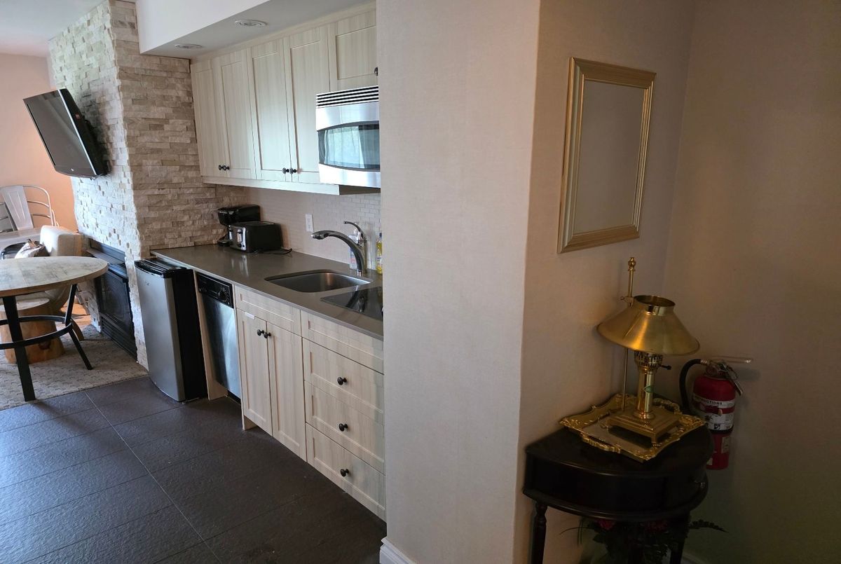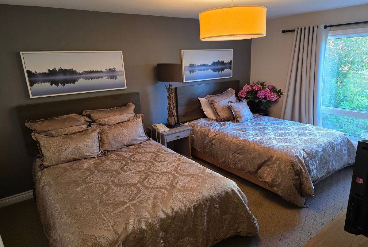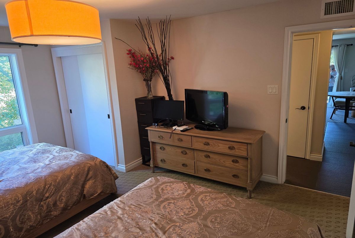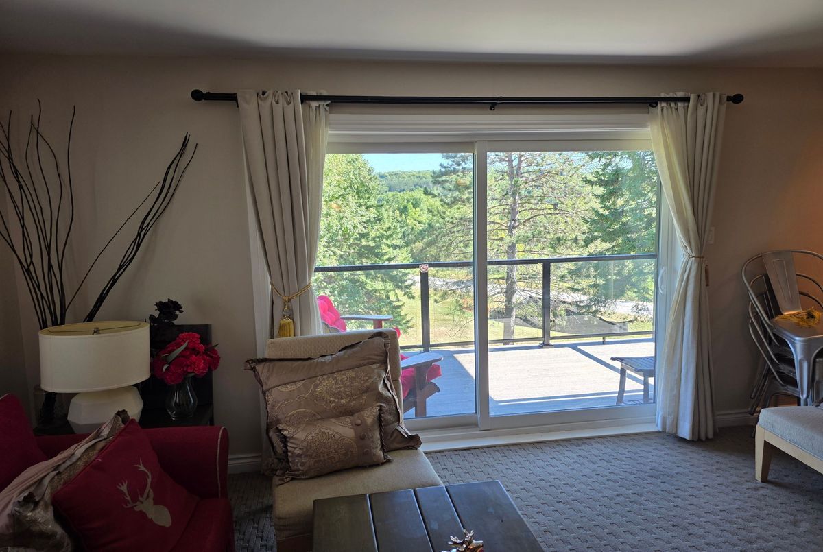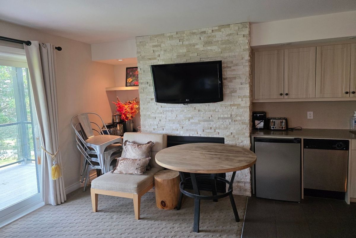 This Summit Lodge suite is on the second floor with a balcony overlooking the gardens with a Southern exposure. This suite is offered furnished with two double beds in the bedroom. There is a cozy gas fireplace in the living room. The view from the windows and balcony are breath-taking. Enjoy all day sun from this suite. The building exterior, including the deck and patio door have been recently renovated. Being conveniently located close to the Main Building at Deerhurst Resort, you have convenient and easy access to the many activities, restaurants and other amenities such as the pools, waterfront and trails. There are so many activities to do that no members of the family will be bored in either summer or winter: paintball, tree top trekking, cross country skiing, downhill skiing, snow shoeing, snowmobiling, hiking trails, beach, boating, fishing, indoor and outdoor swimming pools, tennis courts, golf, and much more! This is truly an amazing Resort.