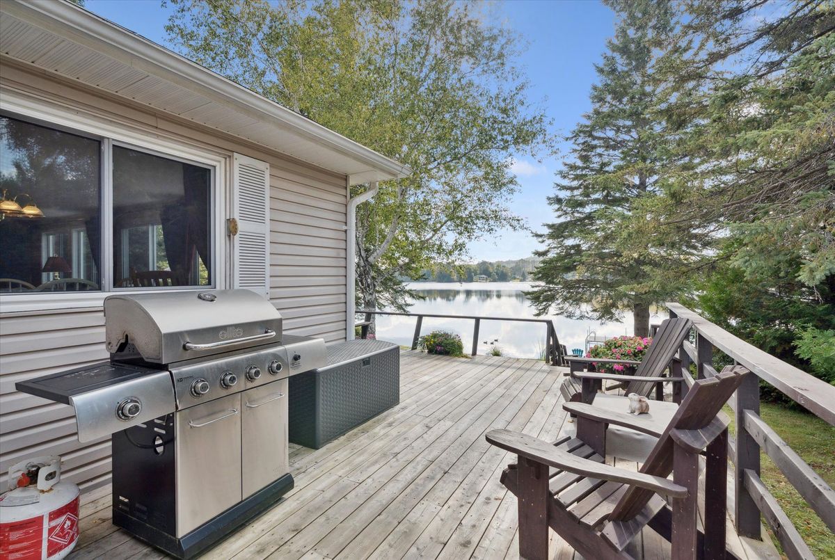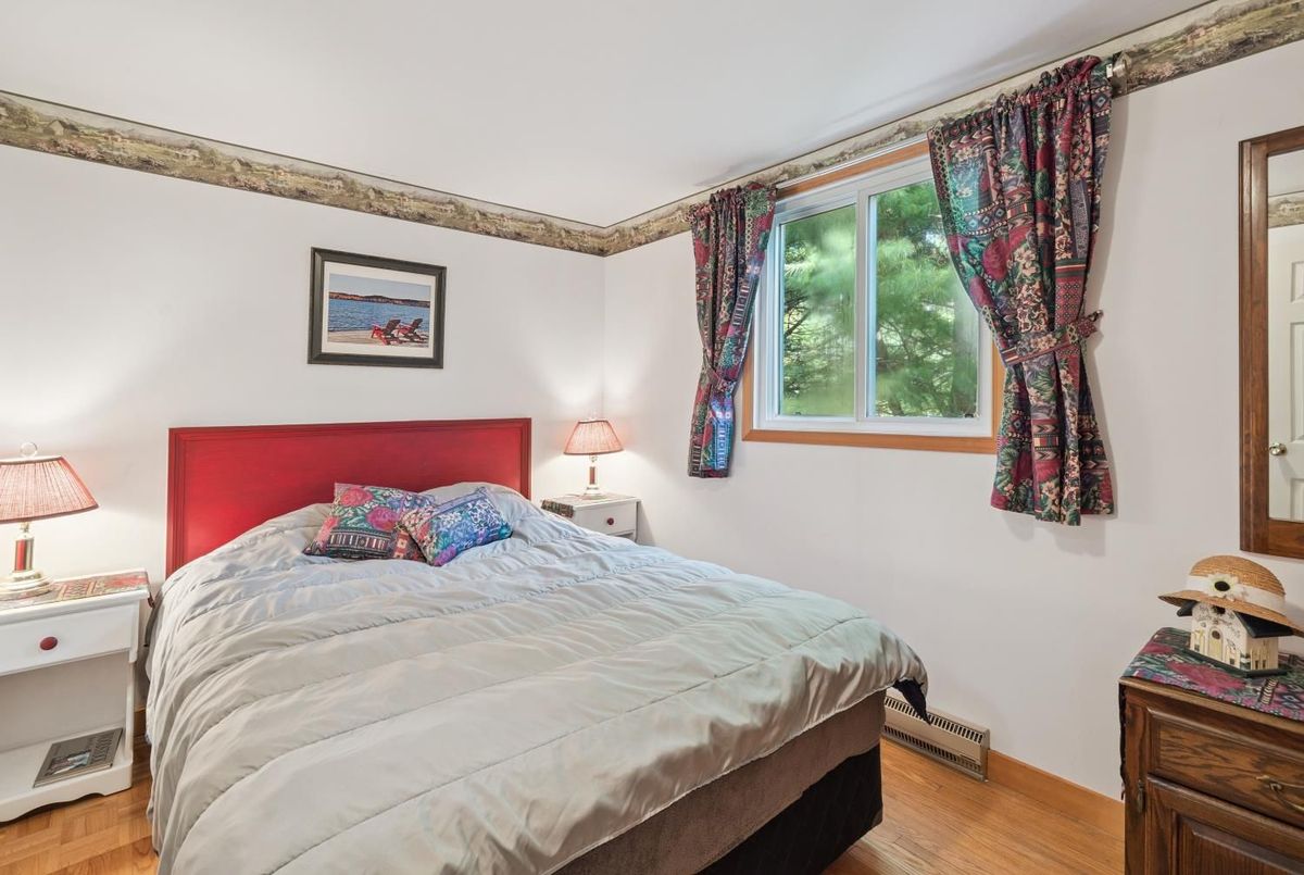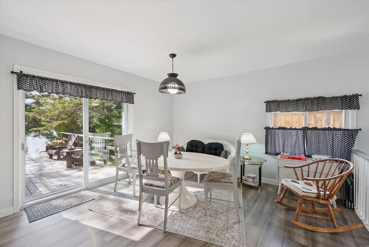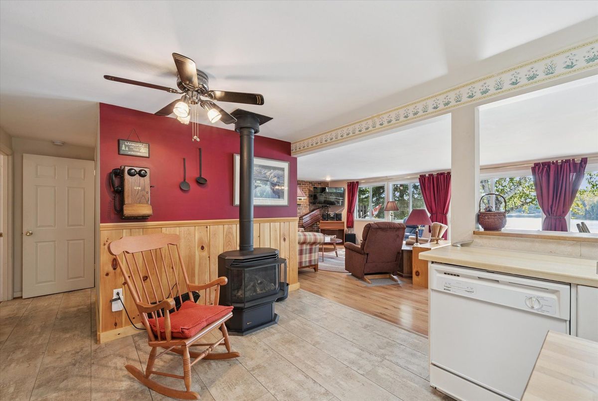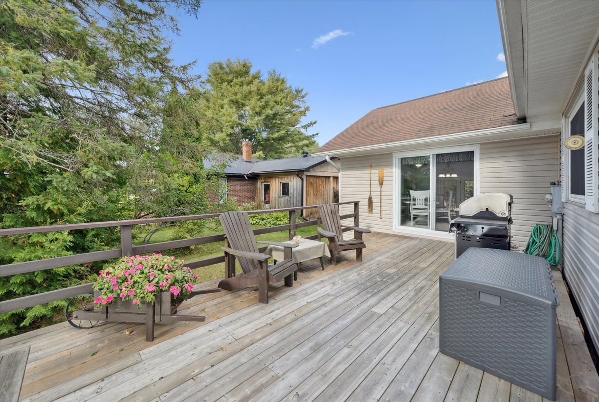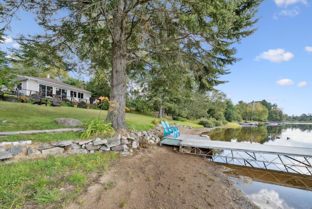 Enjoy waterfront living in this large bungalow on Hassard Lake in Kearney on a paved, year round road very close to the town of Kearney. There are 4 comfortable bedrooms. The Primary is over-sized with a sitting area and ensuite bathroom. The living, dining and kitchen areas are comfortable for family and friends to gather and in the winter, warm up at the wood burning fireplace. This area opens up to a large deck and views to the spectacular waterfront. Off of the kitchen is a fun games-room or second dining room for the big crowds. The lot is level so no concerns about walking steps tow the waterfront. The lot is large and has a paved driveway and a large 2-car garage which is detached from the house has a metal roof. (The garage has been pre-wired for electricity.) The well is a sand-point with sediment filter. You will find the laundry and large workshop are in the unfinished basement. This property is turn-key and includes all furniture and appliances as well as the items in the garage. The sump pump has a battery back-up. There is a 200 amp electrical service and heat is by the propane gas stove in the kitchen with electric baseboard heaters as secondary heat. The waterfront features hard-packed sand and shallow water which progressively gets deeper so that you can dock your boat easily. Updates: electrical and plumbing 2003, heating 2018, shingle roof 2014.