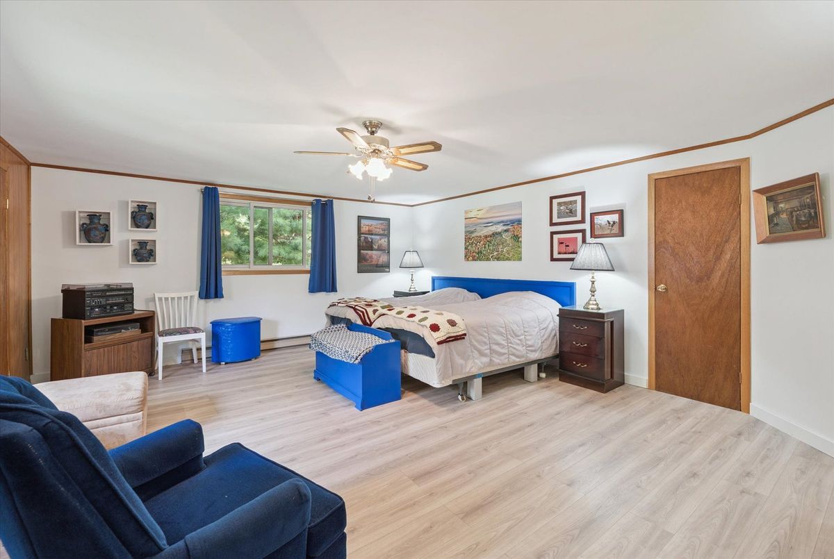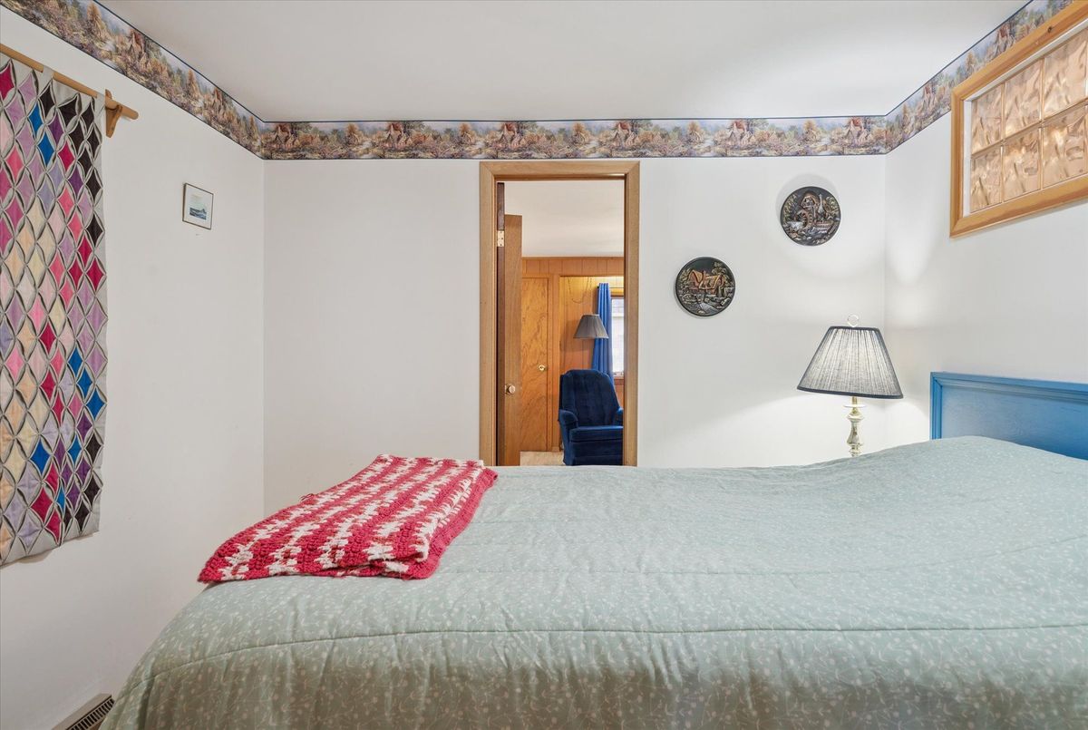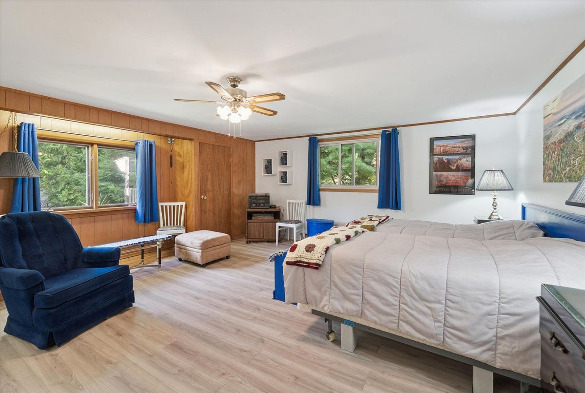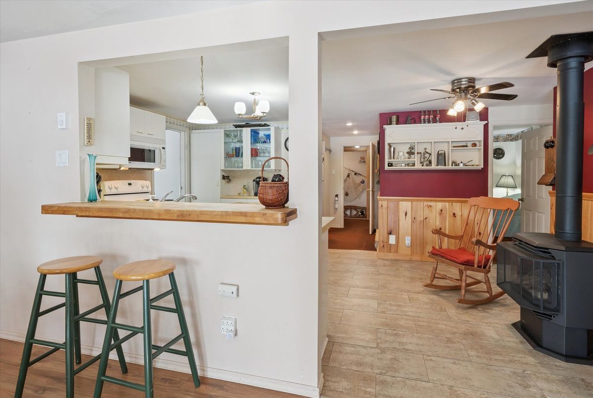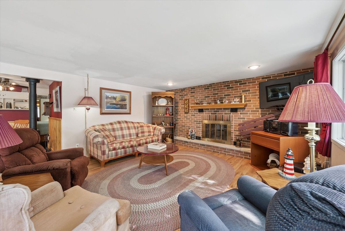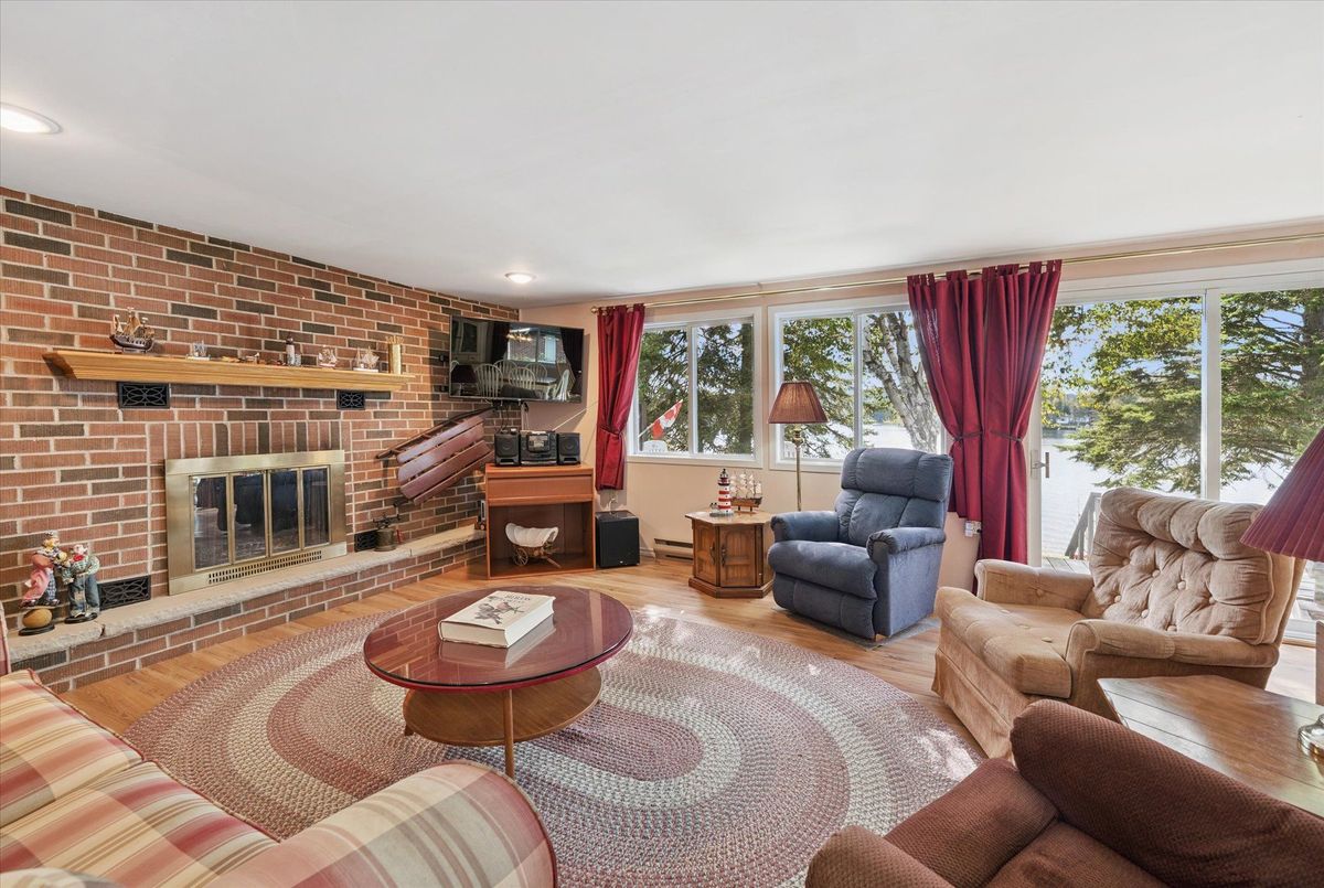 Enjoy waterfront living in this large bungalow on Hassard Lake in Kearney on a paved, year round road very close to the town of Kearney. There are 4 comfortable bedrooms. The Primary is over-sized with a sitting area and ensuite bathroom. The living, dining and kitchen areas are comfortable for family and friends to gather and in the winter, warm up at the wood burning fireplace. This area opens up to a large deck and views to the spectacular waterfront. Off of the kitchen is a fun games-room or second dining room for the big crowds. The lot is level so no concerns about walking steps tow the waterfront. The lot is large and has a paved driveway and a large 2-car garage which is detached from the house has a metal roof. (The garage has been pre-wired for electricity.) The well is a sand-point with sediment filter. You will find the laundry and large workshop are in the unfinished basement. This property is turn-key and includes all furniture and appliances as well as the items in the garage. The sump pump has a battery back-up. There is a 200 amp electrical service and heat is by the propane gas stove in the kitchen with electric baseboard heaters as secondary heat. The waterfront features hard-packed sand and shallow water which progressively gets deeper so that you can dock your boat easily. Updates: electrical and plumbing 2003, heating 2018, shingle roof 2014.