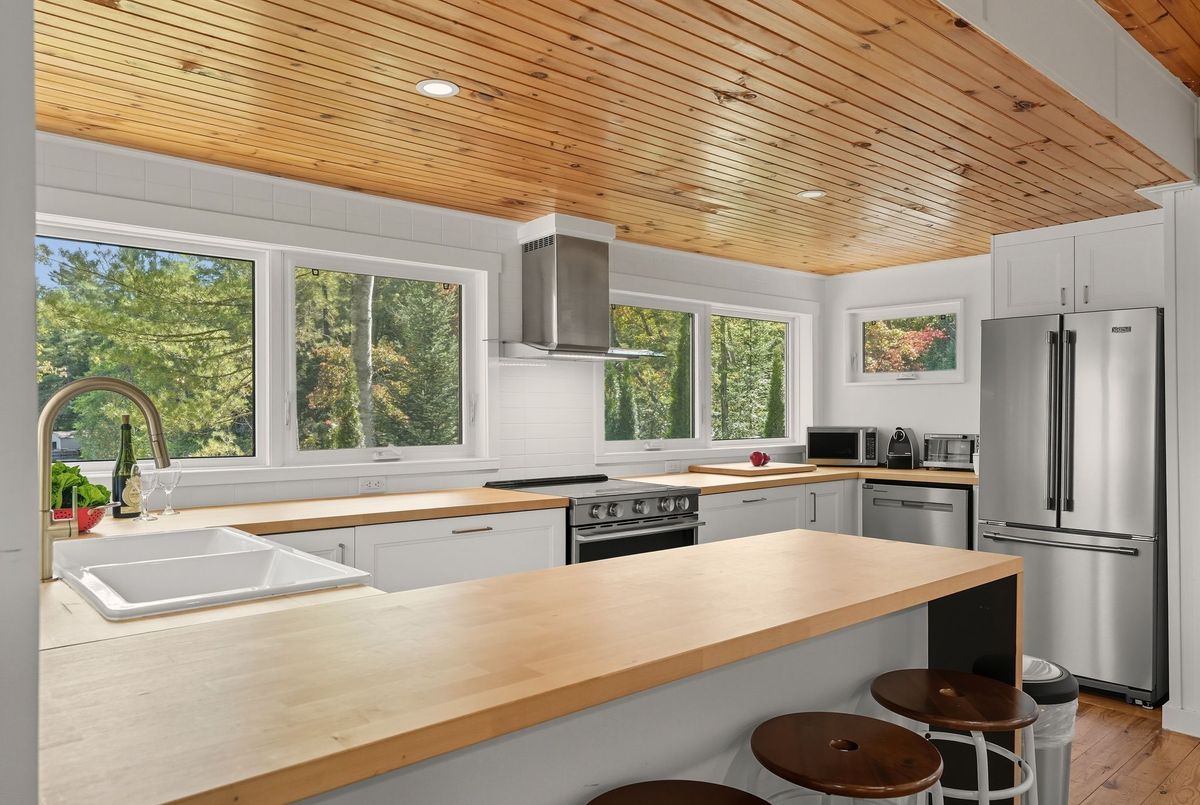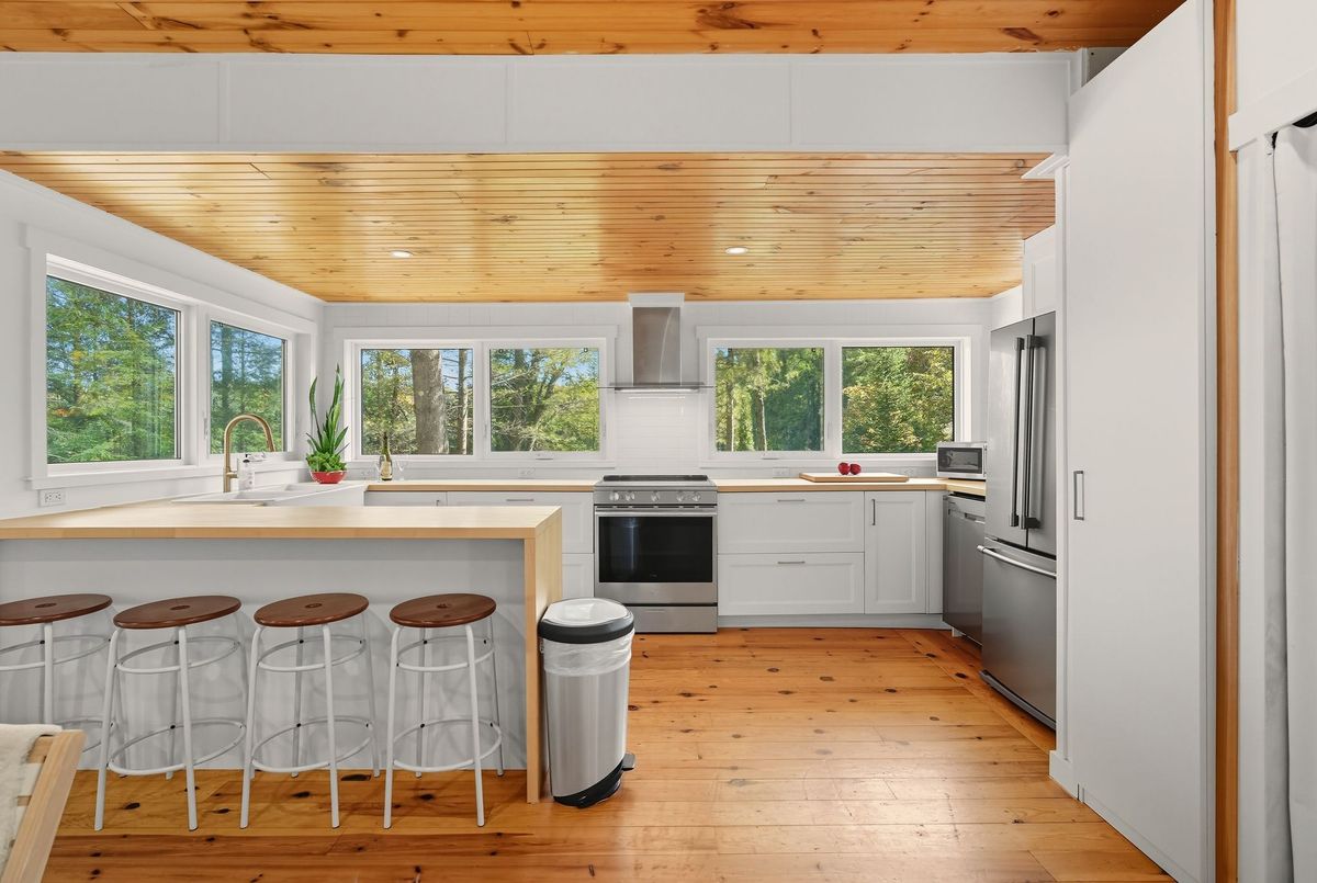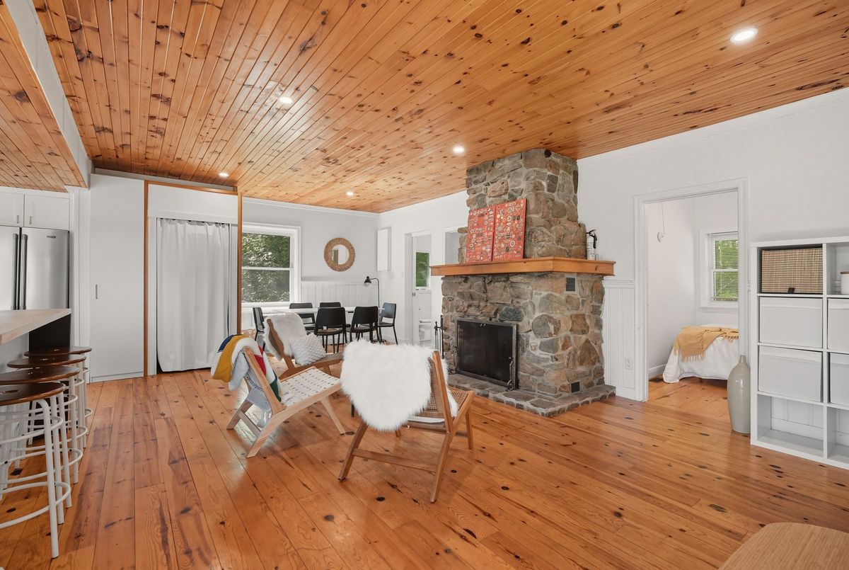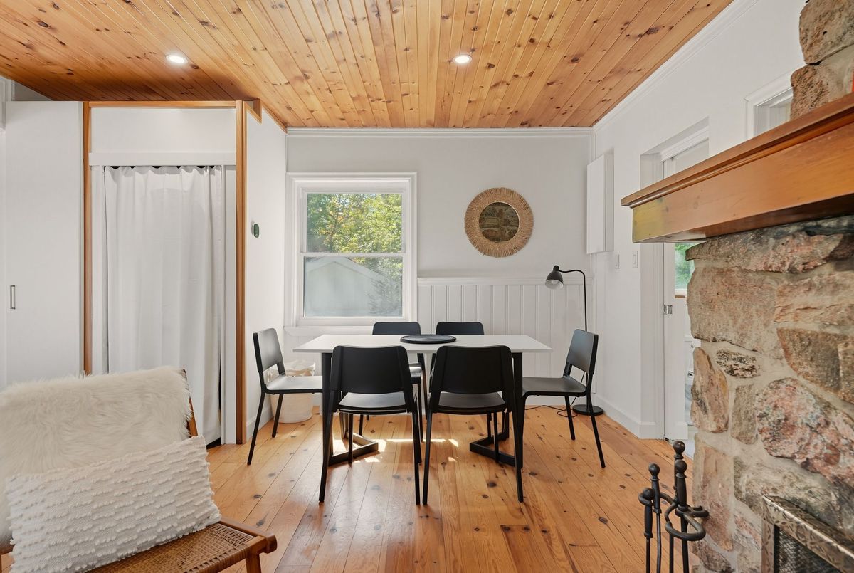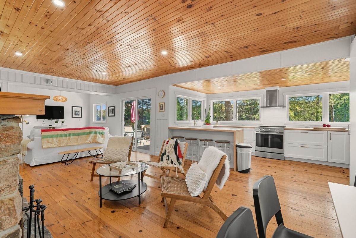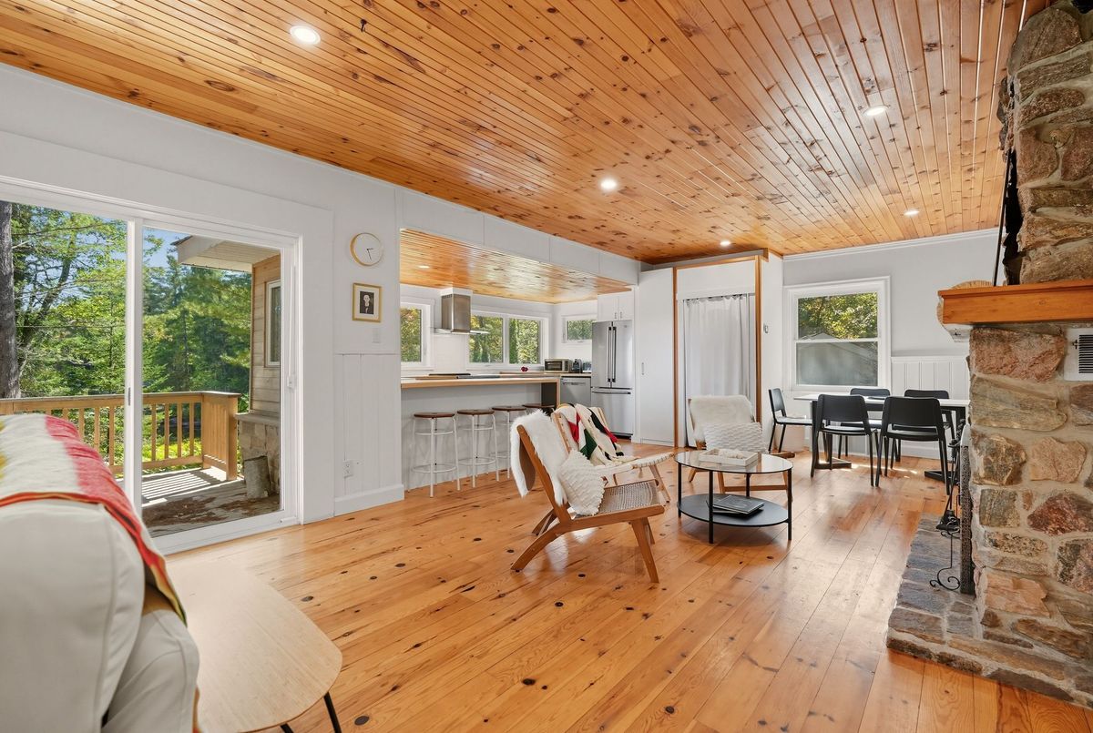Welcome to a timeless Muskoka retreat thoughtfully updated for modern comfort and year-round enjoyment. Nestled on the shores of sought-after Pine Lake a pristine, spring-fed gem, this four-season home or cottage offers over 230 feet of private frontage with a gradual, sandy entry, perfect for swimming, paddling, and family fun.Inside, the renovated interior features 3 bedrooms and 1 bathroom, with an open-concept living and dining area anchored by a cozy wood-burning fireplace. A wrap-around kitchen with built-in stainless steel appliances and wall-to-wall west-facing windows ensures breathtaking sunset views over the lake. Upgrades include central A/C and forced air propane furnace, a state-of-the-art water filtration system, stainless steel laundry, and even an outdoor shower for that authentic cottage feel.Step outside to enjoy an extended dock, a shore line fire pit, and a spacious deck where you can relax or entertain against the backdrop of Muskoka's natural beauty. A large double detached garage provides ample storage for all your toys, or could be transformed into for additional space.Located less than 20 km from downtown Bracebridge, youll have easy access to groceries, dining, and all amenities while still enjoying the peace and privacy of lakefront living. This is more than just a cottage; it's a lifestyle investment in relaxation, adventure, and family memories.