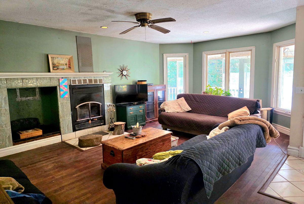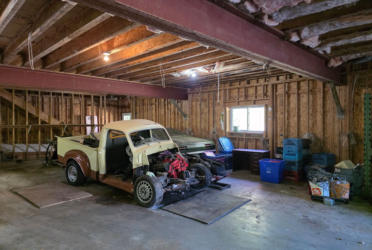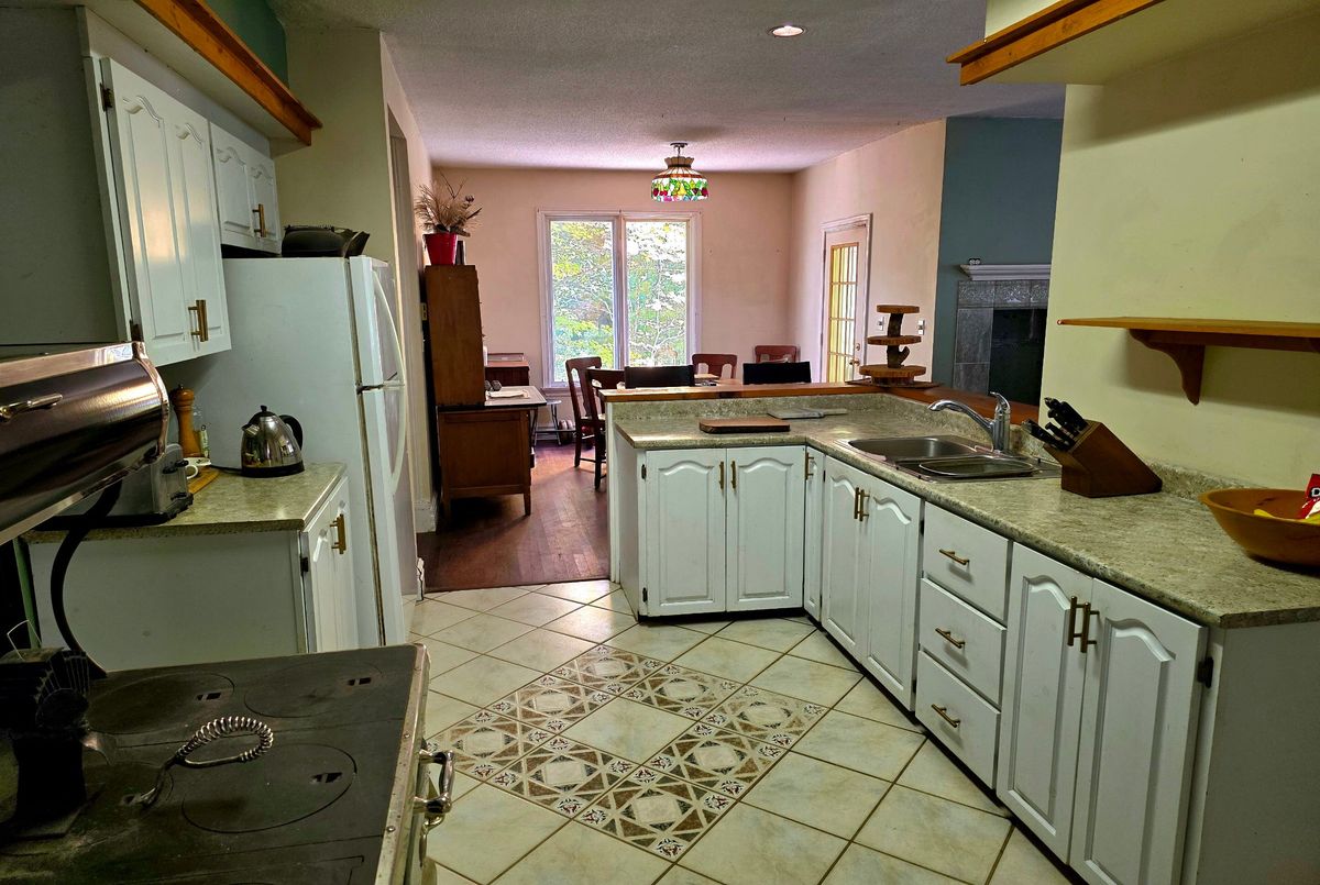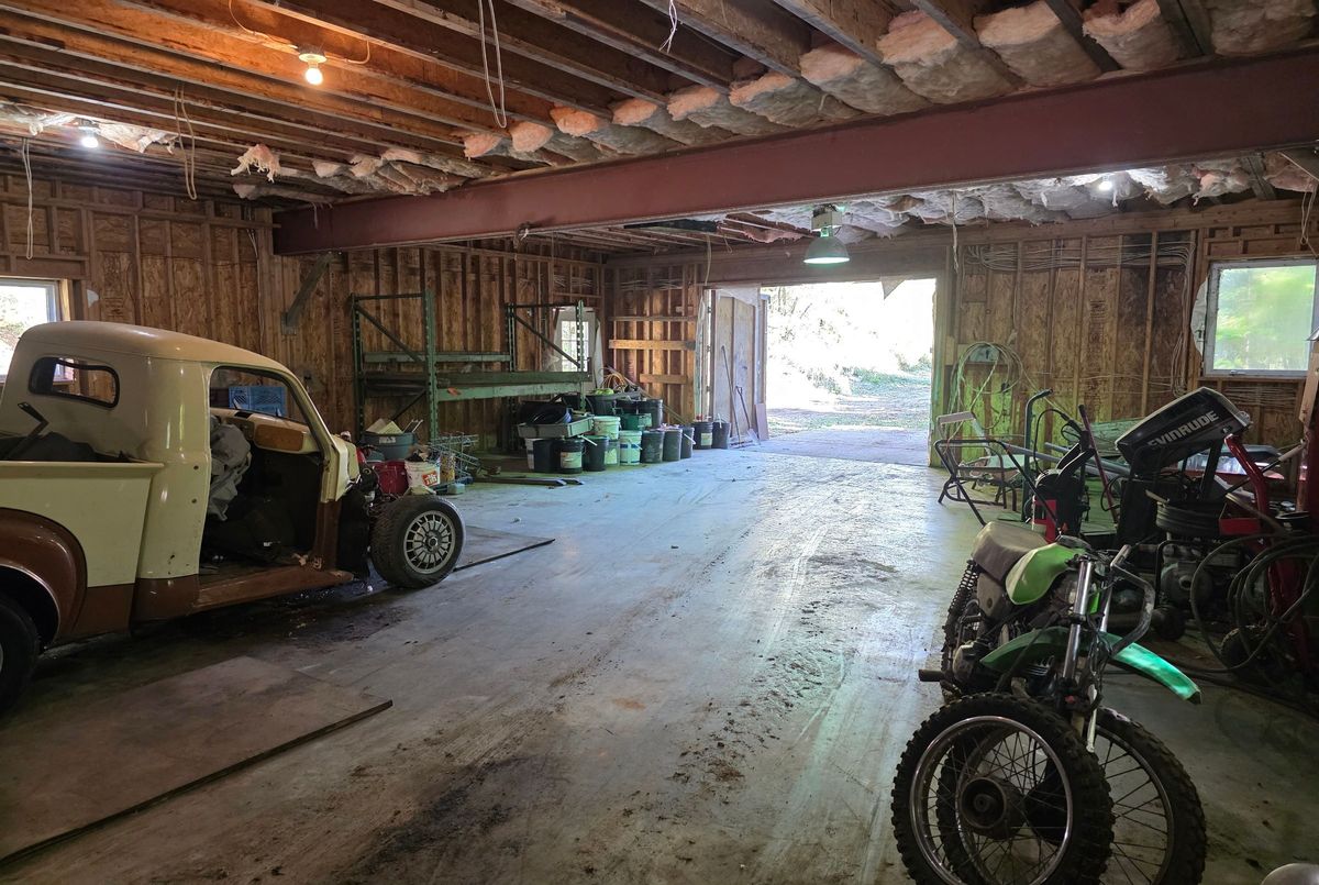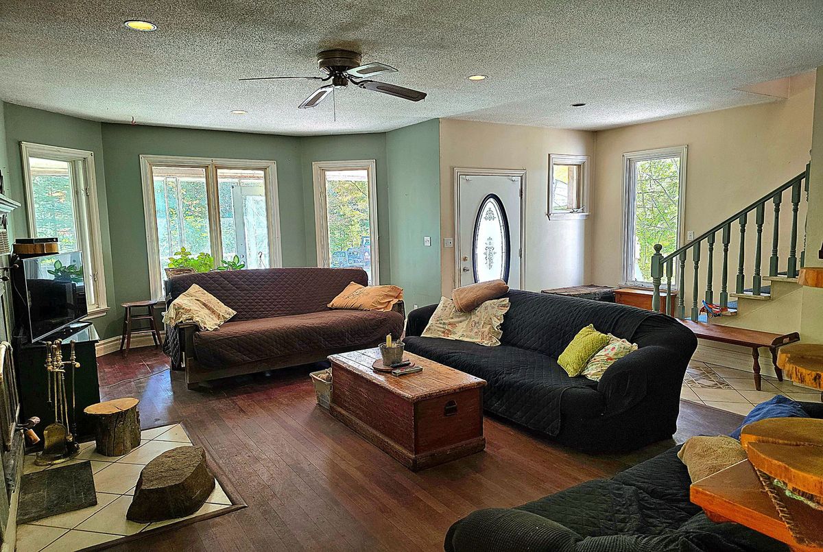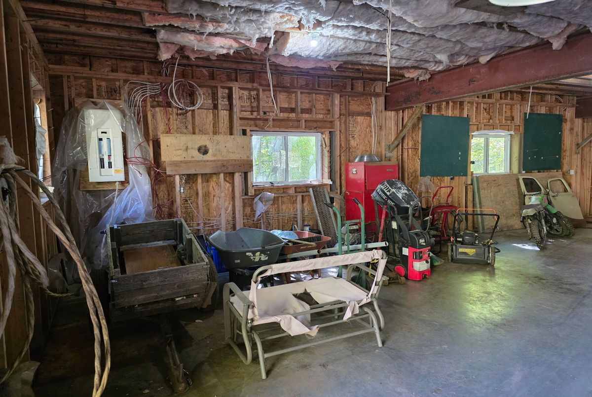 Welcome to this spectacular opportunity to own an open concept two-storey picturesque home perched on a granite outcropping with sunlight streaming in. The home has 9 foot ceilings and a wrap-around porch on a private, 5 acre lot. Three large bedrooms and two full bathrooms plus a 2 pc bathroom roughed in on the main floor. The Living Room features a wood-burning fireplace. Enjoy the convenience of having the Primary Bedroom complete with ensuite and walk-in closet on the main floor. Off of the kitchen is a mud room / laundry. The house has 200 amp electrical panel and the garage has a seperate 200 amp electrical panel. The house is in need of updating / repair. The vehicles, batteries, paints, etc. are in the process of being removed. This is a diamond in the rough - ready to be shined up to it's glory. In addition, there is a huge 49 ft x 29 ft garage with a 21 ft x 49 ft loft above is every man's dream of a, spacious garage / workshop!