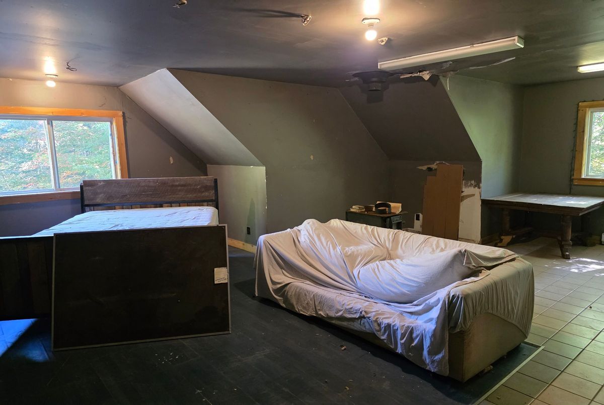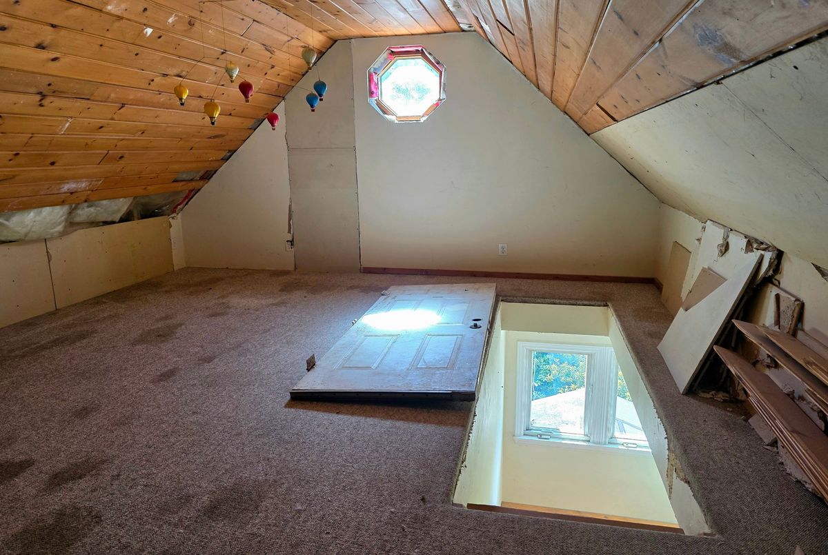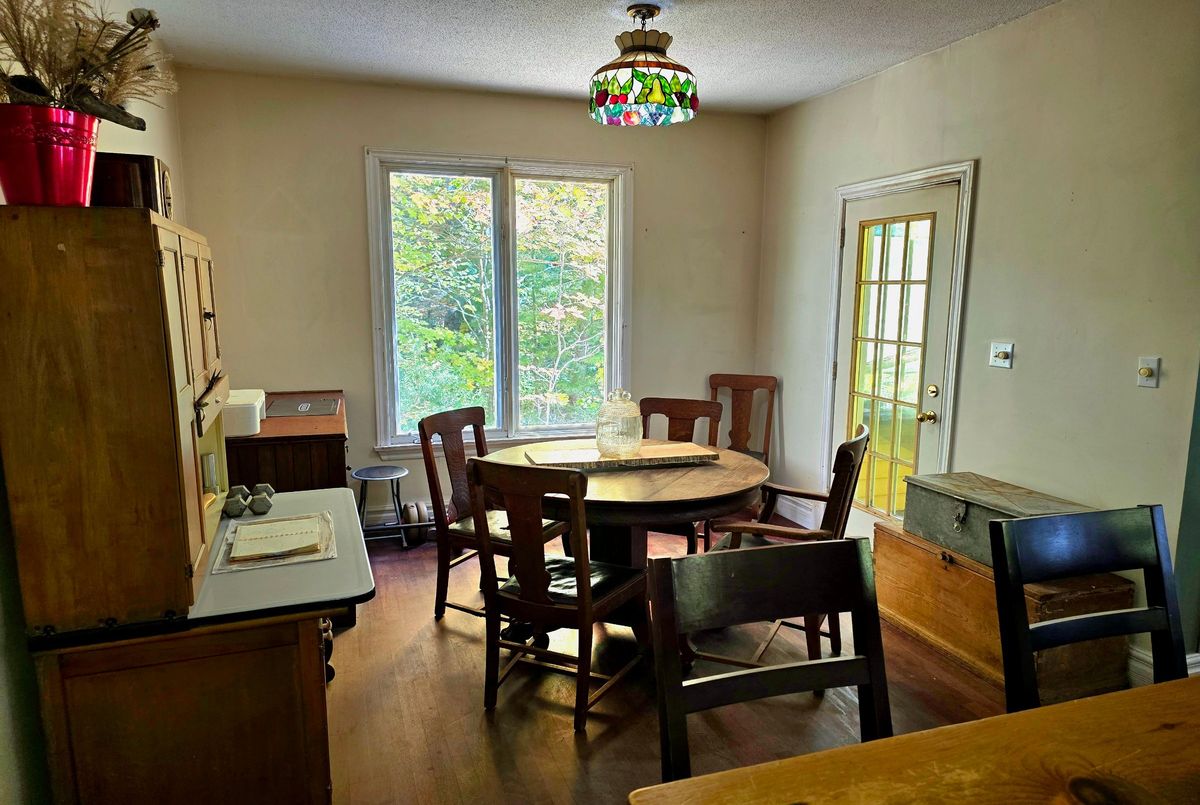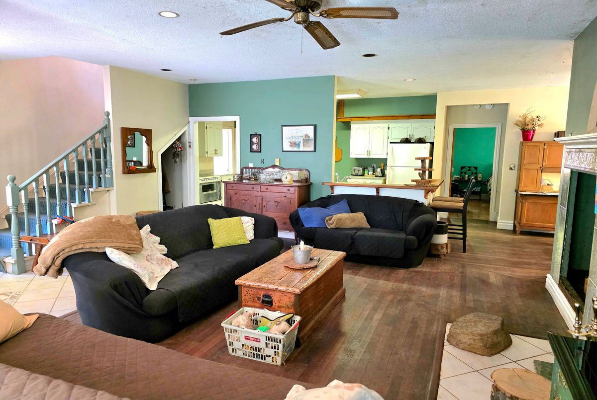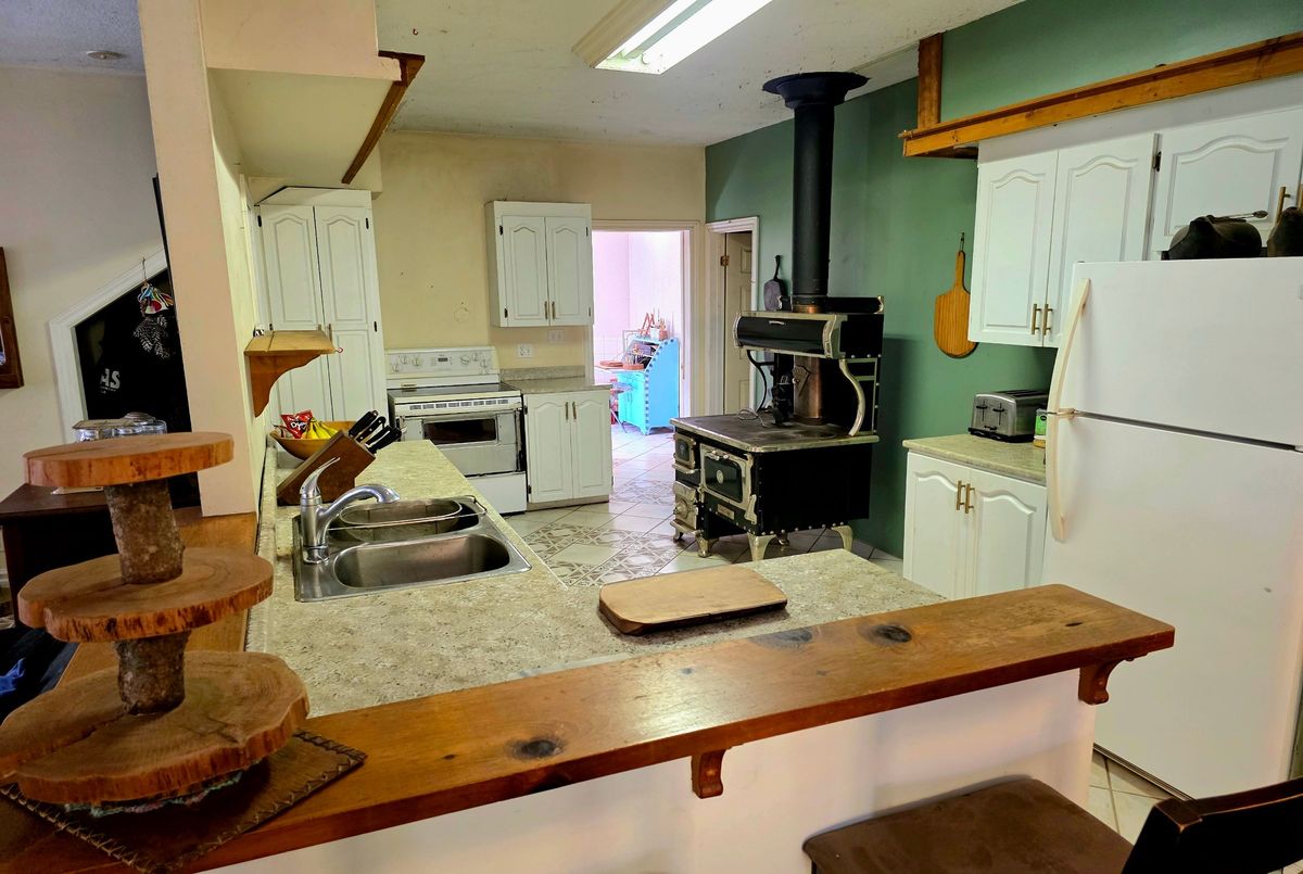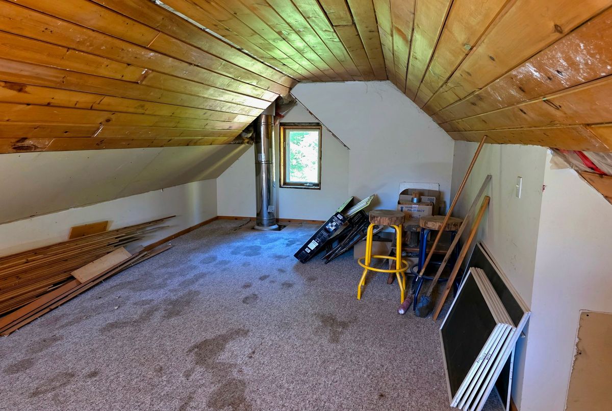 Welcome to this spectacular opportunity to own an open concept two-storey picturesque home perched on a granite outcropping with sunlight streaming in. The home has 9 foot ceilings and a wrap-around porch on a private, 5 acre lot. Three large bedrooms and two full bathrooms plus a 2 pc bathroom roughed in on the main floor. The Living Room features a wood-burning fireplace. Enjoy the convenience of having the Primary Bedroom complete with ensuite and walk-in closet on the main floor. Off of the kitchen is a mud room / laundry. The house has 200 amp electrical panel and the garage has a seperate 200 amp electrical panel. The house is in need of updating / repair. The vehicles, batteries, paints, etc. are in the process of being removed. This is a diamond in the rough - ready to be shined up to it's glory. In addition, there is a huge 49 ft x 29 ft garage with a 21 ft x 49 ft loft above is every man's dream of a, spacious garage / workshop!