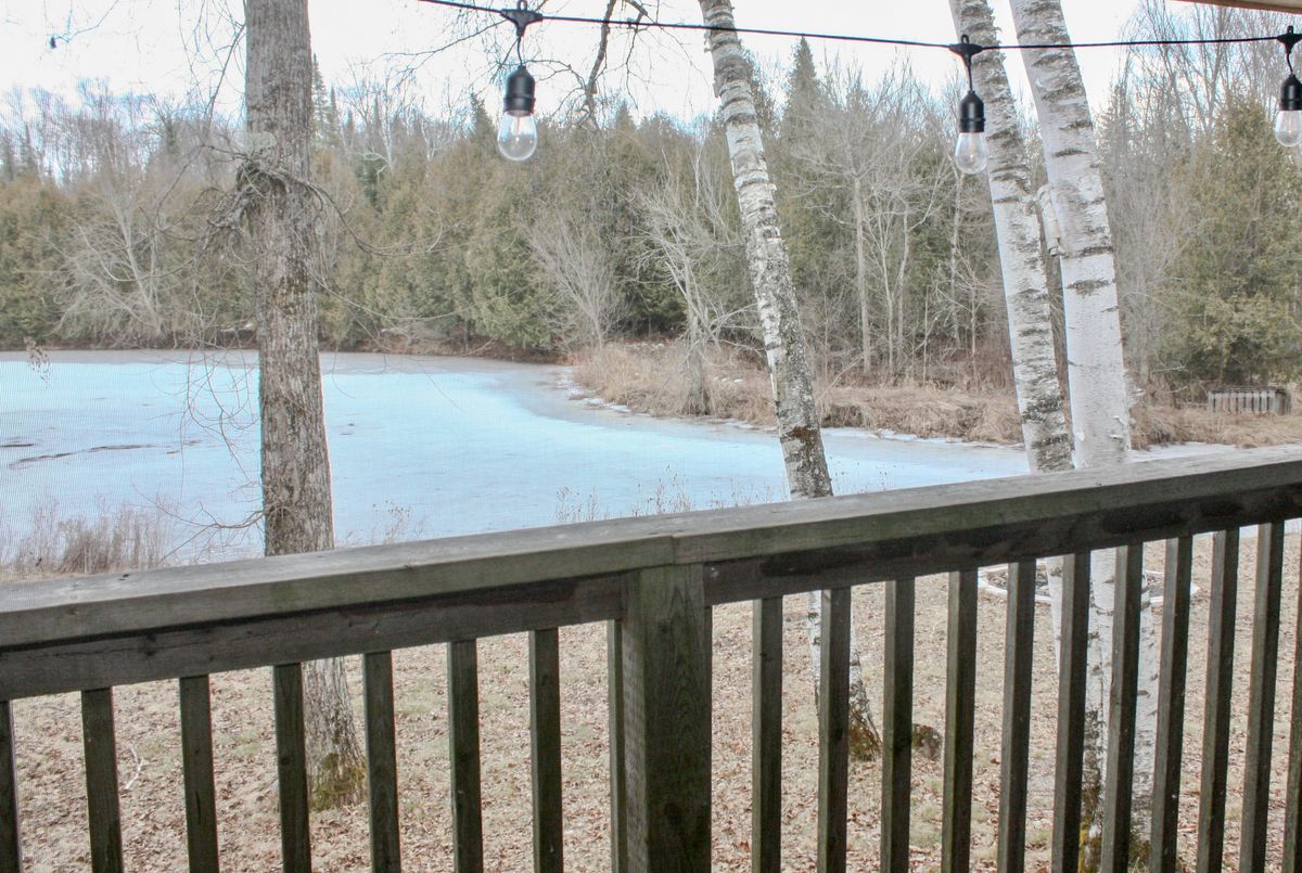 26 acre recreational property with trails and off grid cabin are the perfect getaway spot to welcome the winter months! Surround yourself with local wildlife and a variety of birds. This quaint off-grid cabin in the woods overlooks its own private pond. Situated on over 26 acres you will be surrounded by nature. Enjoy a quiet hike through the trees or relaxing campfire on the water's edge. Enjoy preparing your meals in a fully equipped kitchen with fridge, stove and plenty of counter space and storage. Gather around the dining room table to share family meals, games night or just relax before moving to the living room with sliding doors to the enclosed porch overlooking the pond. A woodstove keeps the cottage warm and toasty. A generator and battery pack allow lights, TV, fridge and computers to be used. Yes, there's wifi and cell service too! Upstairs is an open-concept bedroom with a view of the pond and two double beds. A 2 pc bath with compost toilet adds convenience. Just 5 mins to Warsaw and 20 mins to Hwy 115.