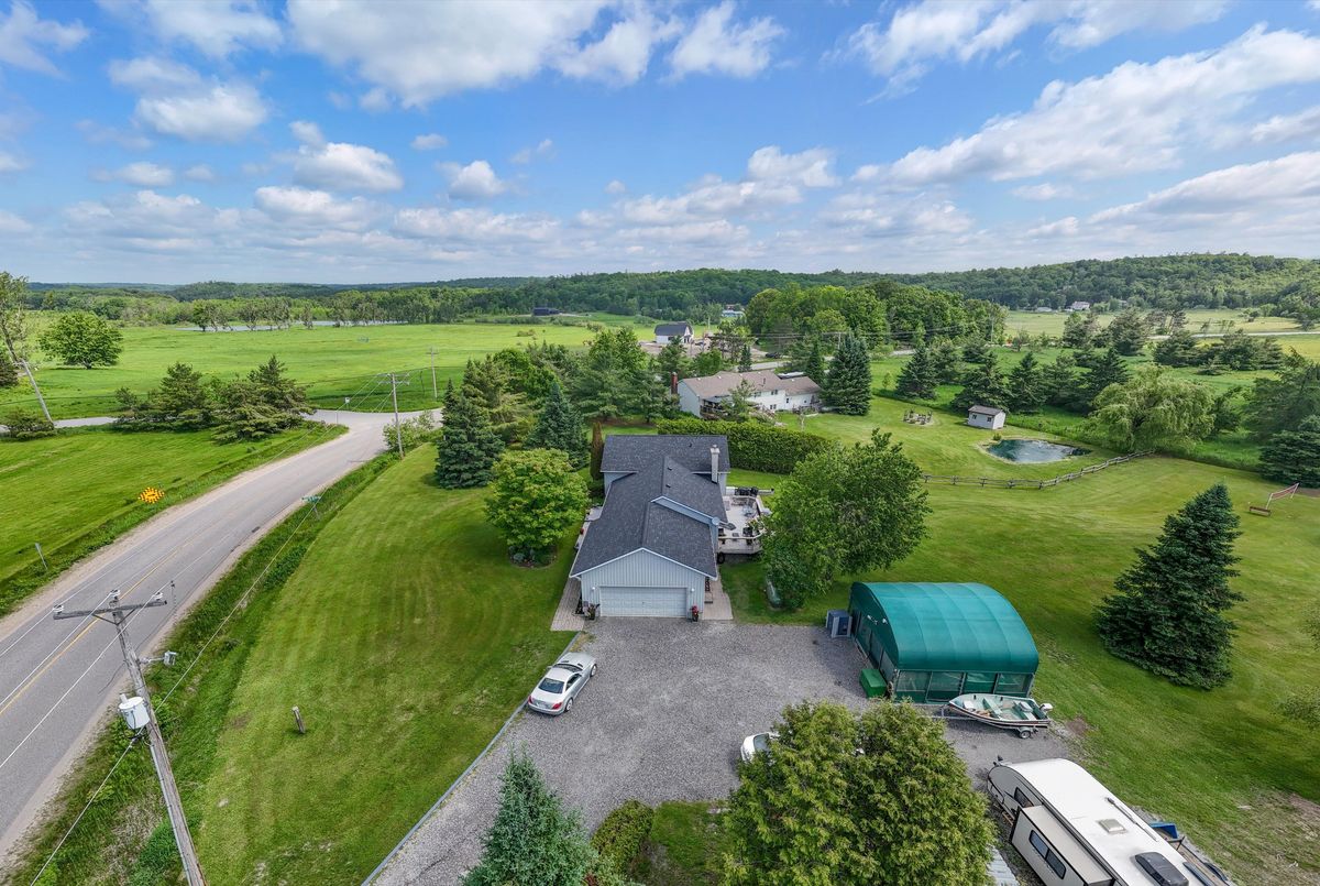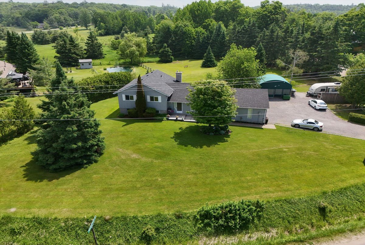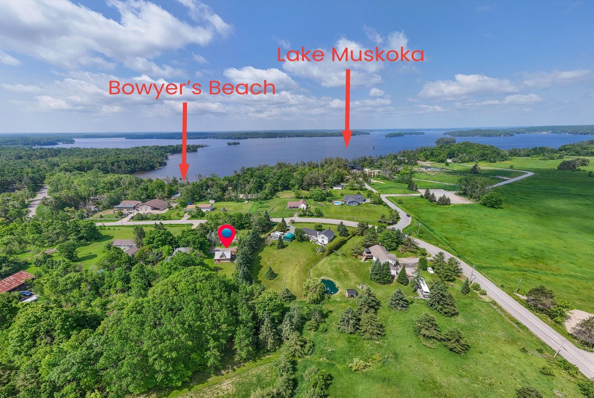 PUBLIC OPEN HOUSE SAY NOV 8-10AM-NOON. Great Opportunity to own this property ideally and conveniently located in Premier rural area of Bracebridge just steps to Bowyer's Beach and Patterson-Kaye Resort/Seasons Restaurant on Lake Muskoka, 2 min to George Road Public Boat Launch, 3 min to Highlands Golf Club and 5 minute drive to Town and to South Muskoka Golf and Country Club. This very well maintained 3 bedroom/2 bathroom home offers a unique country oasis to behold with almost 2500 sq ft of finished living area (2800 sq ft total). Gentle and beautifully landscaped yard is a show piece and is approximately 1 acre in size and features generous parking and outside storage areas, and plenty of play areas for kids and summer get togethers. Enjoy the long open and forested views to the east, westerly year round sunsets and the abundant wildlife that visit the property. Relax and on your choice of either front or rear (12'X26') cedar decks or the ground level 12'x22' private rear patio, or unwind in the evenings around the cozy wood fire pit. Well maintained and upgraded home features open concept main level kitchen/dining/living room area with walkout to both decks. Lower area features spacious and bright family room with gas fireplace with walk out to rear patio and fire pit area; rec room/office/hobby room and storage rooms. Upper level features Primary Suite with 3 piece ensuite overlooking the rear yard, 2 additional bedrooms and 4 piece bathroom. Upgrades include Roof Shingles (2024), both bathrooms, High Efficiency Furnace and A/C, Scraped Walnut Floors, GenerLink for Power Backup and 6 stainless steel appliances. Other features include 280' drilled well (great water!) attached 22'X23' garage, 20'X20' outbuilding, central vac and recently inspected septic system. Home Inspection report available upon request.