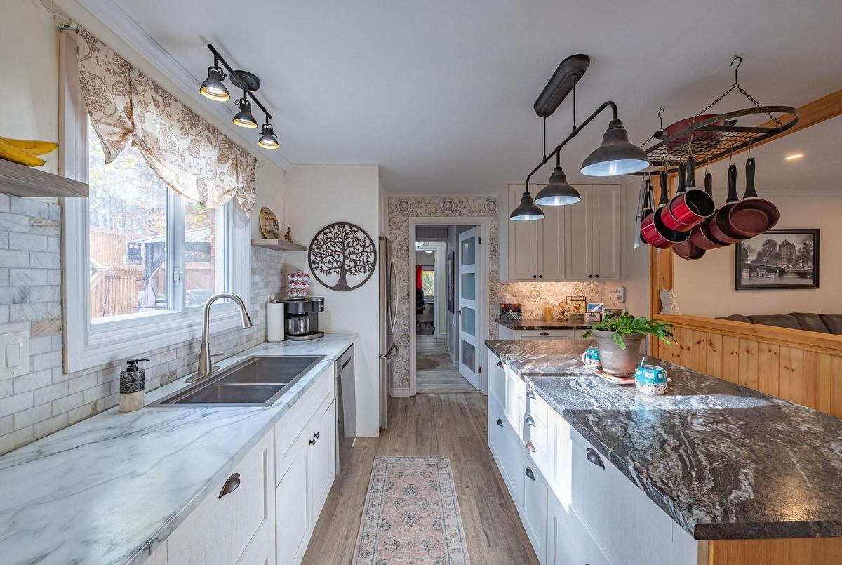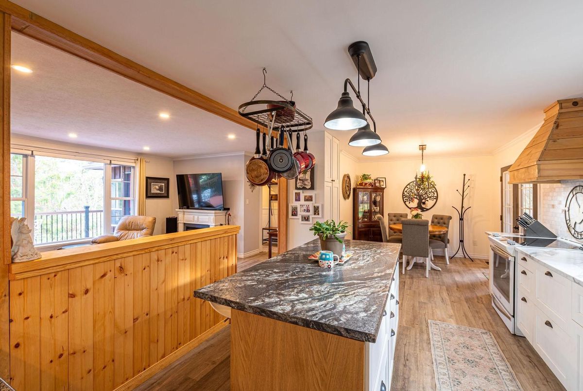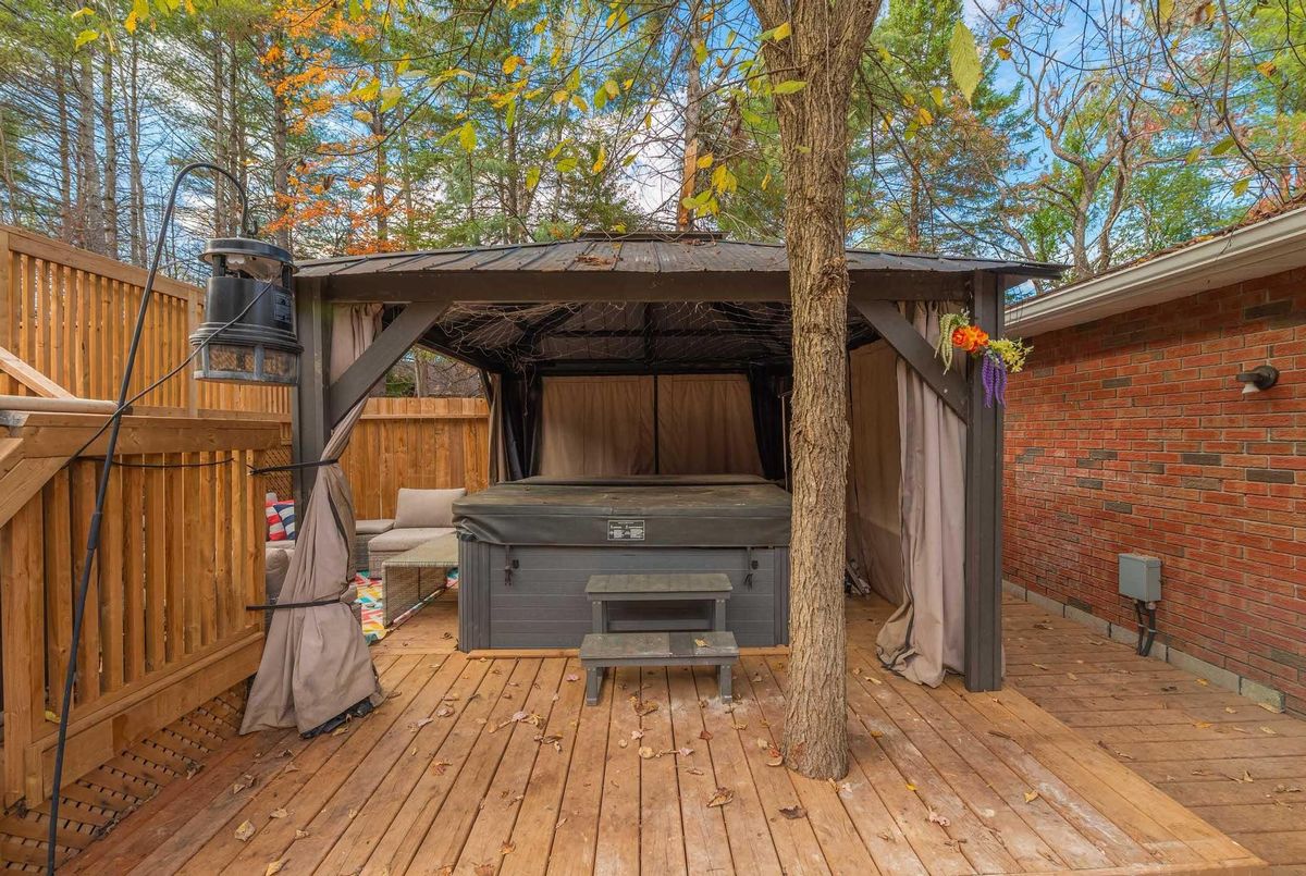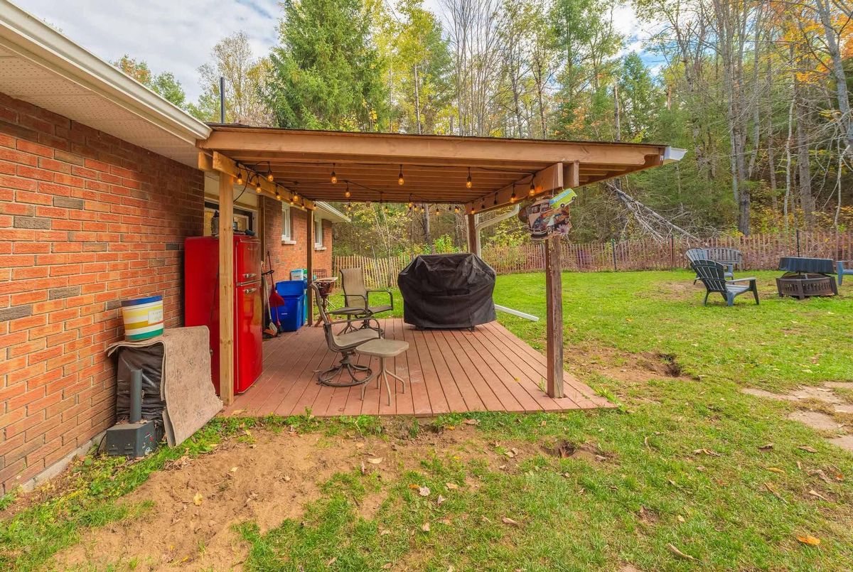Welcome to your VERY PRIVATE piece of paradise in Kawartha's historical town of Kinmount. This beautifully renovated bungalow offers MAIN FLOOR LIVING with the perfect blend of comfort, style, and natural beauty-backing onto 30 acres of privately owned forest, yet still within walking distance to downtown and the scenic Burnt River. Step inside to discover an inviting OPEN-CONCEPT LAYOUT featuring a modern, updated kitchen with stainless steel appliances, ample cabinetry, generous counter space, and breakfast bar. The adjacent dining area leads to the private back deck-ideal for entertaining or enjoying peaceful mornings outdoors.The open concept living room welcomes you with warmth, while a family room, or 4th bedroom, bathed in natural light through patio doors, offers additional space and direct access to the front deck, where you can take in views of the beautiful Kinmount Fairgrounds, adding year-round tranquillity with one-weekend filled with the renowned heartwarming Kinmount Fair . This home boasts THREE BEDROOMS, including a spacious primary suite complete with walk-in closet, fireplace, and a 4-piece ensuite. An additional 3-piece bathroom ensures comfort and convenience for family and guests.Outside, your private oasis continues with a NEW ABOVE GROUND POOL, expansive surrounding deck, and a NEW HOT TUB-perfect for relaxing in your own spa-like setting. The fenced backyard is level and pet-friendly, complete with invisible dog fencing and framed by the tranquil sights and sounds of nature. Just a wonderful home,whether you're looking for a peaceful year-round residence, a weekend getaway, or a turnkey retirement home with modern updates and timeless charm. ****School bus route, local library,parks, post office, dining, banking, groceries, pharmacy, LCBO, the infamous Highlands Cinema, Snowmobile & ATV Trails, water access Burnt River****
