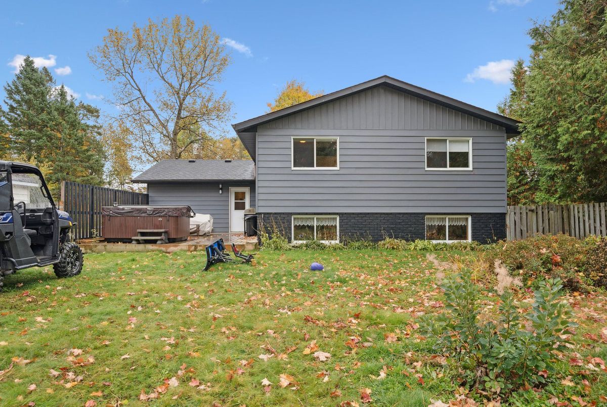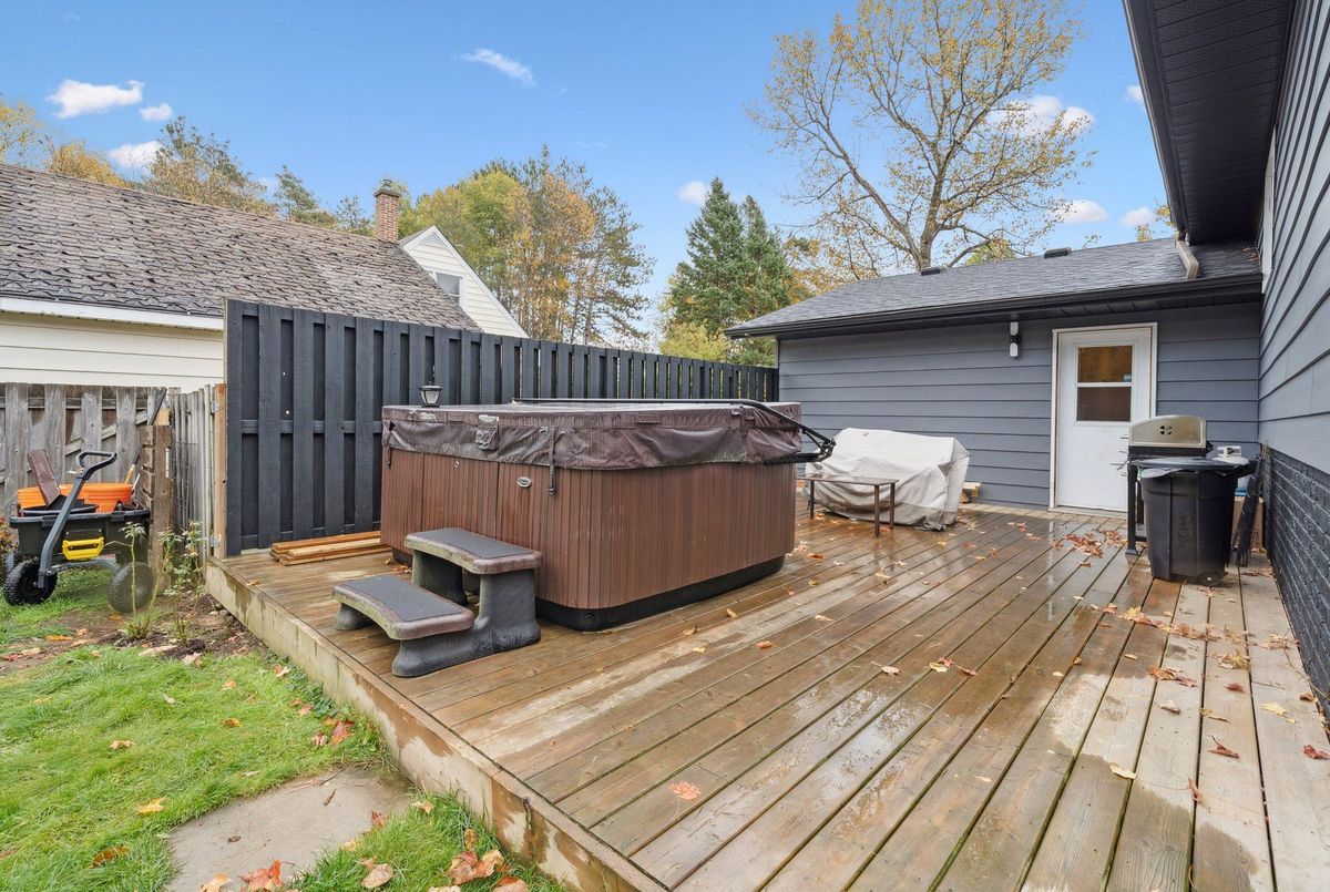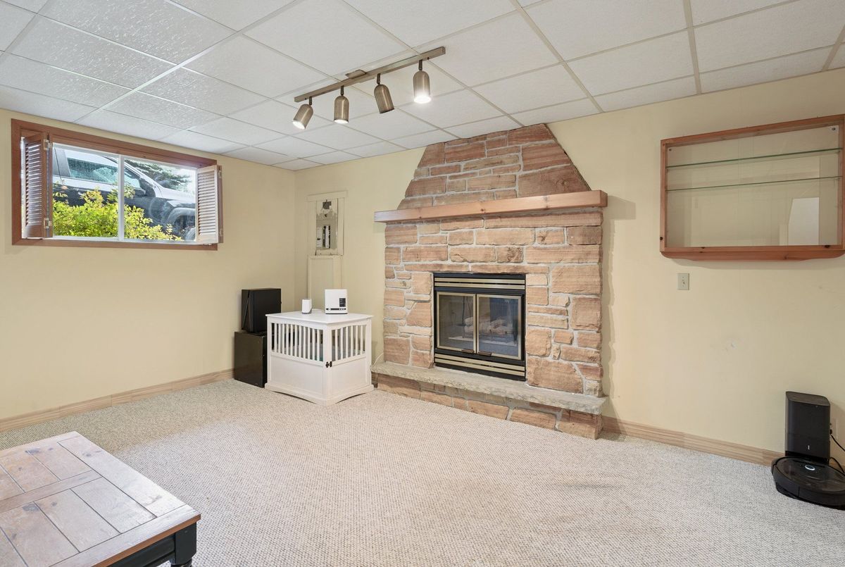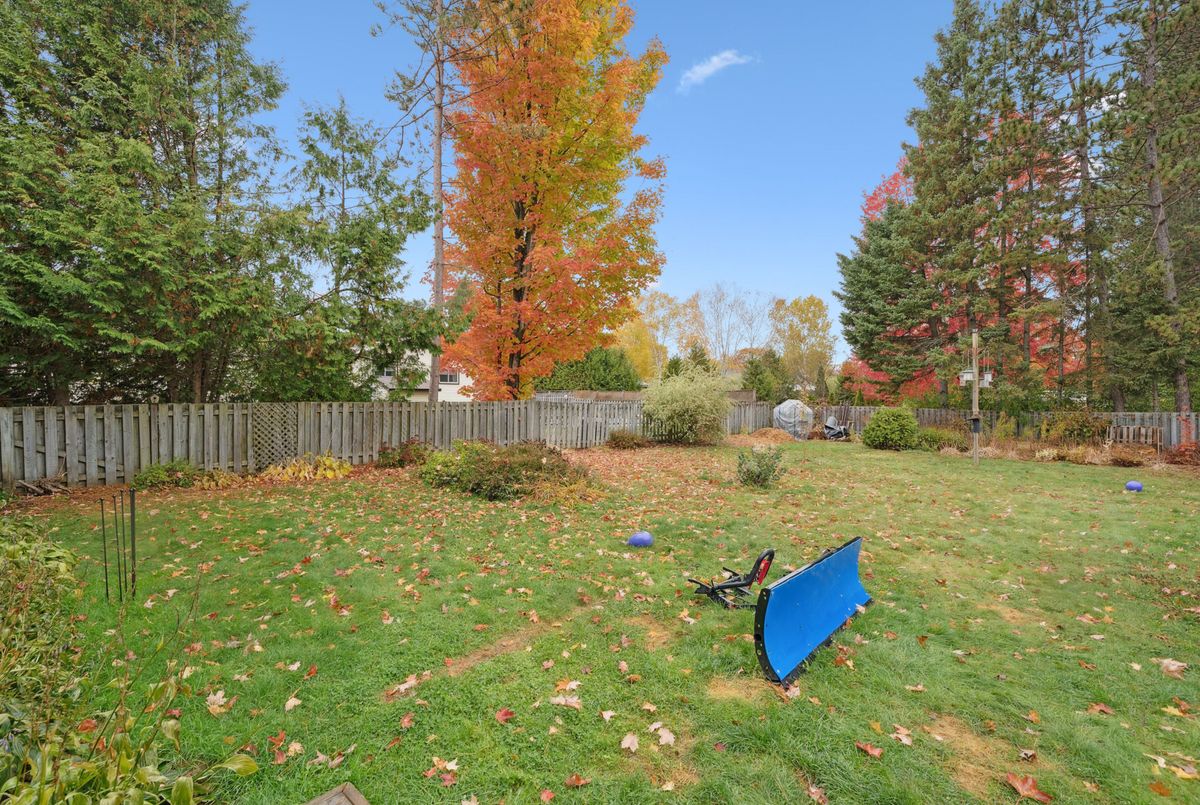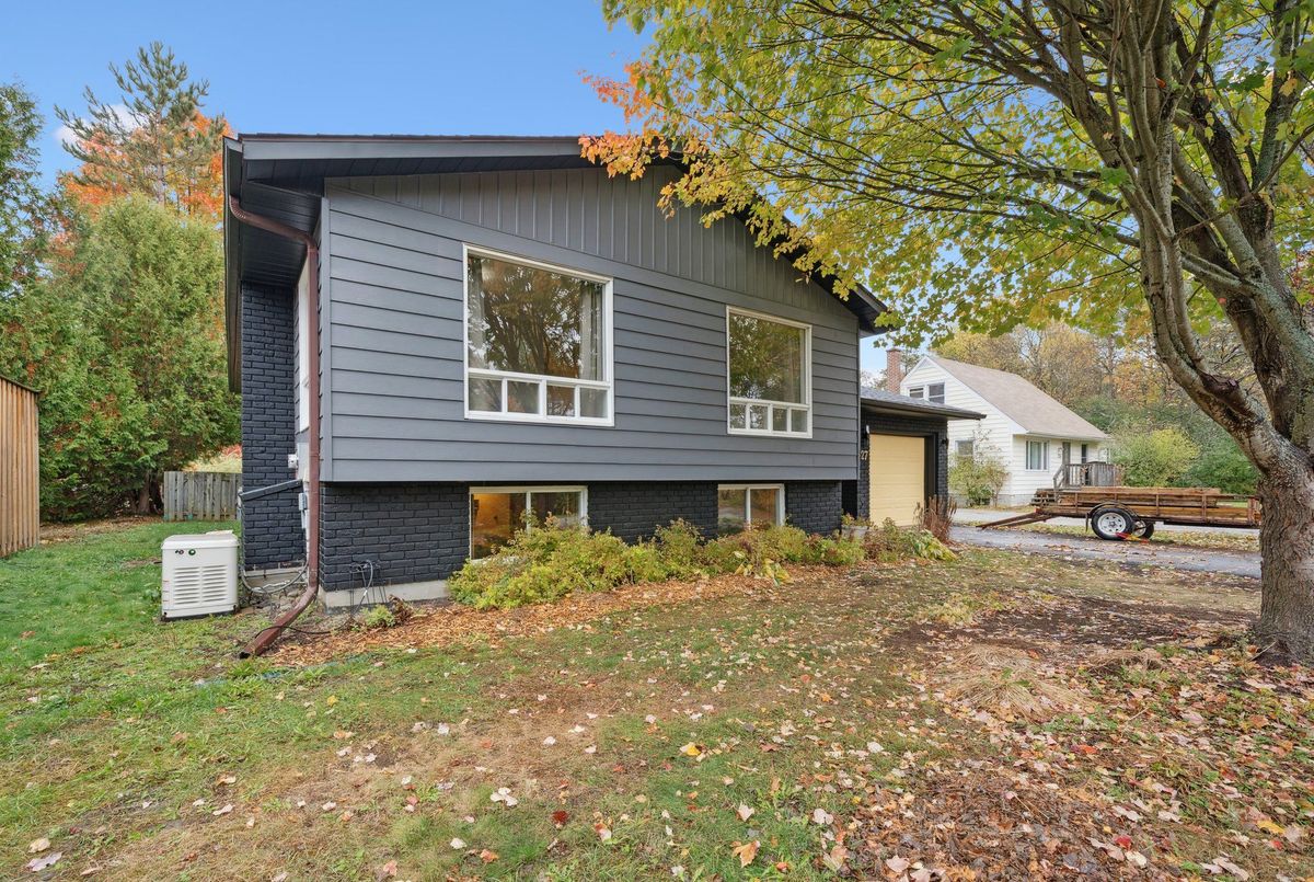A Welcoming Bungalow Surrounded by Nature and Comfort: welcome to this charming 3 bedroom, 3 bathroom bungalow which blends warmth, practicality, and timeless appeal. From the moment you step into the spacious front entry, you'll feel at home. This inviting space offers direct access to the garage, plenty of room for coats and seasonal gear, and a convenient walkout to the rear deck - the perfect spot to relax and take in views of the lush, private backyard. The main floor was designed for easy living and entertaining, featuring wide plank light wood flooring and large windows that fill the home with natural light. The bright eat-in kitchen is the heart of the home, ideal for casual meals and everyday connection, while a formal dining area stands ready for special gatherings with family and friends. The kitchen cabinets have been painted, as has the whole main floor. Also new Decora switches, new carpets with upgraded underpad in the two bedrooms, new light fixtures, electronic door lock and integrated exterior lanterns with cameras. Down the hall, you'll find three generous bedrooms, including a peaceful primary suite with its own ensuite bath and AC / heat pump - your personal haven for rest and relaxation. The finished lower level offers even more space to unwind, complete with a comfortable rec room anchored by a natural gas fireplace - perfect for movie nights or game days. There's also a versatile flex area that includes laundry, utilities, and a handy dog wash station for your four-legged family member. Set on an extra-deep, beautifully landscaped in-town lot, this home is surrounded by mature trees and perennial gardens that create a serene, park-like atmosphere. And with a back-up Generac on standby, you can enjoy peace of mind year-round. The exterior has been painted and roof shingles / roof vents have been replaced. Lovingly maintained and full of charm, this bungalow offers the perfect blend of comfort, convenience, and natural beauty.