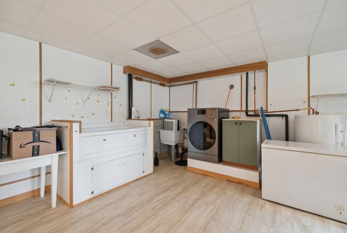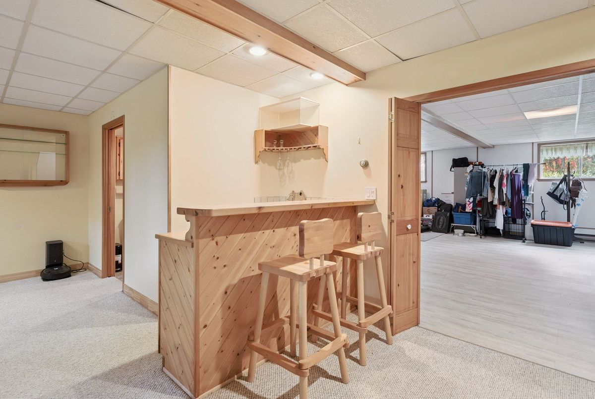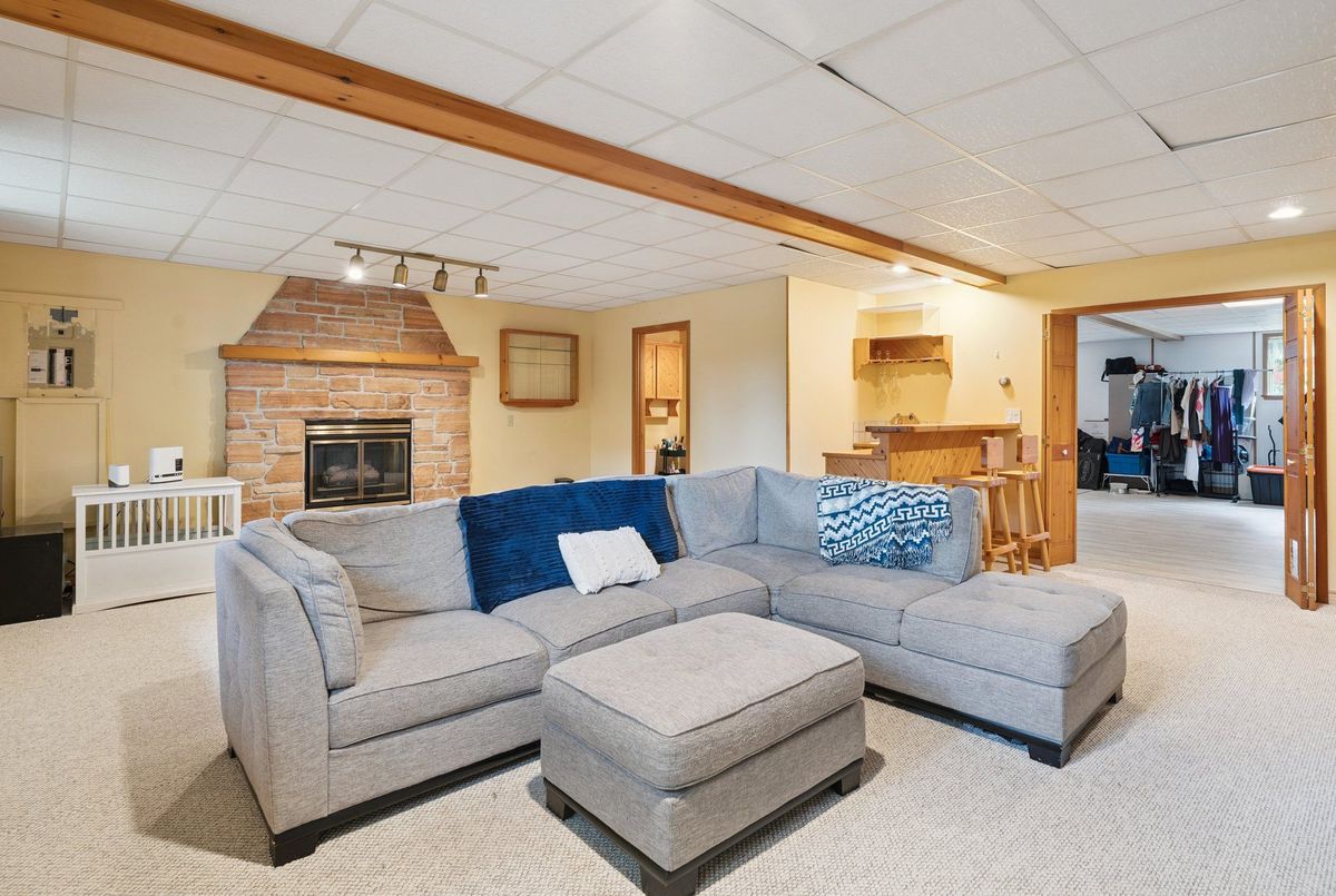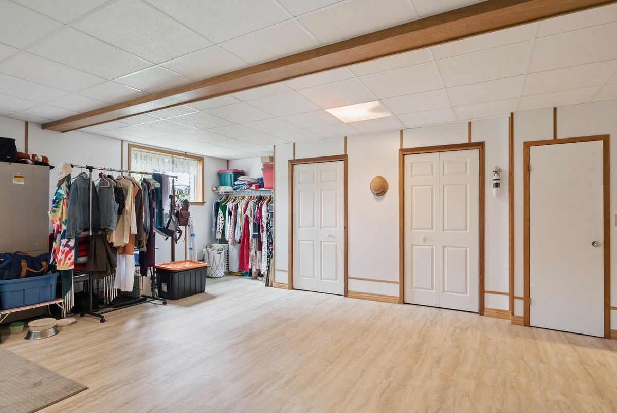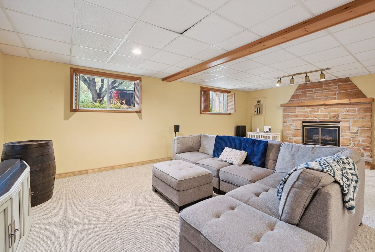 A Welcoming Bungalow Surrounded by Nature and Comfort: welcome to this charming 3 bedroom, 3 bathroom bungalow which blends warmth, practicality, and timeless appeal. From the moment you step into the spacious front entry, you'll feel at home. This inviting space offers direct access to the garage, plenty of room for coats and seasonal gear, and a convenient walkout to the rear deck - the perfect spot to relax and take in views of the lush, private backyard. The main floor was designed for easy living and entertaining, featuring wide plank light wood flooring and large windows that fill the home with natural light. The bright eat-in kitchen is the heart of the home, ideal for casual meals and everyday connection, while a formal dining area stands ready for special gatherings with family and friends. The kitchen cabinets have been painted, as has the whole main floor. Also new Decora switches, new carpets with upgraded underpad in the two bedrooms, new light fixtures, electronic door lock and integrated exterior lanterns with cameras. Down the hall, you'll find three generous bedrooms, including a peaceful primary suite with its own ensuite bath and AC / heat pump - your personal haven for rest and relaxation. The finished lower level offers even more space to unwind, complete with a comfortable rec room anchored by a natural gas fireplace - perfect for movie nights or game days. There's also a versatile flex area that includes laundry, utilities, and a handy dog wash station for your four-legged family member. Set on an extra-deep, beautifully landscaped in-town lot, this home is surrounded by mature trees and perennial gardens that create a serene, park-like atmosphere. And with a back-up Generac on standby, you can enjoy peace of mind year-round. The exterior has been painted and roof shingles / roof vents have been replaced. Lovingly maintained and full of charm, this bungalow offers the perfect blend of comfort, convenience, and natural beauty.