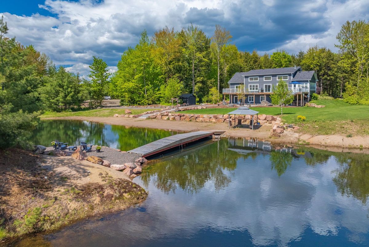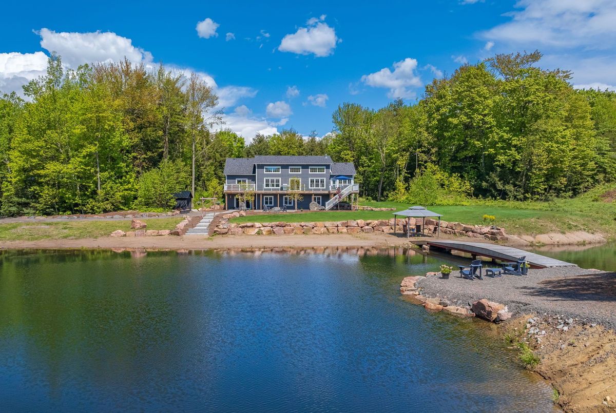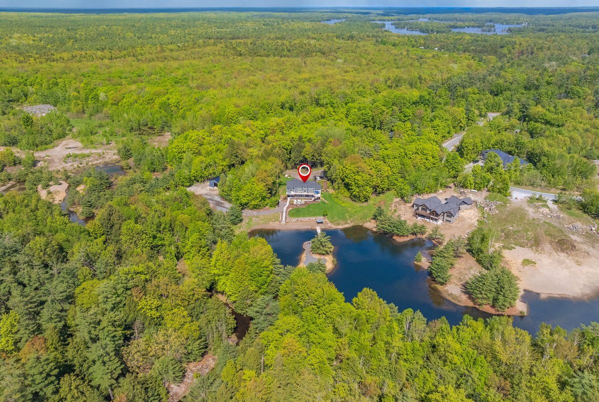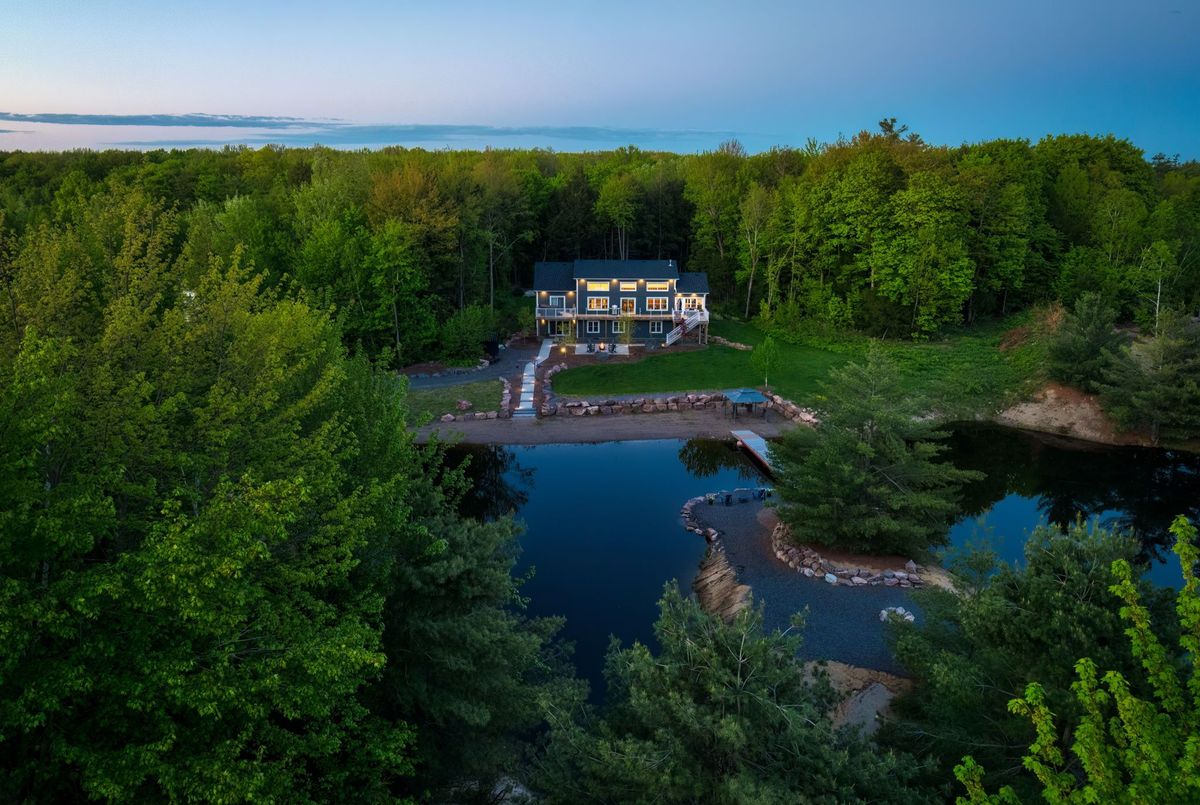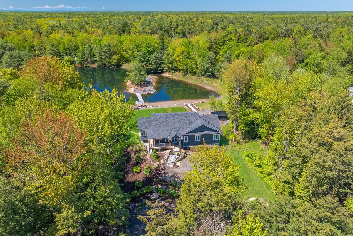 Welcome to 1076 Xavier Street situated in one of Muskoka's most desirable executive enclaves, an exceptional custom-built estate set on 7.17 acres just south of Gravenhurst's downtown. Set back from the road and hidden from view, this 2022-built home offers rare seclusion with a long granite-lined driveway, scenic pond with sandy beach and island, stunning outdoor living, and a 40' x 60' heated shop creating a Muskoka retreat that feels like your own private resort. A dramatic granite staircase leads to a covered front porch and into 3,602 square feet of beautifully finished space across two levels. Vaulted shiplap ceilings, expansive windows, and a striking black propane fireplace framed by floor-to-ceiling white shiplap define the great room. The entertainers kitchen features chiseled-edge granite throughout, including a statement island ideal for hosting. From the dining area, step out to a rear deck that spans the entire back of the home and overlooks your firepit sitting area, a tranquil pond, beach, and landscaped island framed by mature forest. A footbridge invites exploration, where the second firepit and Muskoka chairs offer the perfect vantage point for morning coffees or evening stargazing. The insulated Muskoka room offers passive climate flow from the home, a supplemental electric fireplace, and access to both decks. The private primary suite features direct access to the deck and hot tub, a walk-in closet, and a spa-inspired 5-piece ensuite. The fully finished walkout lower level offers a large rec room, two additional bedrooms, a full bath, and direct access to the backyard. At the rear of the property, a 40' x 60' heated shop includes 12' doors, hydro, and 3 piece bath ideal for the hobbyist, recreational gear, or as a private workspace and storage haven. A Generac backup generator provides year-round peace of mind. This is more than a home; it's an experience offering refined living, captivating scenery, and complete privacy in an exclusive setting.