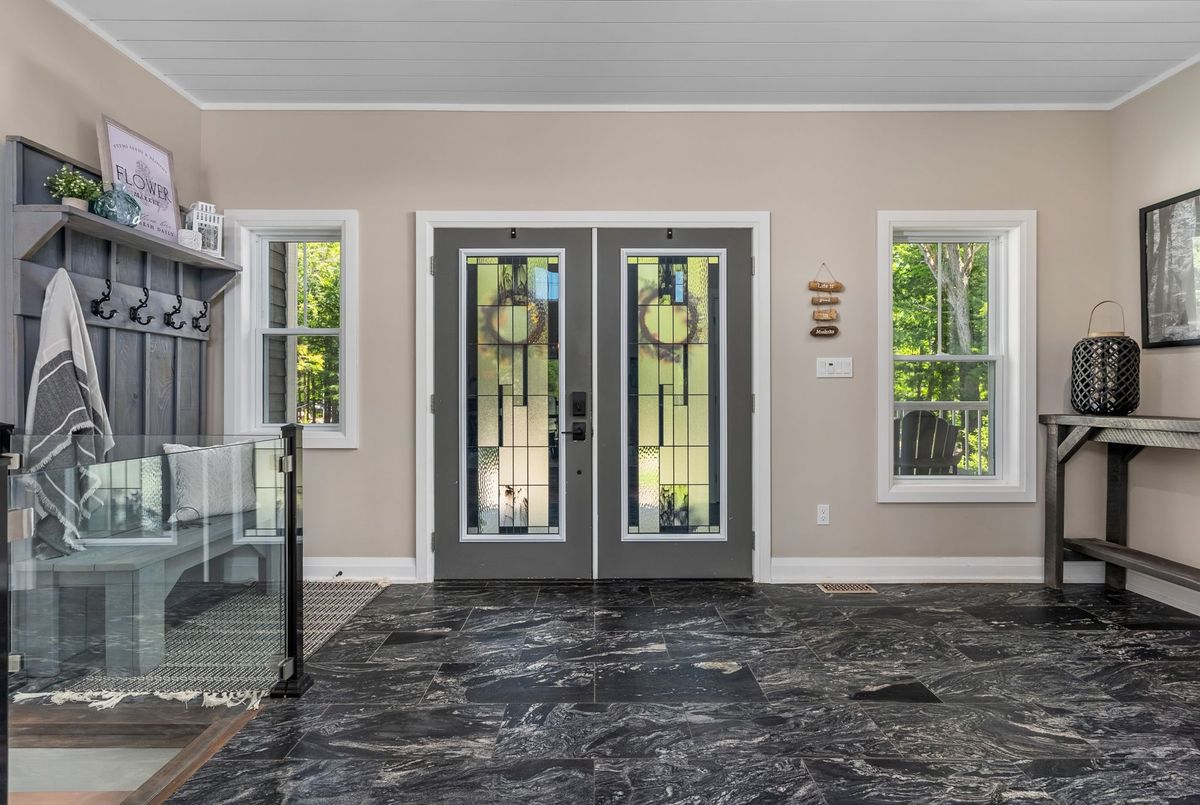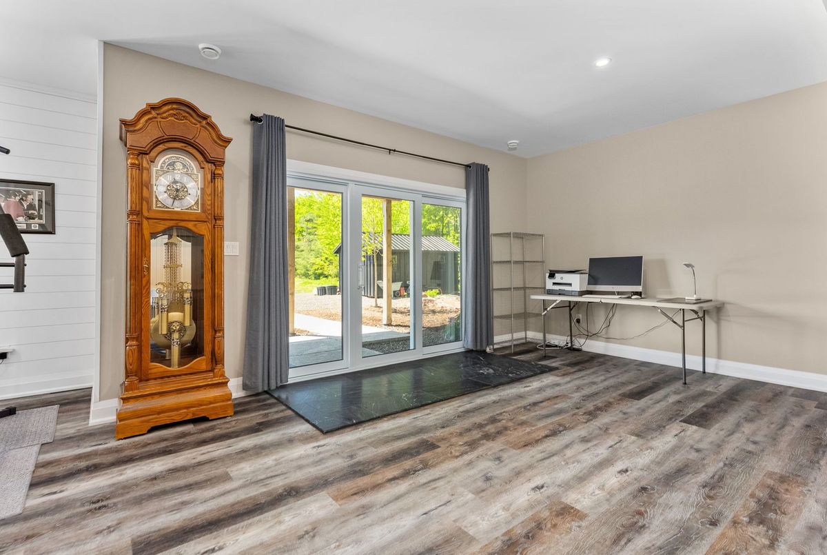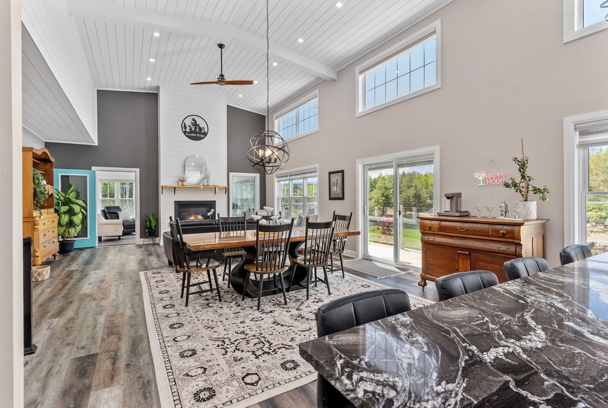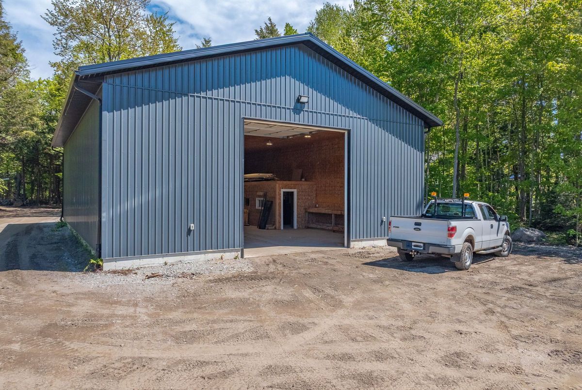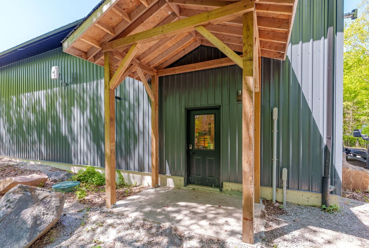 Welcome to 1076 Xavier Street situated in one of Muskoka's most desirable executive enclaves, an exceptional custom-built estate set on 7.17 acres just south of Gravenhurst's downtown. Set back from the road and hidden from view, this 2022-built home offers rare seclusion with a long granite-lined driveway, scenic pond with sandy beach and island, stunning outdoor living, and a 40' x 60' heated shop creating a Muskoka retreat that feels like your own private resort. A dramatic granite staircase leads to a covered front porch and into 3,602 square feet of beautifully finished space across two levels. Vaulted shiplap ceilings, expansive windows, and a striking black propane fireplace framed by floor-to-ceiling white shiplap define the great room. The entertainers kitchen features chiseled-edge granite throughout, including a statement island ideal for hosting. From the dining area, step out to a rear deck that spans the entire back of the home and overlooks your firepit sitting area, a tranquil pond, beach, and landscaped island framed by mature forest. A footbridge invites exploration, where the second firepit and Muskoka chairs offer the perfect vantage point for morning coffees or evening stargazing. The insulated Muskoka room offers passive climate flow from the home, a supplemental electric fireplace, and access to both decks. The private primary suite features direct access to the deck and hot tub, a walk-in closet, and a spa-inspired 5-piece ensuite. The fully finished walkout lower level offers a large rec room, two additional bedrooms, a full bath, and direct access to the backyard. At the rear of the property, a 40' x 60' heated shop includes 12' doors, hydro, and 3 piece bath ideal for the hobbyist, recreational gear, or as a private workspace and storage haven. A Generac backup generator provides year-round peace of mind. This is more than a home; it's an experience offering refined living, captivating scenery, and complete privacy in an exclusive setting.