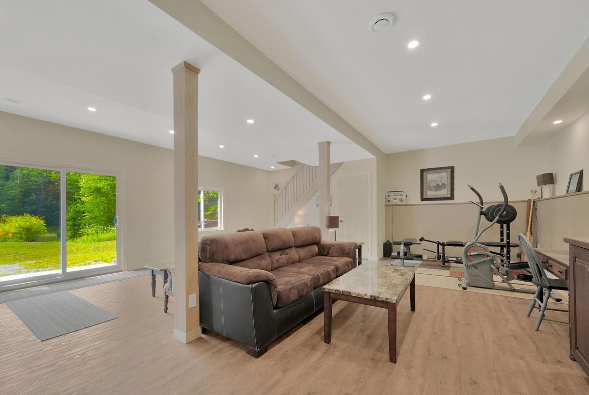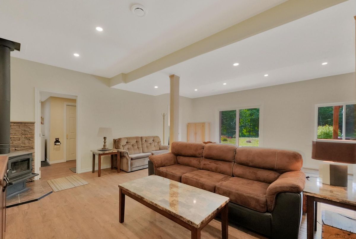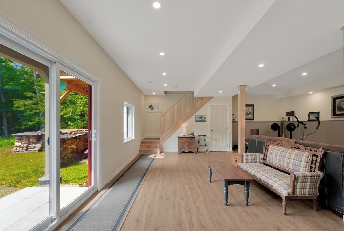 A private getaway - the perfect home or cottage. Imagine your own acreage with trails for skiing, snowshoeing and hiking, all out your back door. This 3 bedroom, 2 bath home has everything you are looking for. Thirty acres of pristine forest with a scenic marsh, lovingly called "The Meadow". The forest is part of a forest management plan to reduce property taxes. The home is immaculate and extremely well maintained with several upgrades over the past six years. You will love the ground level walk-in to the rec room with high ceilings, a cozy WETT certified woodstove, and combined washroom/laundry. The upper level has two decks for entry and for barbecuing or just relaxing with your morning coffee. Check out the kitchen with updated appliances and an island with pot drawers for extra storage. The driveway has room for all your company, and a fabulous oversized 12'x16' shed is great for toys, storage or a workshop. Come walk the trails, breathe, and reconnect with the outdoors. Discover the adorable campsite/bonfire pit at the marsh - a great place to relax, and in the Winter months you can ski or snowshoe across the meadow to a beautiful forest on the other side. You are 15 minutes from Haliburton Village and all that The Highlands has to offer. Great restaurants, shopping and festivities year-round.