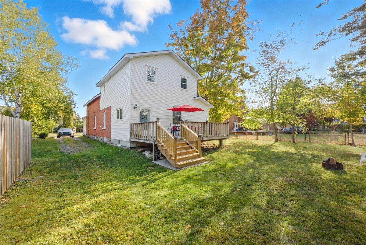 Welcome to 197 Dill Street! This charming 5-bed 2-bath brick home welcomes you with timeless warmth and character. Set on a rare oversized town lot, it blends historic design with modern comforts in a spacious layout ideal for families or young professionals alike. The main floor features a bright sun-filled living room, formal dining area, and large kitchen with space for a cozy breakfast nook. Kitchen has been updated with new dishwasher, backsplash, countertops, and refreshed cabinetry. Main Floor also includes laundry, a mud room and a large backroom with 3P ensuite and a walk-in closet ideal for a comfortable family room or primary main floor bedroom. Second Story offers 4 additional bedrooms + a spacious 4P bathroom with updated flooring, vanity, and mirror providing a clean, contemporary style. 2 additional sitting areas offer endless possibilities: home office, study area, reading nook, or playroom. Recent upgrades ensure lasting peace of mind, including all new: high-efficiency furnace, roof on addition, chimney flashing, smoke/co detectors, rebuilt front & back stairs, supports under the front porch, and fresh wood siding to complete the look. The south facing front porch provides a relaxing area to enjoy the sunshine. The home has been freshly painted and complemented with new light fixtures that make every corner feel bright and inviting.The refinished large garage enhances the property's curb appeal and provides space for 1 car or a workshop/additional storage. The back deck and spacious yard invites BBQs, campfires, and room for the kids to play. The extended private driveway boasts space for up to 5-cars. This well-loved home offers a perfect blend of comfort and practicality, nestled in the heart of town. Steps away from schools, parks, fitness studios, Muskoka Lumber arena, library, coffee shops, Giaschi Public Beach, and the Bracebridge Falls down the road. At 197 Dill Street, you'll find a move-in-ready home where character meets comfort!
