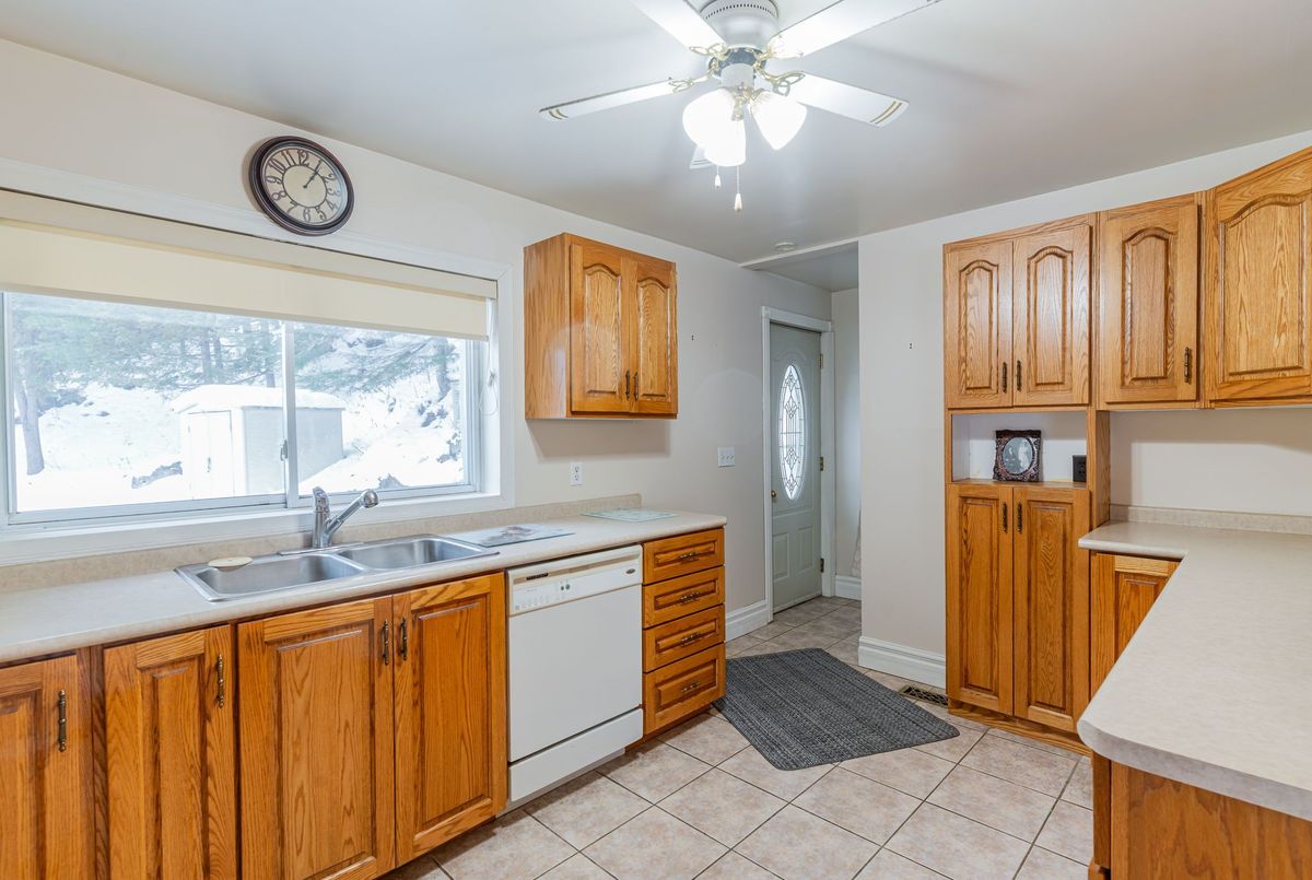 Spacious and well laid out, 2 BR bungalow with great in-town location. With approx. 1100 sq ft., this is a perfect home for empty nesters, snow birds or first time buyers. Its low maintenance exterior & lot makes this home a perfect fit for seniors who want minimal outside &yard work. The living/dining room features laminate floors & opens up to an efficient kitchen with oak kitchen cabinets with pot drawers, lazy Susan, pantry, breakfast bar that overlooks the dining room. Large mud/laundry room with laundry tub & built in cabinets. 4 pee .bath. Spacious master bedroom with his & hers closets with organizers, plus walkout to patio. Generous 2nd. bedroom. Paved driveway. Walk to amenities in the Village of Haliburton. Town sewers .