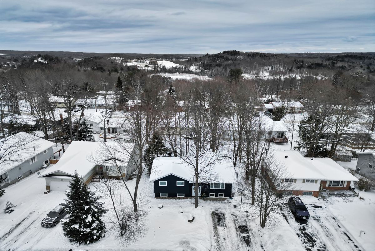 Welcome to this beautifully updated 4-bedroom, 2-bath raised bungalow nestled in one of Huntsville's most sought-after, family-friendly neighbourhoods. Set on municipal services and framed by mature trees, this home blends modern upgrades with everyday comfort and convenience.The bright and inviting main level features newer flooring and a tastefully renovated kitchen offering ample cabinetry and generous prep space-perfect for cooking, hosting, and gathering. The cozy living room provides a welcoming place to unwind, complete with a charming fireplace and custom built-in shelving for added storage and style. Three comfortable bedrooms and a full 4-piece bath complete the main floor. The fully finished lower level extends your living space with an open-concept family room, a handy half bath, a spacious 4th bedroom, and a dedicated laundry/storage room - an ideal setup for guests, teens, or a home office.Step outside to a private, fully fenced backyard featuring a deck and a durable metal gazebo, creating an inviting outdoor retreat for dining, entertaining, or simply relaxing in the fresh Muskoka air. Conveniently located near downtown Huntsville, local parks, and schools, this home offers the perfect blend of tranquility and accessibility. A wonderful opportunity to settle into a desirable neighbourhood-just move in and enjoy!