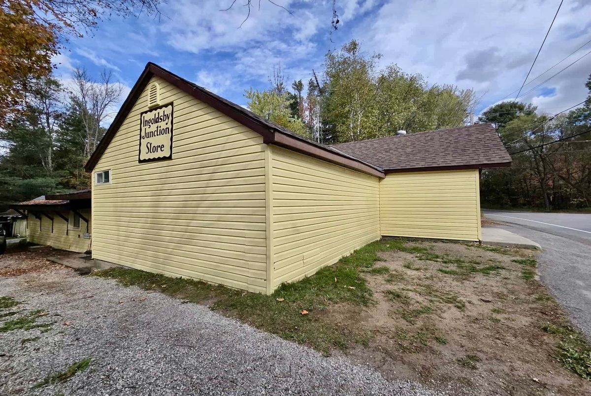 Endless possibilities await with this unique live/work property in the heart of cottage country. Offering an ideal opportunity for self-employment, this versatile building features approximately 800 sq ft of commercial space at the front, perfectly suited for a retail shop, studio, office, or service-based business. The rear living quarters span approximately 1,100 sq ft and include two bedrooms and a 4-piece bathroom, providing comfortable on-site living or potential rental accommodation. A central middle area offers additional flexibility, ideal for storage, workspace, or conversion, and includes a powder room, allowing for easy separation of spaces if desired for income-generating purposes. Formerly home to the well-known Ingoldsby Junction convenience store and a successful bakery, this property carries a long history of community presence and entrepreneurial use. C2 Commercial and Residential zoning allows for a wide range of permitted uses, making this an excellent opportunity for business owners, investors, or those seeking a true work-from-home lifestyle. Ideally located in the active and welcoming community of Ingoldsby, positioned directly between Haliburton and Minden, and just steps from Kashagawigamog Lake, part of Haliburton County's sought-after Five Lake Chain. Enjoy the charm of cottage country while owning and operating your business in a high-visibility, well-travelled area. Whether you're dreaming of running your own business, generating rental income, or embracing a flexible lifestyle in cottage country, the possibilities here are truly endless.