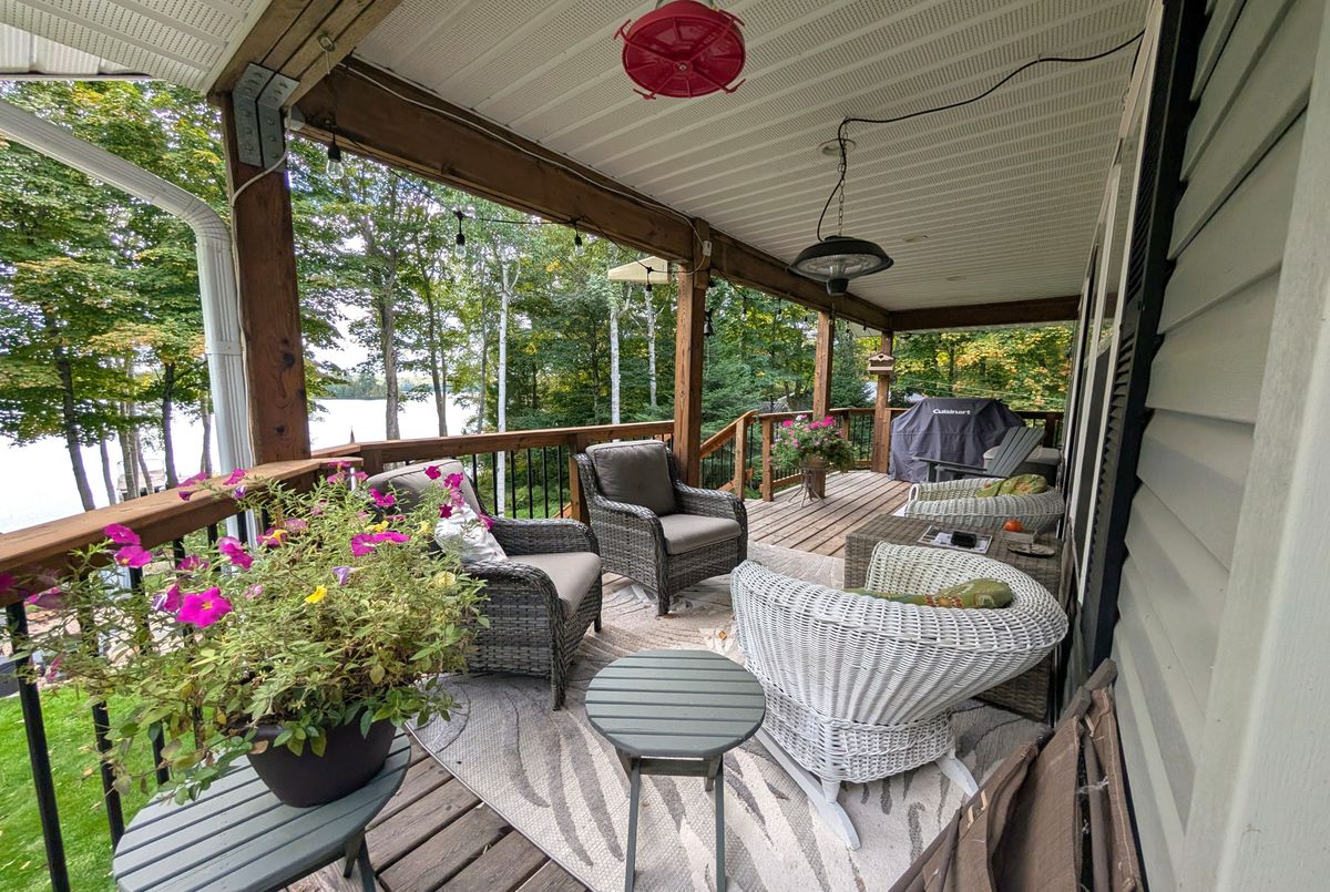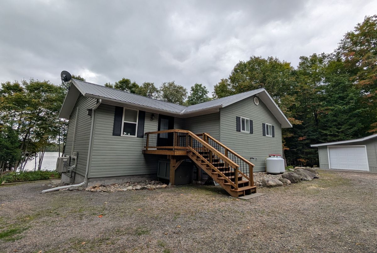 Welcome to 1173 Spring Lake Rd, located in the unorganized Township of Lount, on sought after Spring Lake in the beautiful Almaguin Highlands. The Lake is spring feed, very clean, approximately 70% crown land, and has a public access just minutes away. The property is amazing as it draws you in right from the private entrance, the beautiful landscaping and gardens, child friendly sandy shoreline, the many magnificent views of the lake from the deck, the fire pit, relaxing at the Saw Mill Structure Bunkie, taking in the calm of the lake from the waters edge or sitting out on the dock. The 2 bedroom, 2 bath home is well maintained and has the comfort and charm of living on the water. The main floor features a spacious living room with British Fires electric heater, open concept kitchen & dining area with walkout to deck, 2 bedrooms, and 4 pc bath. Heading to the lower level via the black accented spiral staircase; it offers a large rec room with walkout and certified Pacific Energy woodstove for those cooler nights, a 3 pc bathroom, workshop with walkout, laundry/storage room, and potential for a 3rd bedroom. The home is heated by a F/A propane furnace, and a ductless heat pump on both levels for year round comfort. Home was built in 2008, addition in 2011, many upgrades include: brand new custom kitchen with granite counter tops 2025. main floor bathroom 2024, upgraded insulation to R60 in ceiling & R28 in walls, and new exterior doors in 2024. Large detached 2 car garage for your vehicle and your toys. Dug well with filter and U.V. system services the home, and a lake water pump for watering the gardens. Great area for the outdoor enthusiasts including boating, hiking, swimming, 4 wheeling, and you're right next to the snowmobile trails. There is so much to appreciate here... it's well worth the look!!