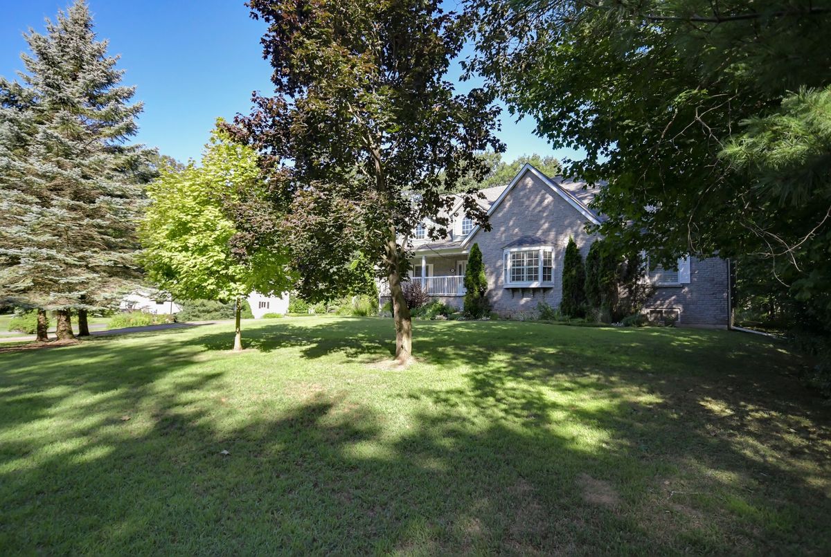 Welcome to prestigious Tiffany Trail where oversized lots and homes are all around! Lovingly maintained by the original owners since built in 2000, pride of ownership is evident throughout. This home showcases timeless craftsmanship while offering about 5000 sq. ft. of finished living space on an oversized 0.45-acre meticulously landscaped lot. Step inside this exquisite custom built bungalow to find a thoughtfully designed 2,790 sqft main floor with 3 spacious bedrooms, 2.5 bathrooms, 3 season Muskoka room, and elegant open concept vaulted living space. The fully finished 2202 sqft basement offers 9' ceilings, a den, 3rd full bathroom, a rough in bar/kitchenette area, with walk-up access through the garage offering exceptional versatility and in-law suite potential. Storage galore throughout the entire home. The exterior is equally impressive, featuring a stone façade, flagstone walkways, and impeccable gardens enhanced with an in-ground sprinkler system. Notable updates include: Roof with extended warranty (2021), Furnace (2022), Central Air Conditioning (2024), Eavestroughs (2025) , and Upgraded Alarm System (2025). Oversized (23.5' x 27.5') double attached garage, spacious driveway great for guests, RV's, Boats and access to the backyard. This home and property is a statement, a truly rare opportunity to own a remarkable home in a highly sought after safe neighborhood.