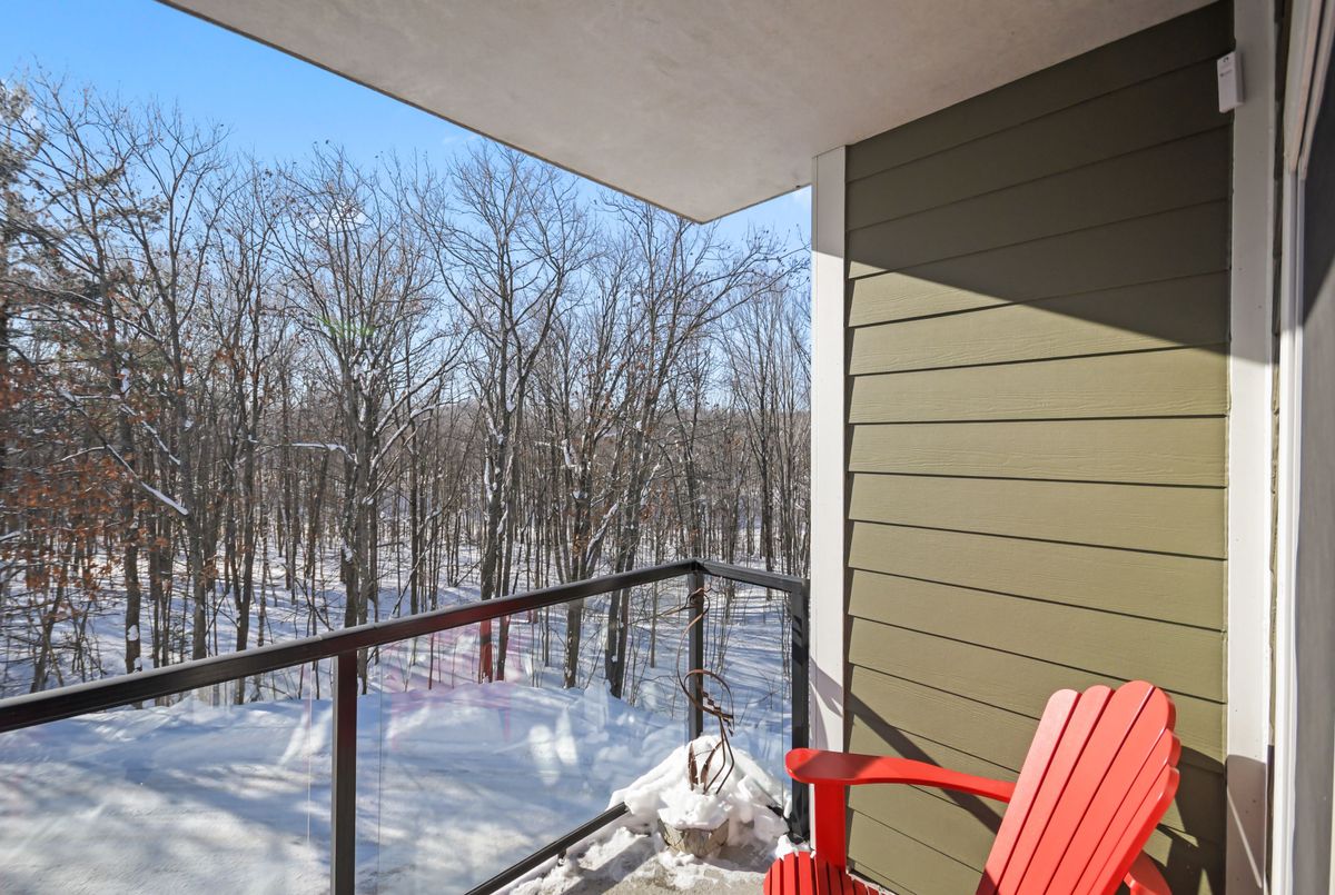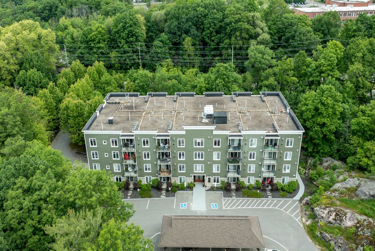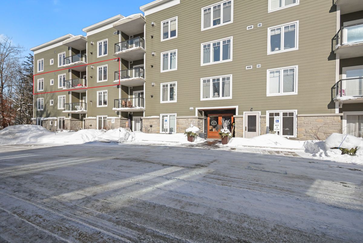 Welcome to this bright, immaculate 3 bedroom, 2 bathroom condo in Granite Trail, one of Gravenhurst's most desirable and well-constructed condo buildings. Built in 2008 with full ICF construction, this exceptionally quiet, well-managed building is the only condominium in Gravenhurst with underground parking and includes handicap accessible features throughout. The open-concept living, dining, and kitchen area is filled with natural light from large South facing windows and glass doors leading to a private, covered terrace, perfect for enjoying peaceful elevated forest views. The unit has been beautifully renovated, featuring new flooring, kitchen, bathroom vanities, fresh paint, modern light fixtures, electronic window coverings, and upgraded appliances, it is truly a move-in ready unit. The thoughtfully designed layout is separated into two private wings. The primary wing offers a spacious primary bedroom overlooking the forest, a 4-Pc primary bath with jet tub, a walk-in closet with pocket door, and an additional room ideal for a guest bedroom or private office. The second wing features a large guest bedroom with forest views and a close by updated 3-Pc bathroom, providing excellent privacy for visitors. Included are one exclusive underground parking space (#21), one exclusive same-floor storage locker (#2), and additional above grade public parking spaces. Residents enjoy manicured grounds and worry-free living with all exterior maintenance, groundskeeping, common elements, and water/sewer covered by the condo corporation. Condo fees are $730/month uniquely the same across all unit owners, no rentals, HWT on demand with a ventilator provides very low heating costs. An exceptional opportunity to own a bright, spotless, pride-of-ownership home offering comfort, privacy, and low-maintenance Muskoka living.