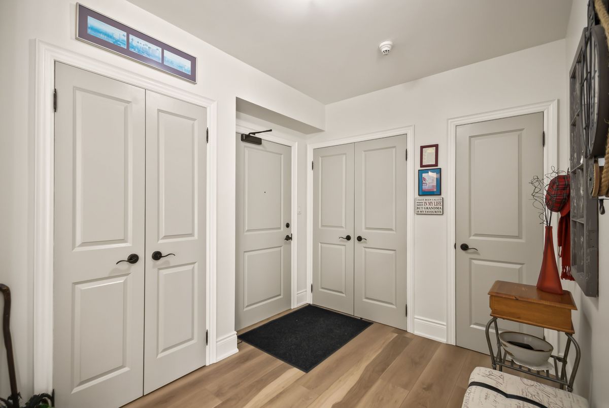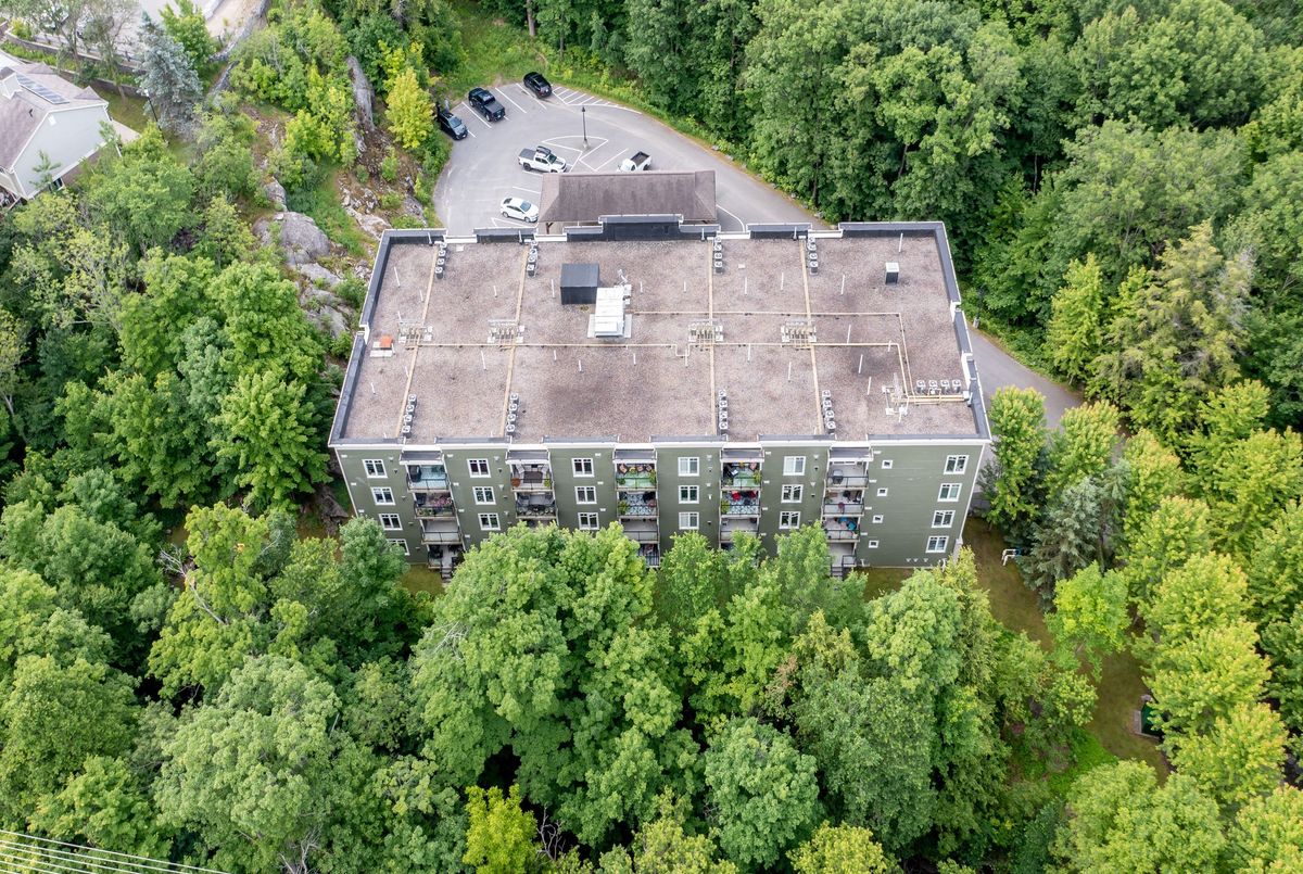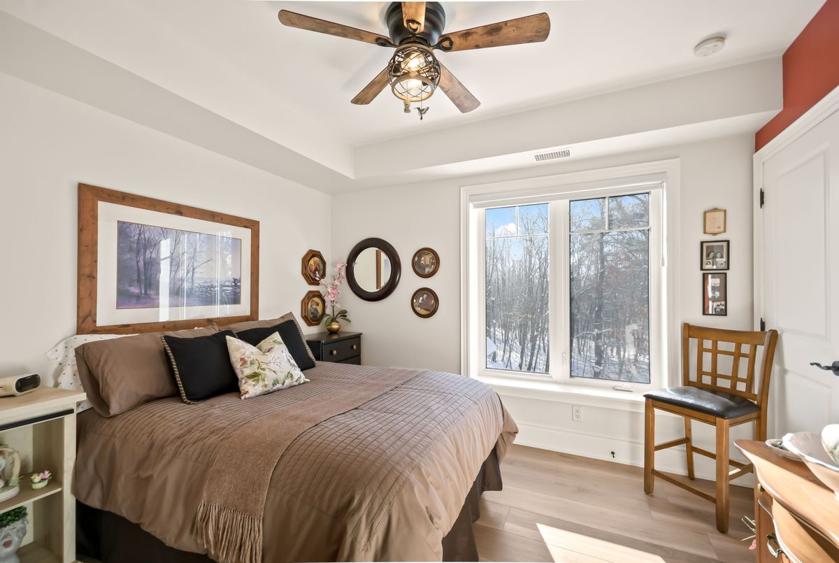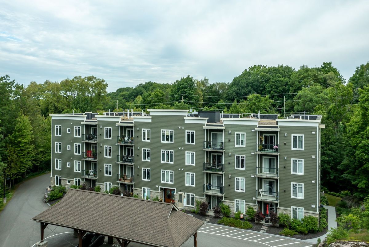 Welcome to this bright, immaculate 3 bedroom, 2 bathroom condo in Granite Trail, one of Gravenhurst's most desirable and well-constructed condo buildings. Built in 2008 with full ICF construction, this exceptionally quiet, well-managed building is the only condominium in Gravenhurst with underground parking and includes handicap accessible features throughout. The open-concept living, dining, and kitchen area is filled with natural light from large South facing windows and glass doors leading to a private, covered terrace, perfect for enjoying peaceful elevated forest views. The unit has been beautifully renovated, featuring new flooring, kitchen, bathroom vanities, fresh paint, modern light fixtures, electronic window coverings, and upgraded appliances, it is truly a move-in ready unit. The thoughtfully designed layout is separated into two private wings. The primary wing offers a spacious primary bedroom overlooking the forest, a 4-Pc primary bath with jet tub, a walk-in closet with pocket door, and an additional room ideal for a guest bedroom or private office. The second wing features a large guest bedroom with forest views and a close by updated 3-Pc bathroom, providing excellent privacy for visitors. Included are one exclusive underground parking space (#21), one exclusive same-floor storage locker (#2), and additional above grade public parking spaces. Residents enjoy manicured grounds and worry-free living with all exterior maintenance, groundskeeping, common elements, and water/sewer covered by the condo corporation. Condo fees are $730/month uniquely the same across all unit owners, no rentals, HWT on demand with a ventilator provides very low heating costs. An exceptional opportunity to own a bright, spotless, pride-of-ownership home offering comfort, privacy, and low-maintenance Muskoka living.