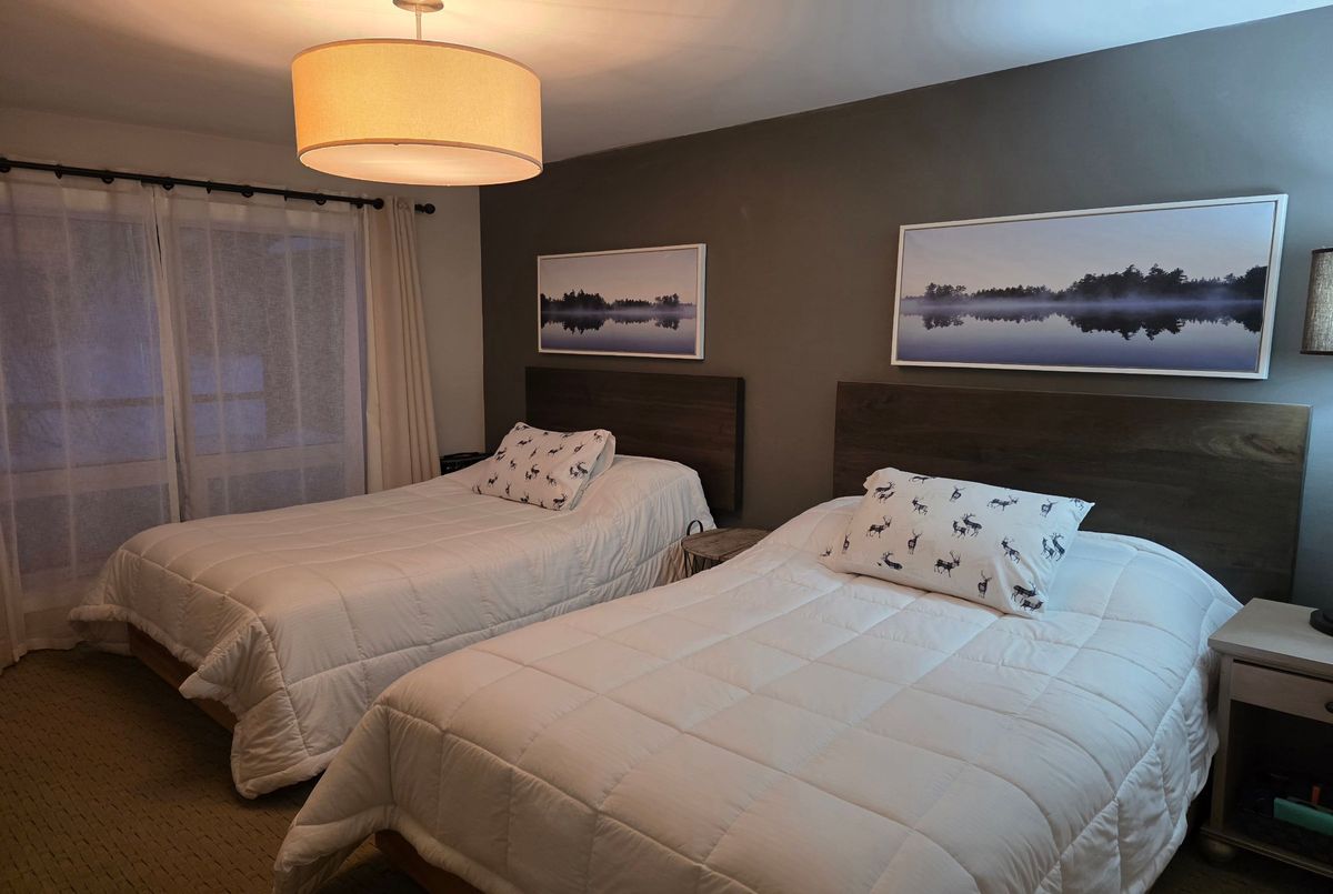 Updated 3rd floor Summit Lodge located close to the Main Pavilion. There is no HST on this purchase as it is not on the Resort Rental Program, but could be added if you wish. It comes fully furnished. This suite has two double beds but the Primary Bedroom can accommodate a King bed. With a cozy gas fireplace in the living room, it is perfect for these cold, snowy winters. Being on the top floor, the views overlook the beautiful, forested hill, which is spectacular in the Fall when the colours are magnificent. Deerhurst Resort is an amazing spot to be to enjoy all four seasons in Muskoka. If you're looking to go for a swim in the nearby outdoor pool - you can scope out if it's busy or not right from the comfort of your suite. Being conveniently located close to the Main Building at Deerhurst Resort, you have convenient and easy access to the many activities, restaurants and other amenities. Owners receive discounts on food and beverage as well as some activities plus free use of cross country skis, snowshoes, canoes and kayaks plus the waterfront which has both deep water as well as a shallow beach. There are so many activities to do that no members of the family will be bored in either summer or winter: paintball, tree top trekking, cross country skiing, downhill skiing, snow shoeing, snowmobiling, hiking trails, beach, boating, fishing, indoor and outdoor swimming pools, tennis courts, golf, and much more! This is truly an amazing Resort. All utilities including WIFI and Cable TV are included in the condo fee.