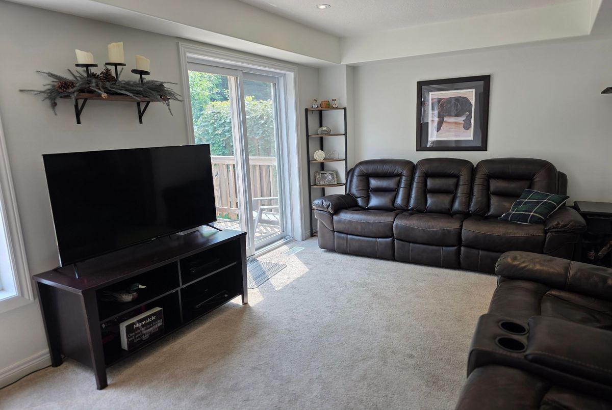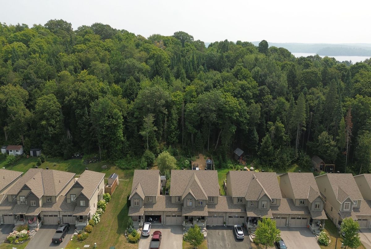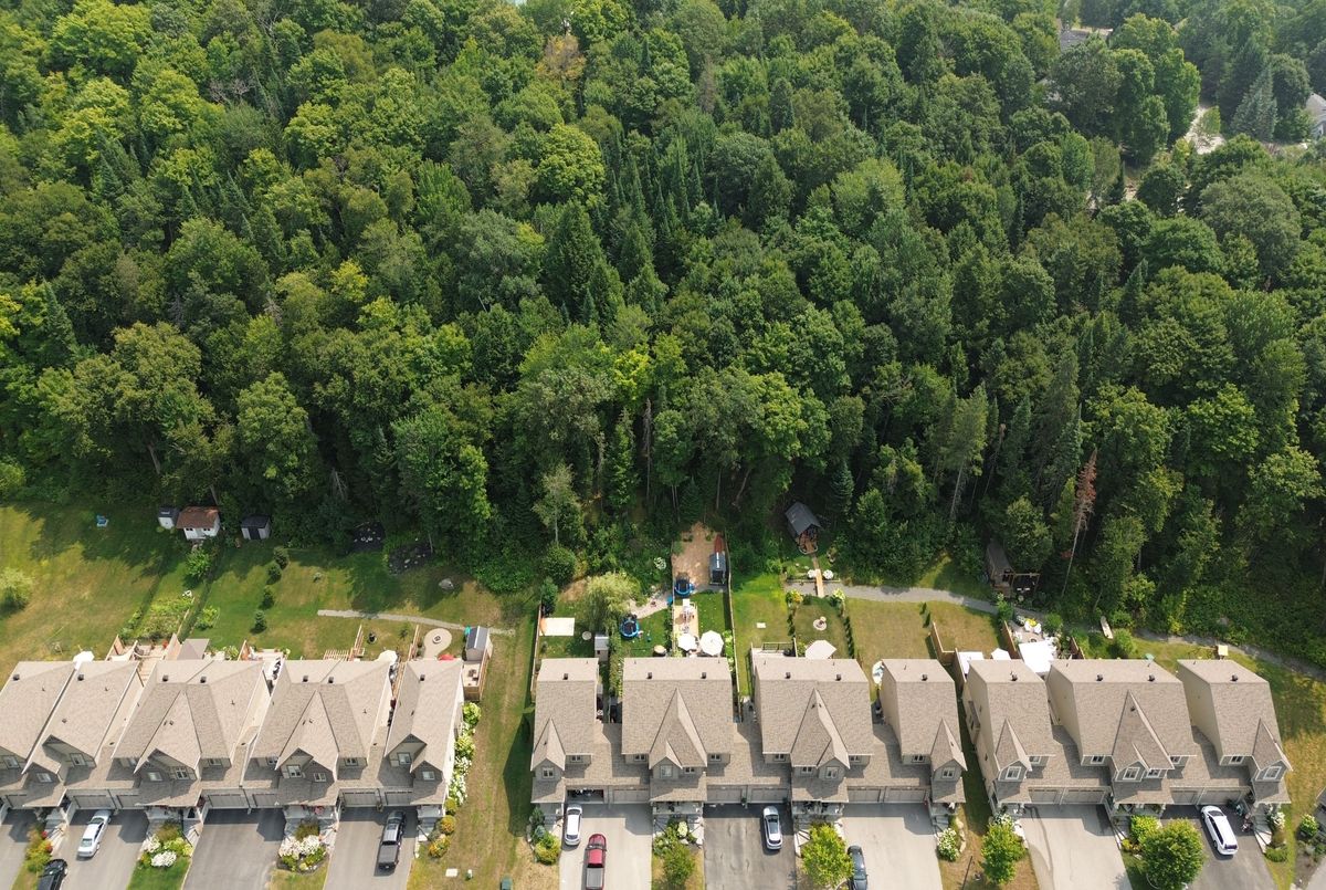 Backing onto peaceful, town-owned green space, this Brookside Crossing end-unit townhouse offers a rare combination of privacy, style, and convenience. From here, you're just minutes from the hospital, elementary school, playground, Huntsville Downs Golf Club, and the breathtaking Arrowhead Provincial Park. Downtown Huntsville's shops, dining, and attractions are also within easy reach - making this a home that's perfectly placed for both relaxation and activity. The curb appeal is timeless, with a neutral blend of stone, brick, and vinyl siding. Step inside to discover a bright, airy interior that feels almost like a detached home, thanks to a thoughtful design that shares only a garage wall with the neighbour.The open-concept main floor is ideal for modern living. At its heart, a rich dark wood kitchen features a large island for meal prep, a breakfast bar for casual dining, and ample storage. The living room's sliding glass doors open to a fully fenced backyard complete with a deck and natural gas BBQ hook-up - perfect for outdoor entertaining. A welcoming foyer, two-piece powder room, and inside access to the garage add everyday convenience. Upstairs, the primary suite offers a walk-in closet and private four-piece ensuite. Two additional bedrooms share a bright five-piece bathroom, while the mostly finished basement expands your living space with a fourth bedroom, it's own three-piece ensuite, and a dedicated laundry area. Modern comforts are built in, including natural gas forced air heating, central air conditioning, municipal water and sewer, high-speed internet, and curbside waste and recycling pickup. No condo fees, a tranquil setting, and a home designed for both comfort and connection this is an opportunity not to be missed.