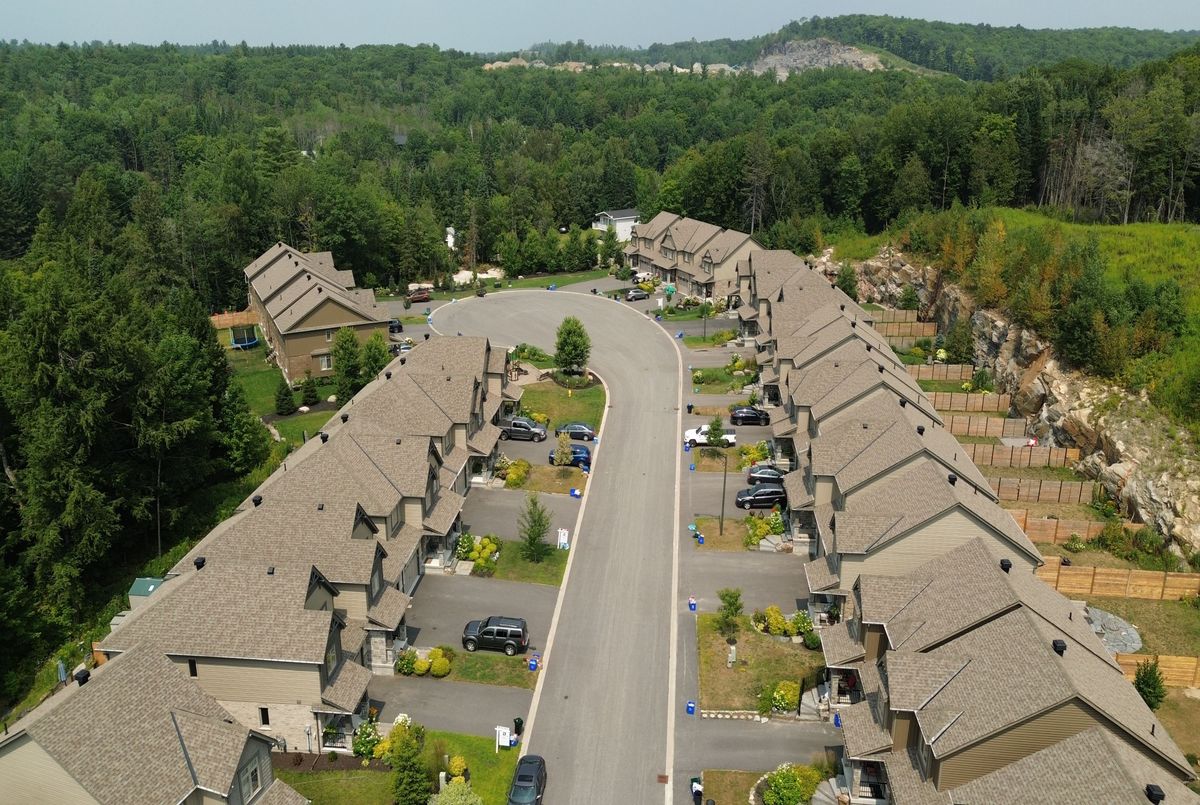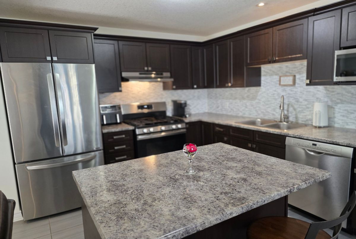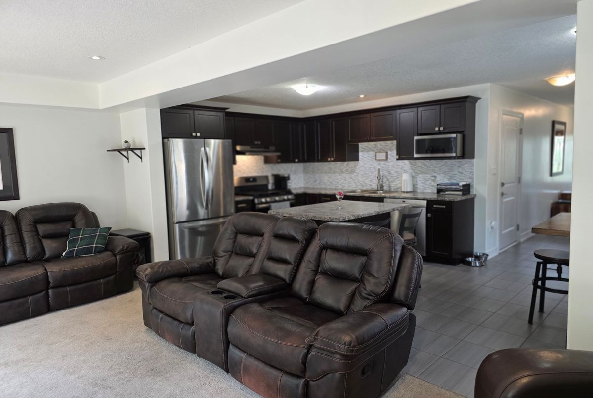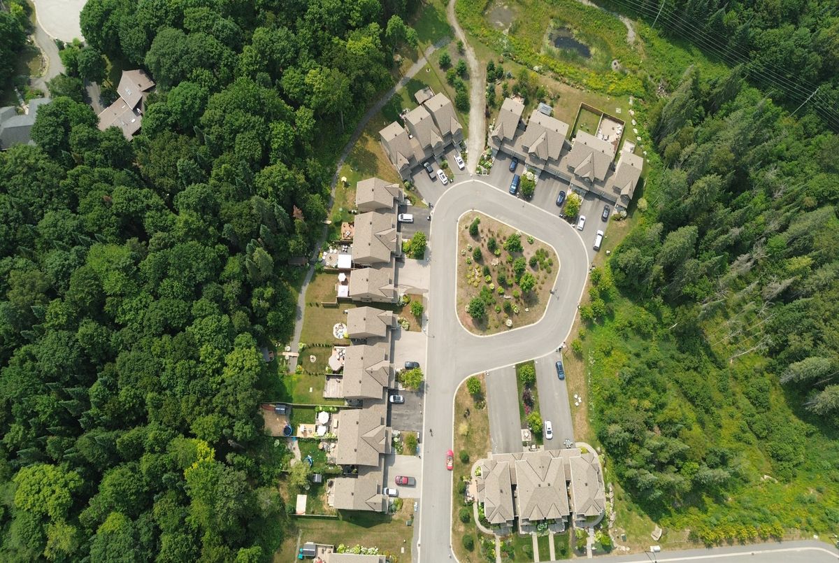 Backing onto peaceful, town-owned green space, this Brookside Crossing end-unit townhouse offers a rare combination of privacy, style, and convenience. From here, you're just minutes from the hospital, elementary school, playground, Huntsville Downs Golf Club, and the breathtaking Arrowhead Provincial Park. Downtown Huntsville's shops, dining, and attractions are also within easy reach - making this a home that's perfectly placed for both relaxation and activity. The curb appeal is timeless, with a neutral blend of stone, brick, and vinyl siding. Step inside to discover a bright, airy interior that feels almost like a detached home, thanks to a thoughtful design that shares only a garage wall with the neighbour.The open-concept main floor is ideal for modern living. At its heart, a rich dark wood kitchen features a large island for meal prep, a breakfast bar for casual dining, and ample storage. The living room's sliding glass doors open to a fully fenced backyard complete with a deck and natural gas BBQ hook-up - perfect for outdoor entertaining. A welcoming foyer, two-piece powder room, and inside access to the garage add everyday convenience. Upstairs, the primary suite offers a walk-in closet and private four-piece ensuite. Two additional bedrooms share a bright five-piece bathroom, while the mostly finished basement expands your living space with a fourth bedroom, it's own three-piece ensuite, and a dedicated laundry area. Modern comforts are built in, including natural gas forced air heating, central air conditioning, municipal water and sewer, high-speed internet, and curbside waste and recycling pickup. No condo fees, a tranquil setting, and a home designed for both comfort and connection this is an opportunity not to be missed.